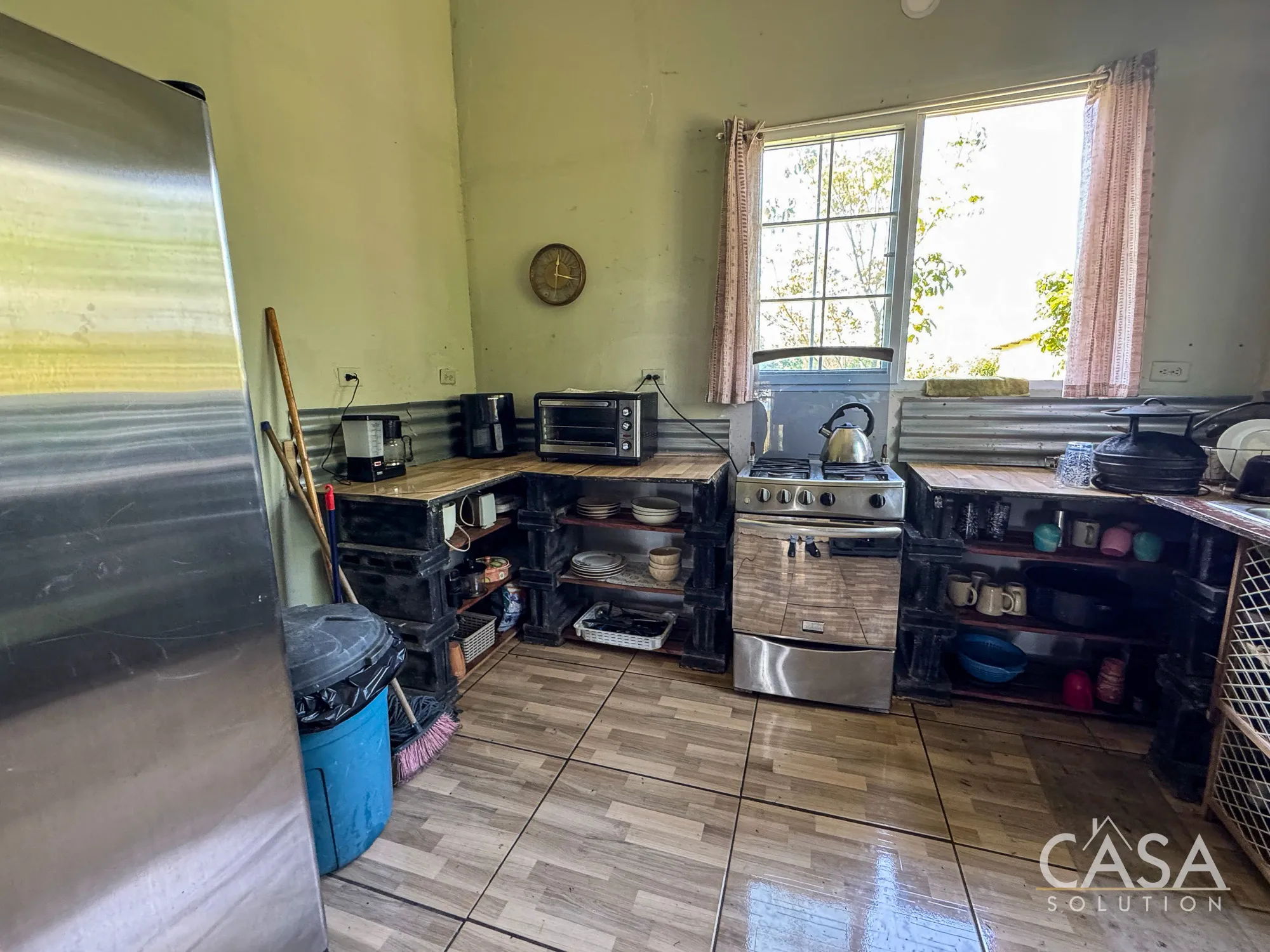 The garden and terrace offer views of Volcan Baru. The location is just 5 minutes from a scenic river where you can enjoy fishing, swimming, or hiking. The property also features banana, papaya, lichi, and pineapple trees, enhancing its natural and inviting atmosphere