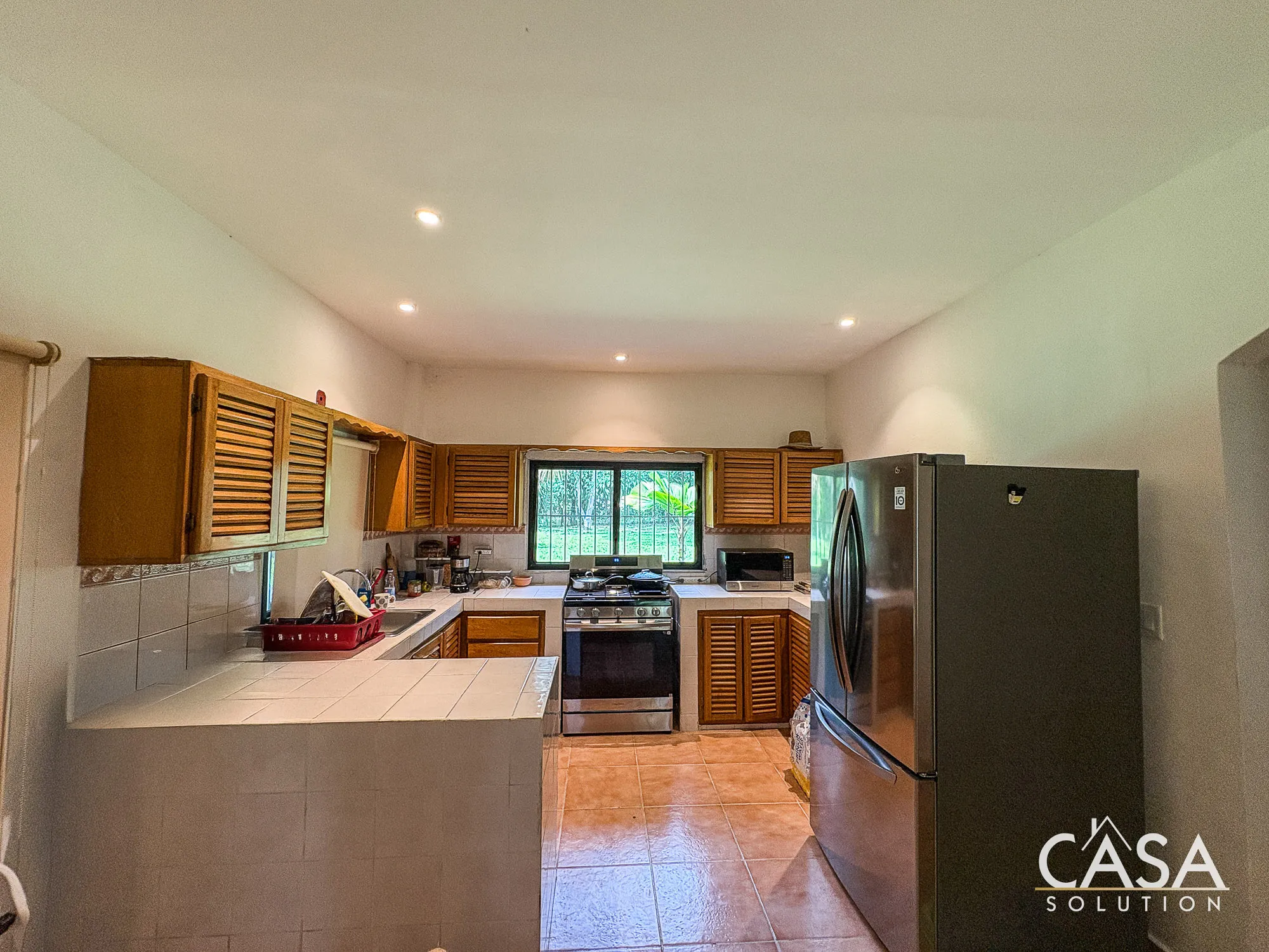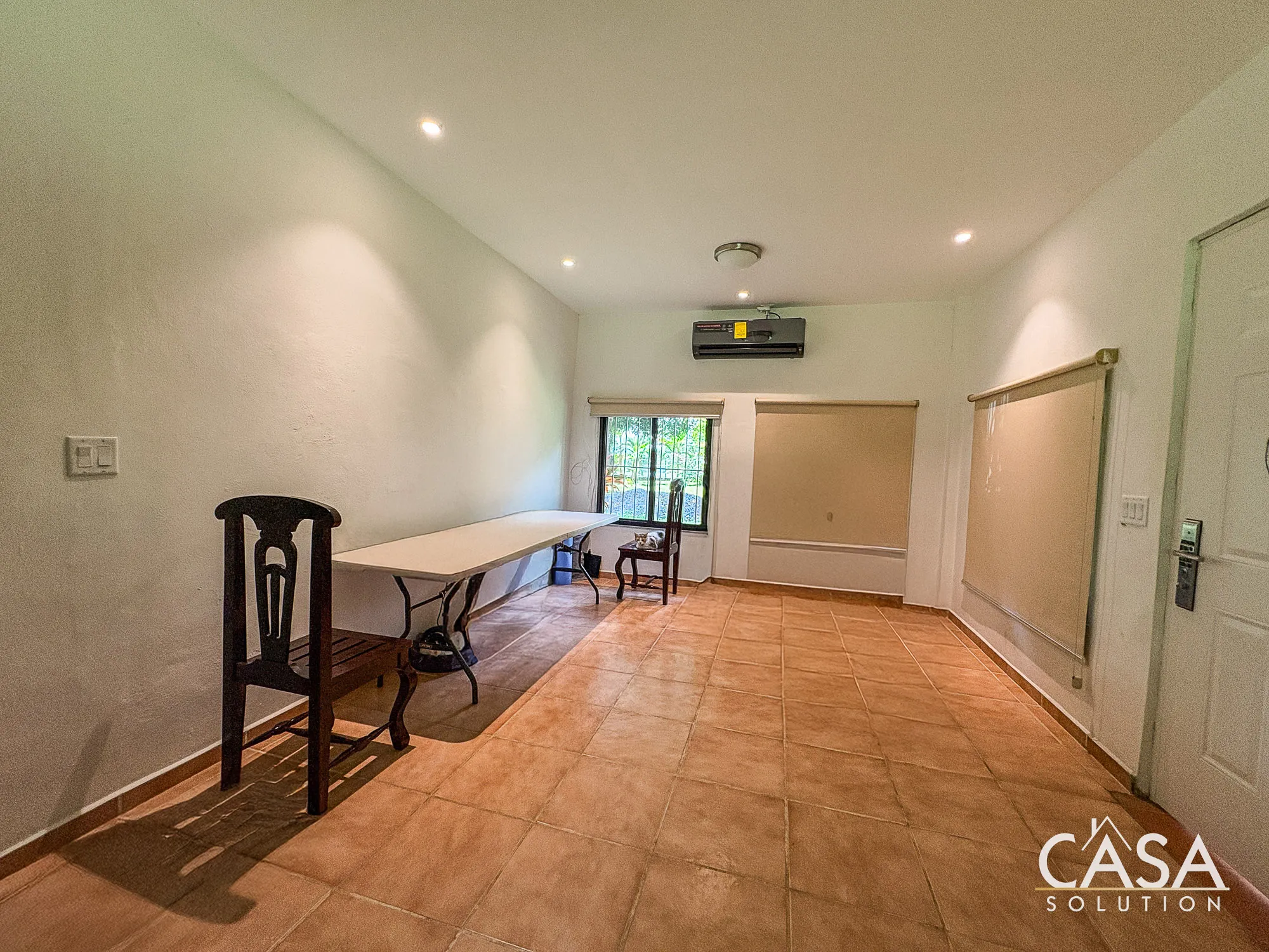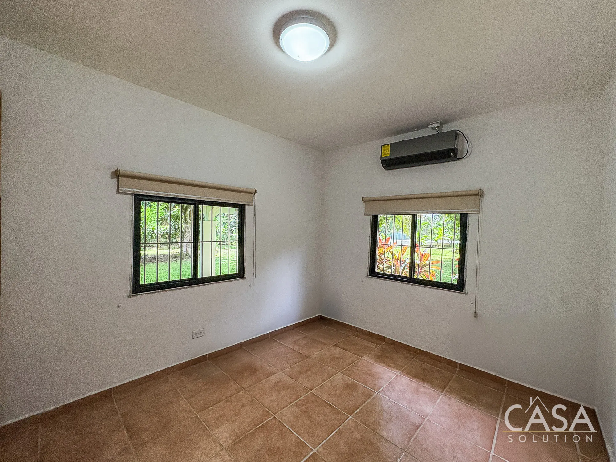 Upon entering the home, you’ll find a living area with a separate kitchen and dining room. The house has three bedrooms and one full bathroom. Each bedroom is equipped with its own LG Inverter air conditioning unit. The home was recently remodeled and now includes a new roof, insulated ceiling (cielo raso con aislante térmico), and new doors and windows throughout. Brand new high quality appliances are included