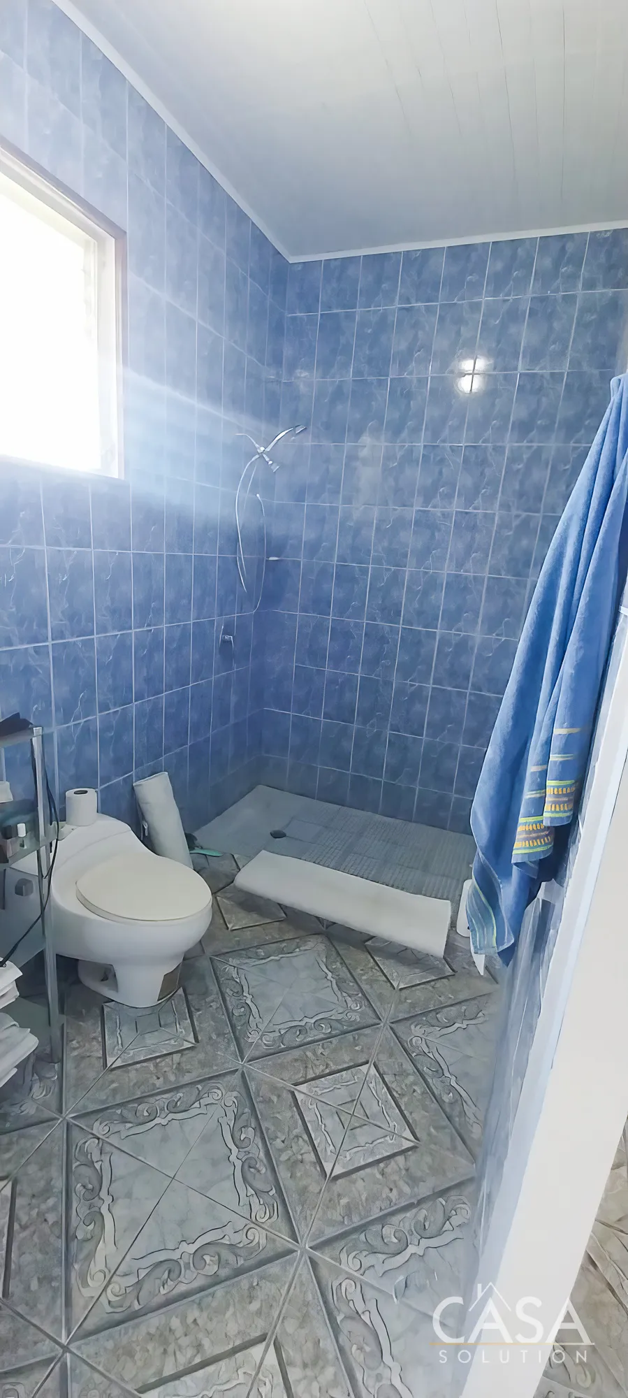 The upper level of the home offers 1,763.64 square feet of storage space, while the back balcony measures 289.4 square feet. There is also a 204 square foot bodega downstairs for extra storage. The exterior of the house measures 57 feet by 39 feet.
