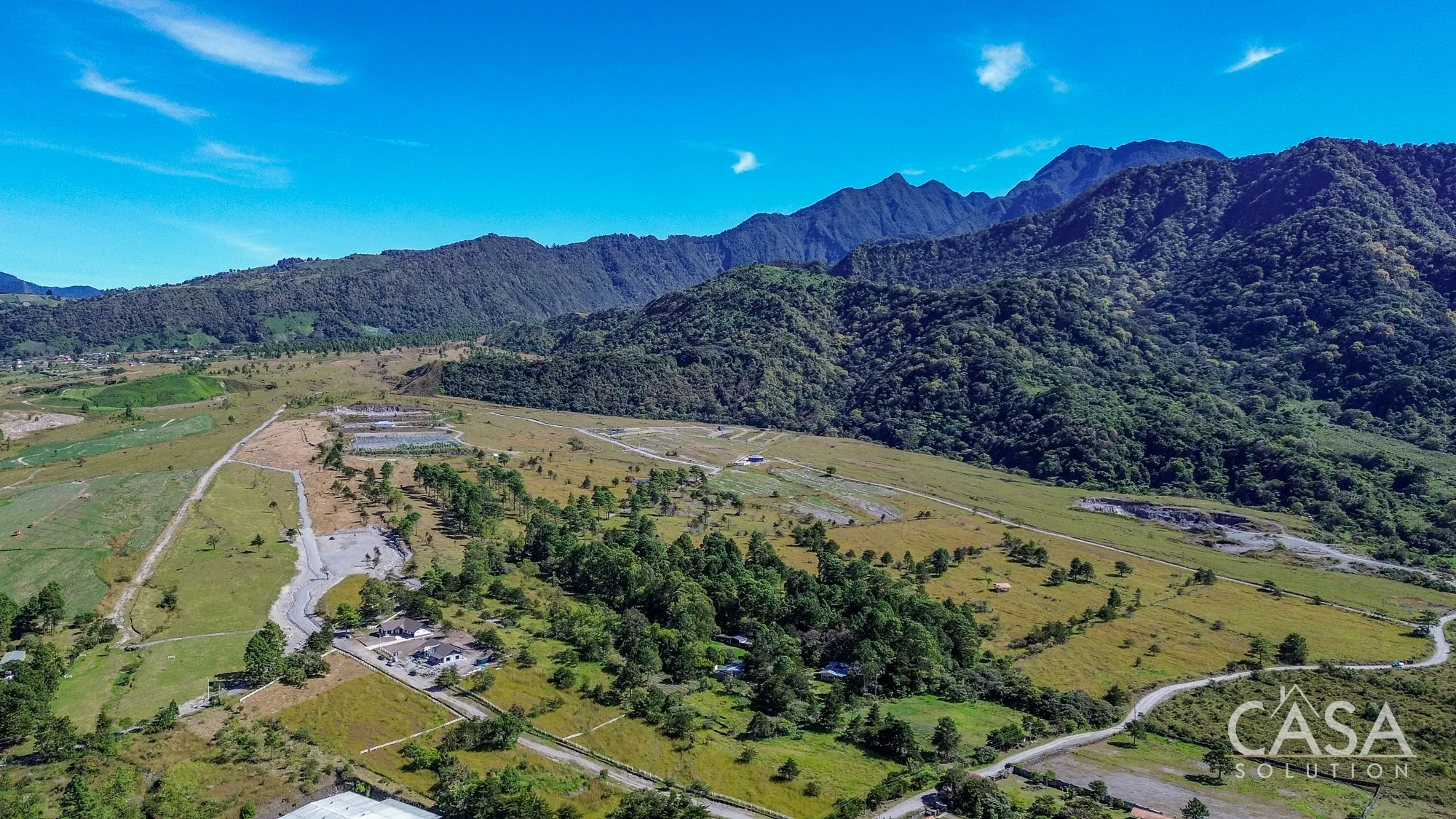 The project reflects Volcán’s working agricultural identity. Designated green areas, pine forest sections, productive land planted with coffee, and a developing vineyard area (with grape plants already established) define the landscape. This is functional land intended for real use, not decorative acreage.