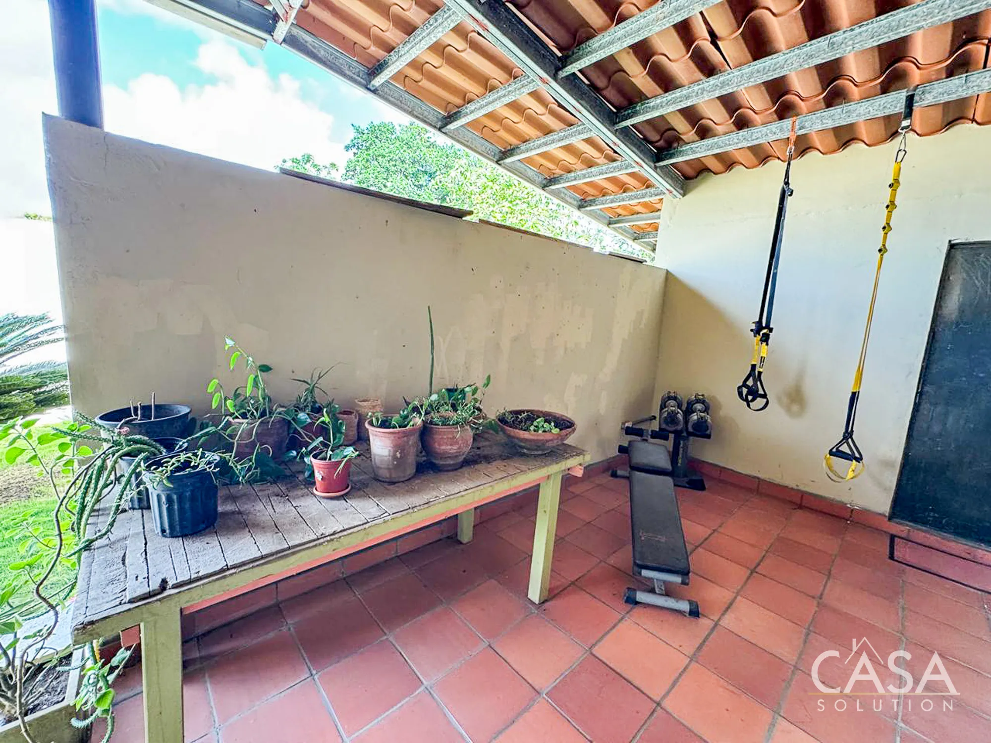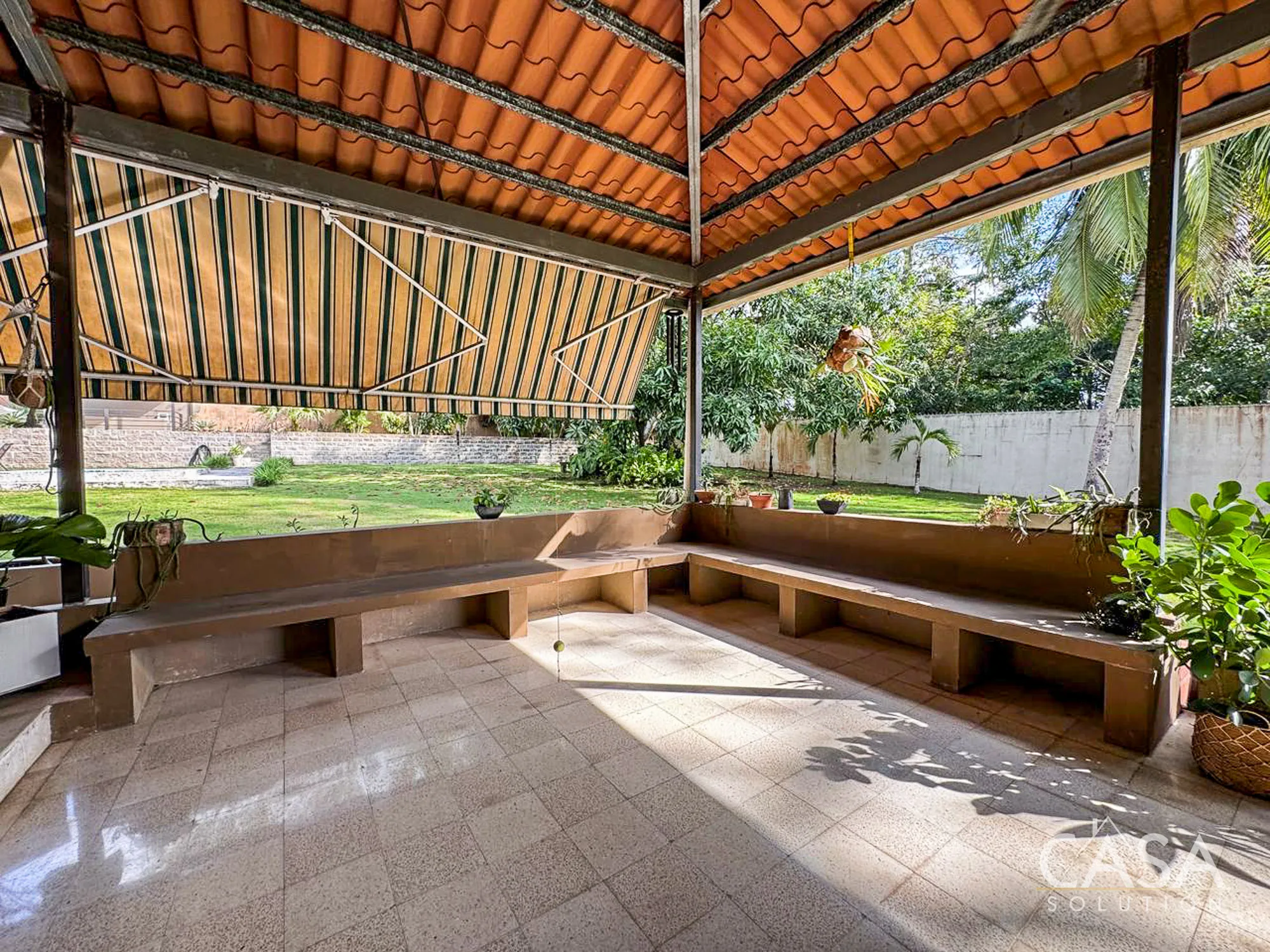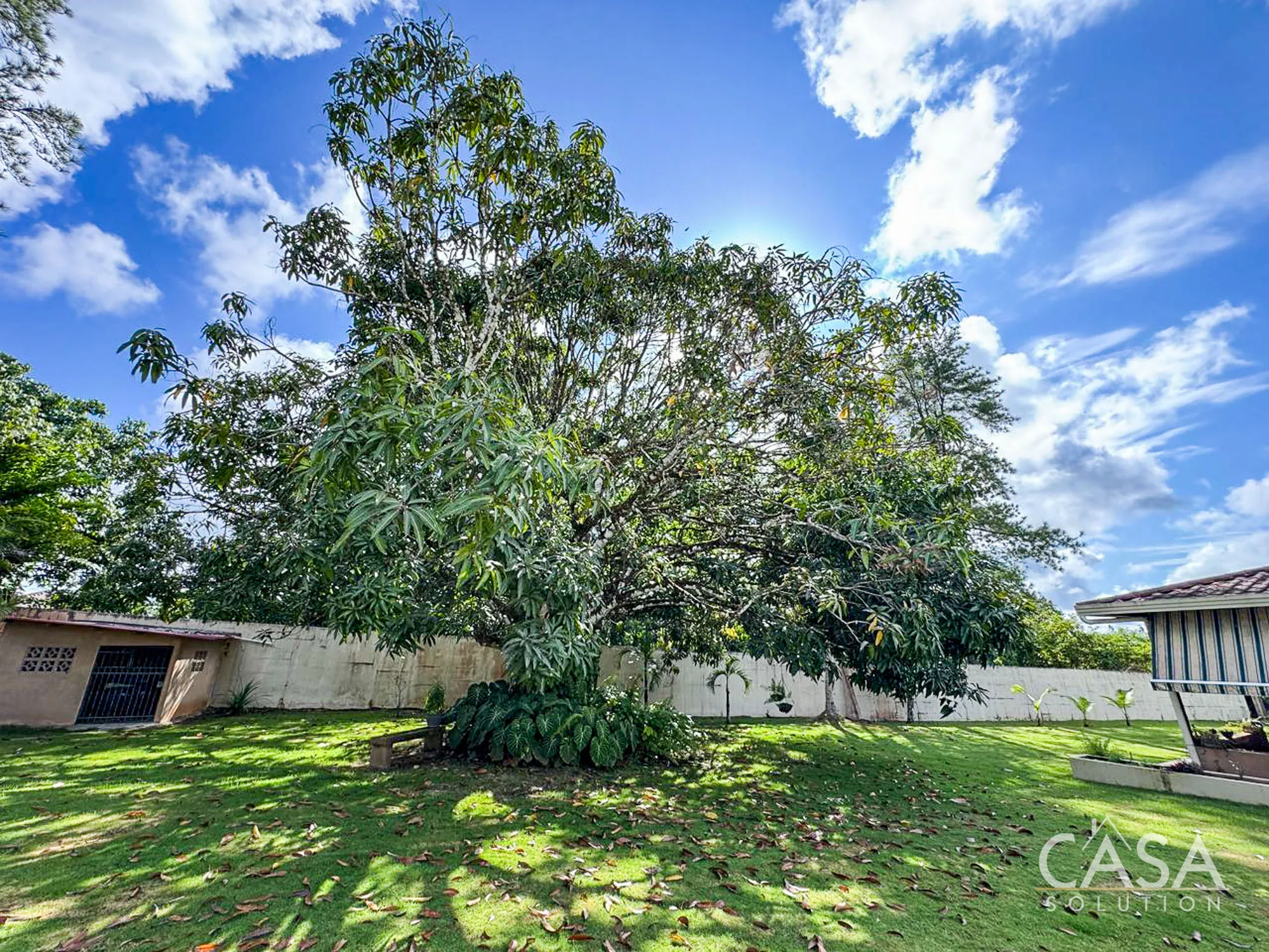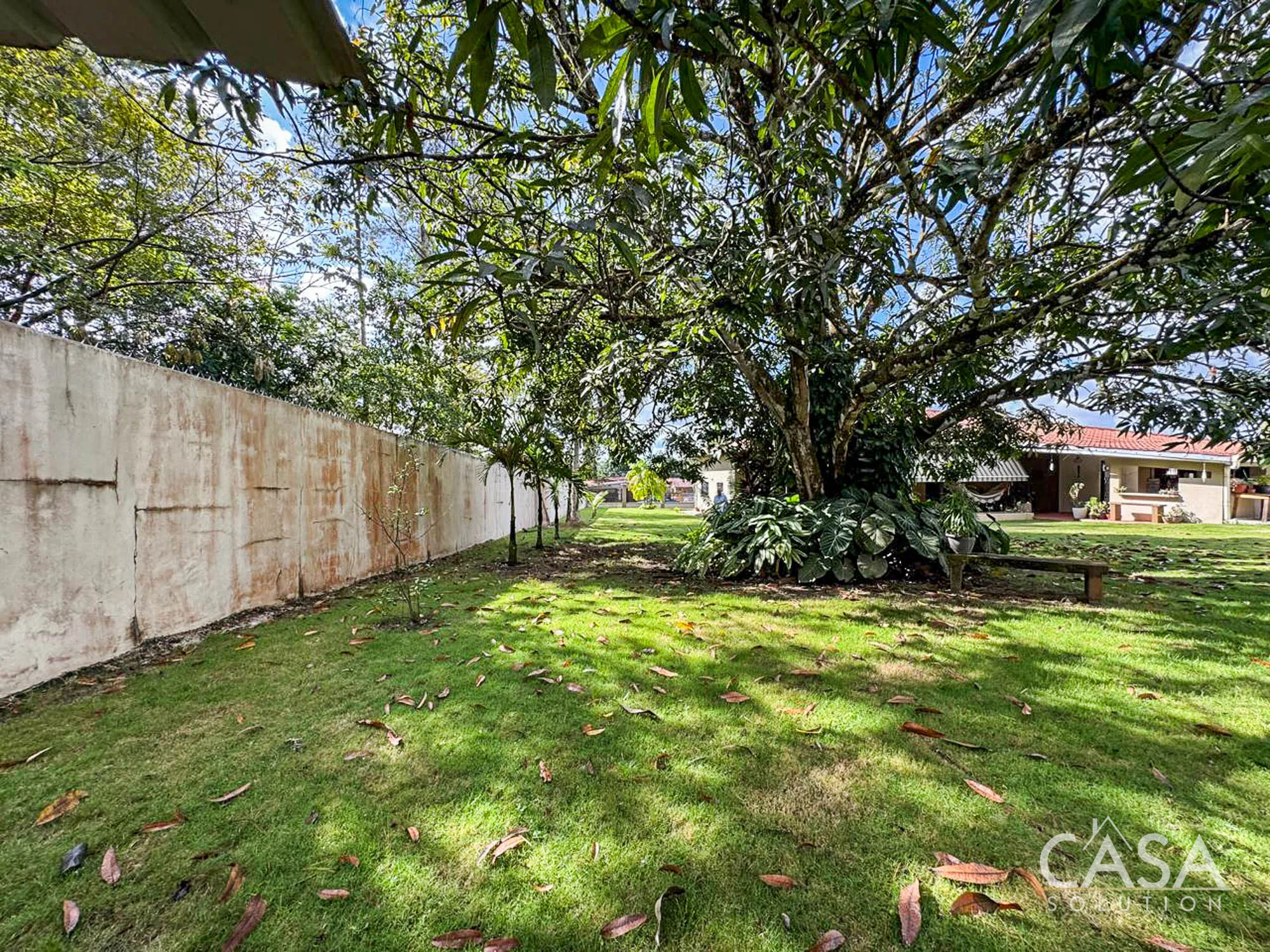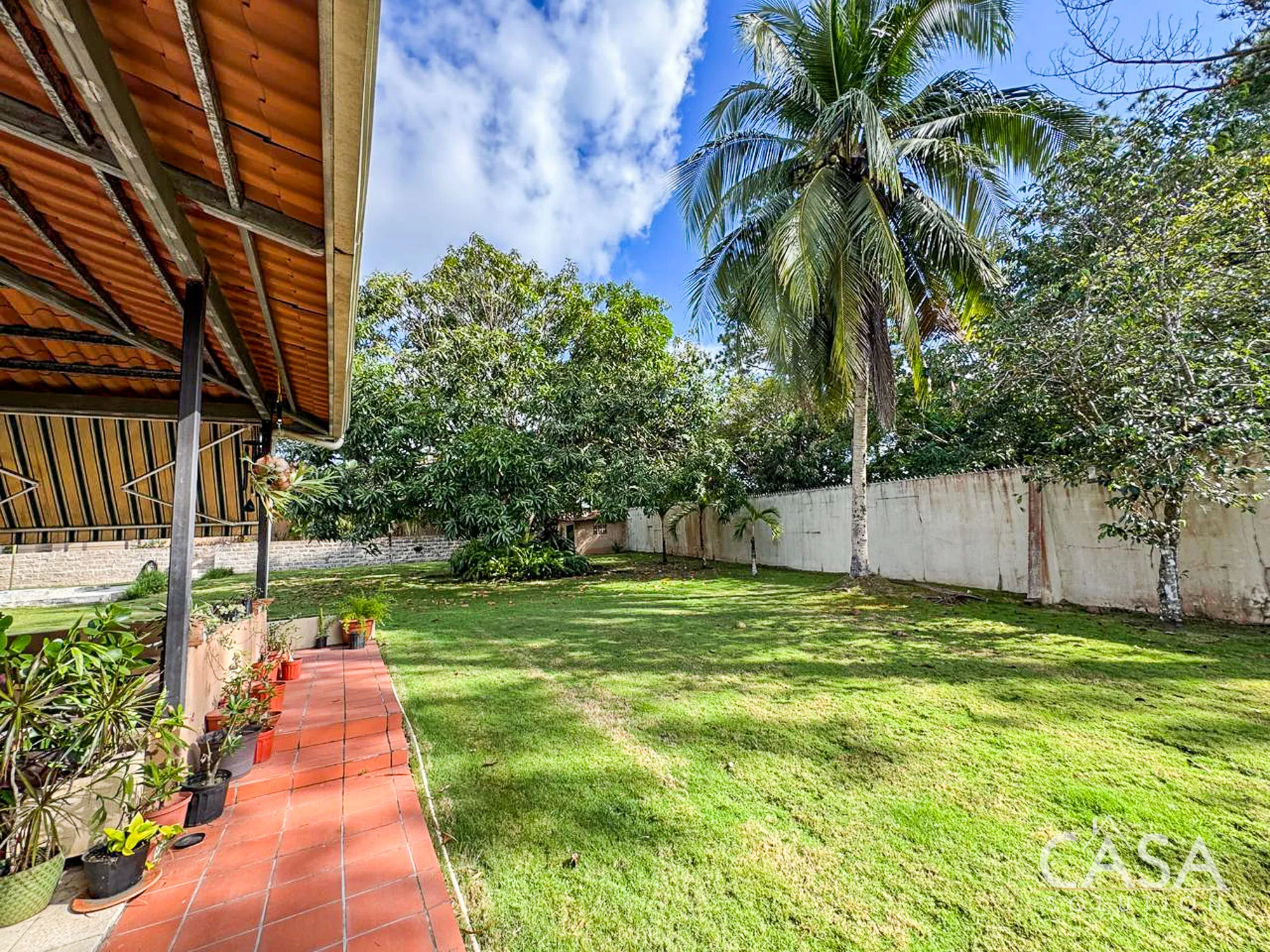 The house sits on a 2,239.52 m² lot with flat terrain and a fully enclosed perimeter. The outdoor area includes a swimming pool with a surrounding deck, garden space, and mature trees such as palms, coconut, and mango. These features make the property suitable for gardening, outdoor living, and hosting gatherings. The lot size also provides flexibility for future improvements or additional structures if desired.
