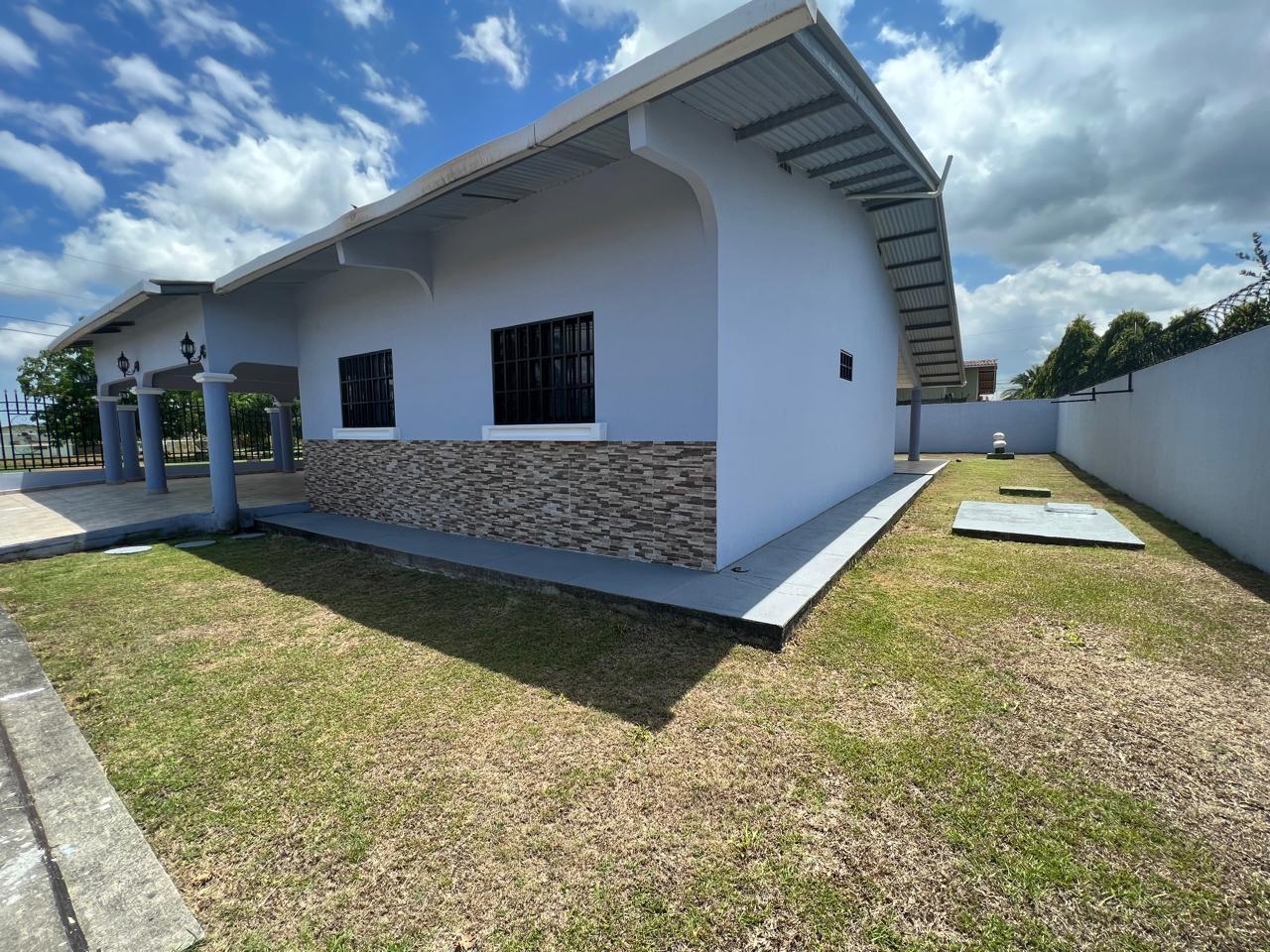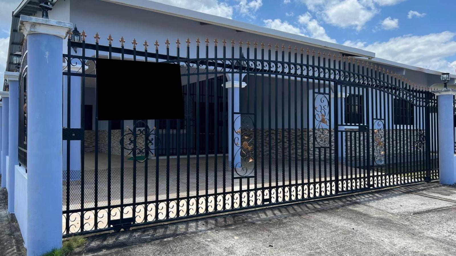 Spacious 4-bedroom residence with security bars on windows and exterior doors. Two bedrooms have en-suite bathrooms, and one has a walk-in closet. The other two bedrooms share a bathroom. The house also features a kitchen, enclosed laundry room, terrace, and a 3-car garage. The ceilings are plastered, the floors are tiled, and the walls are block walls, plastered and painted on both sides. The property is enclosed by a block wall or L-shaped fence, and the front and side walls are block walls with security bars. All bedrooms have closets. The house has seen little use but is regularly maintained (it is in excellent condition).