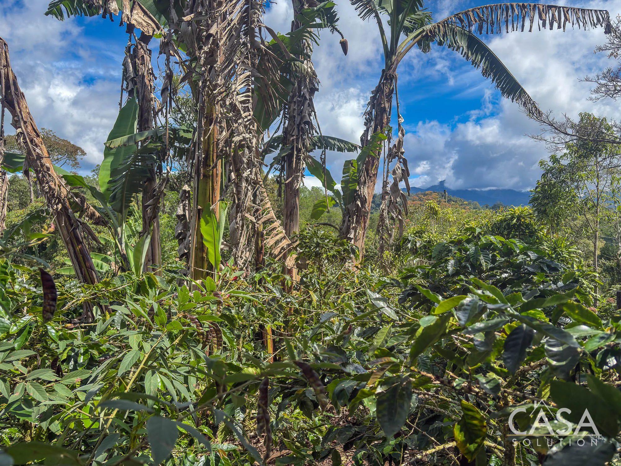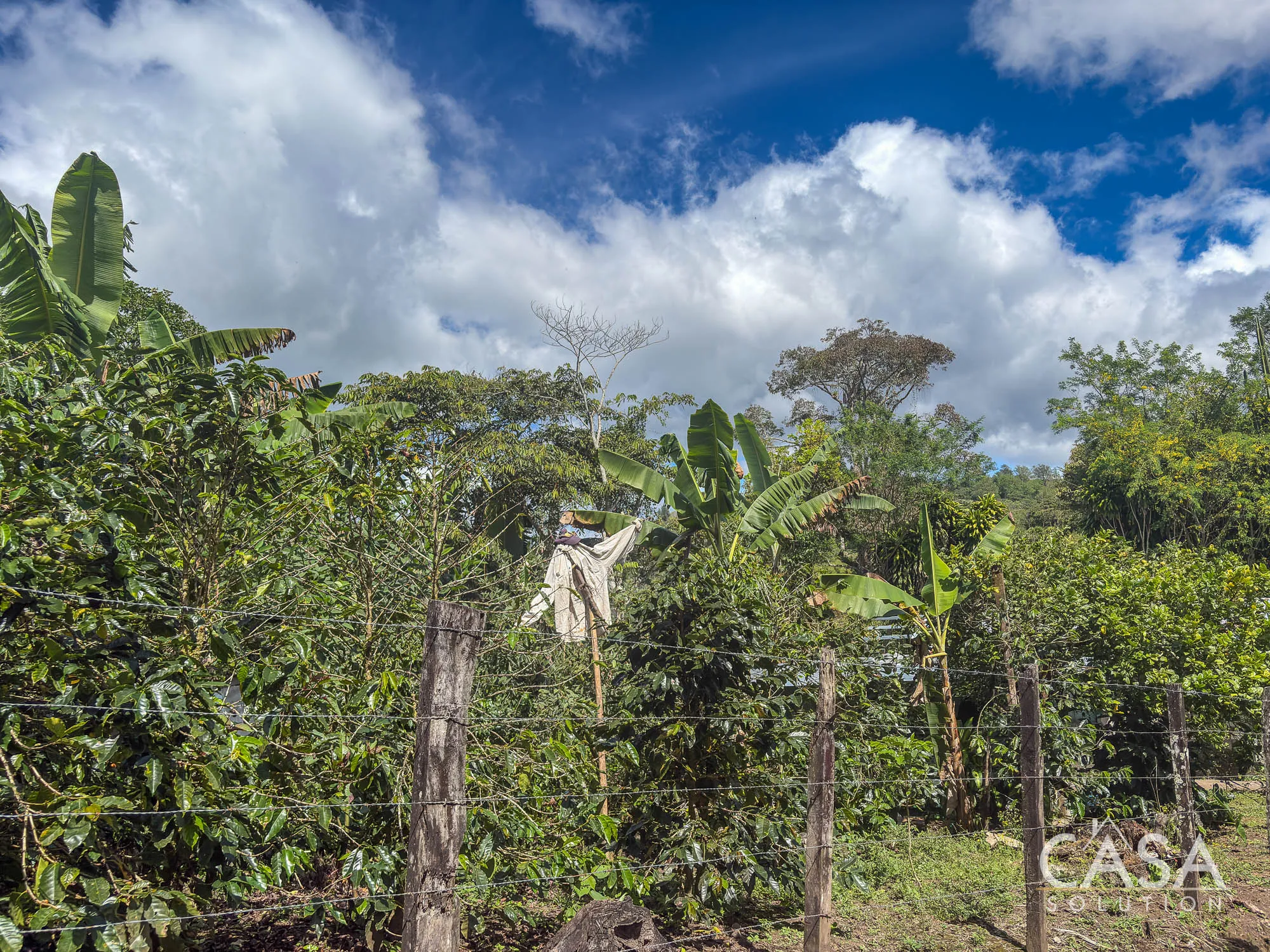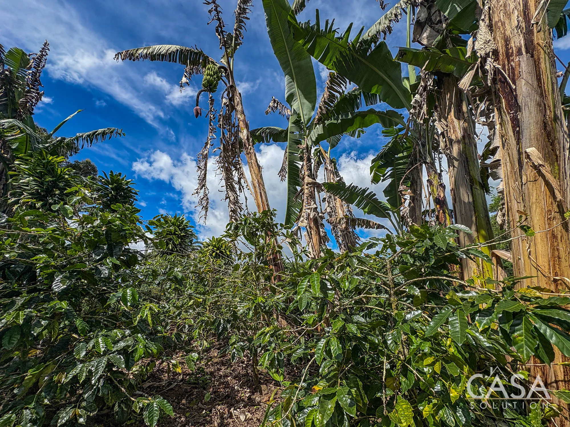 The land includes banana, orange, and lemon trees among a productive coffee plantation. The coffee varieties grown here are Caturra, Catuai, and some Geisha, known for their high quality. The entire coffee production is sold to a nearby coffee processing plant, just a few meters from the property.