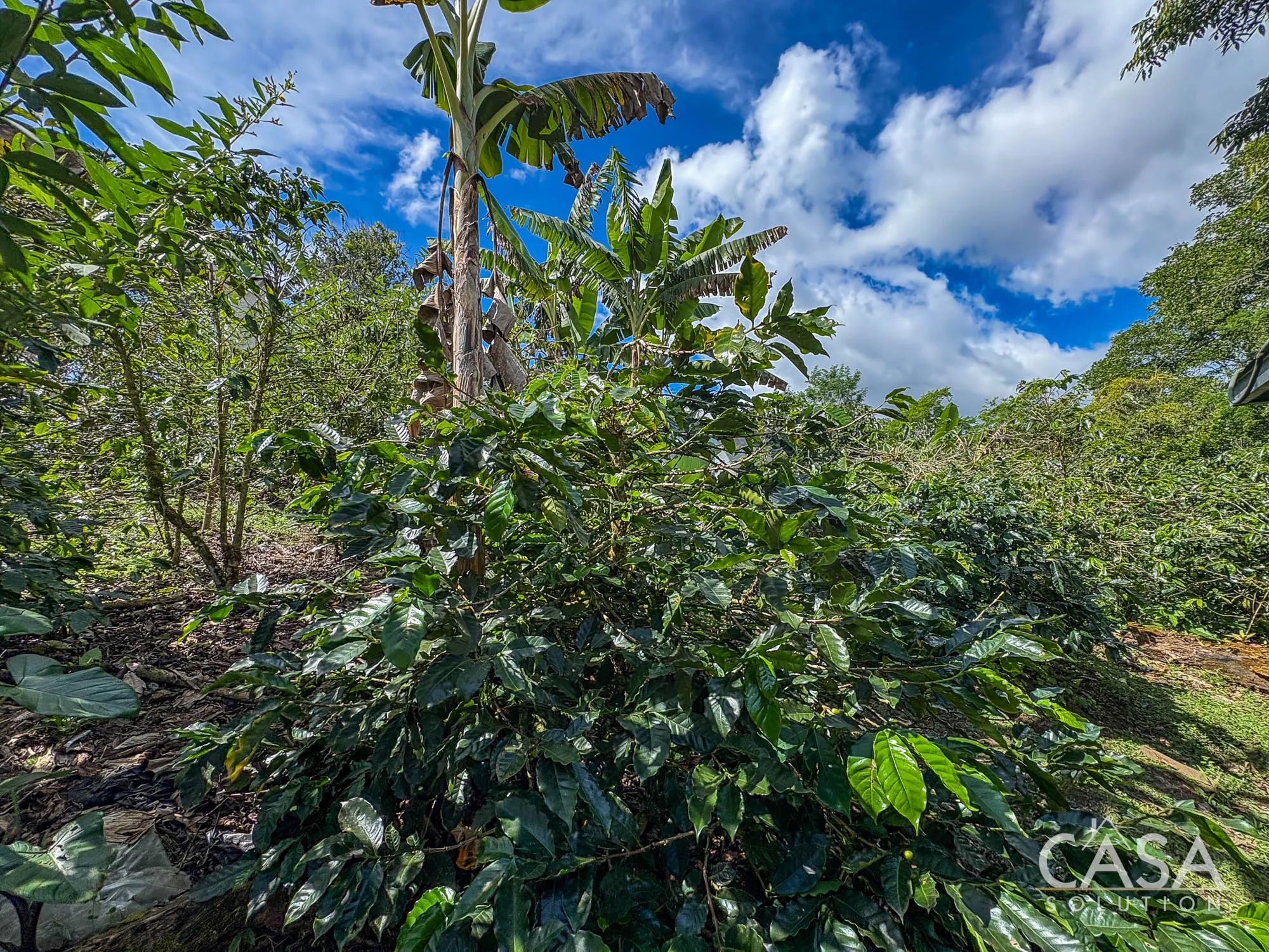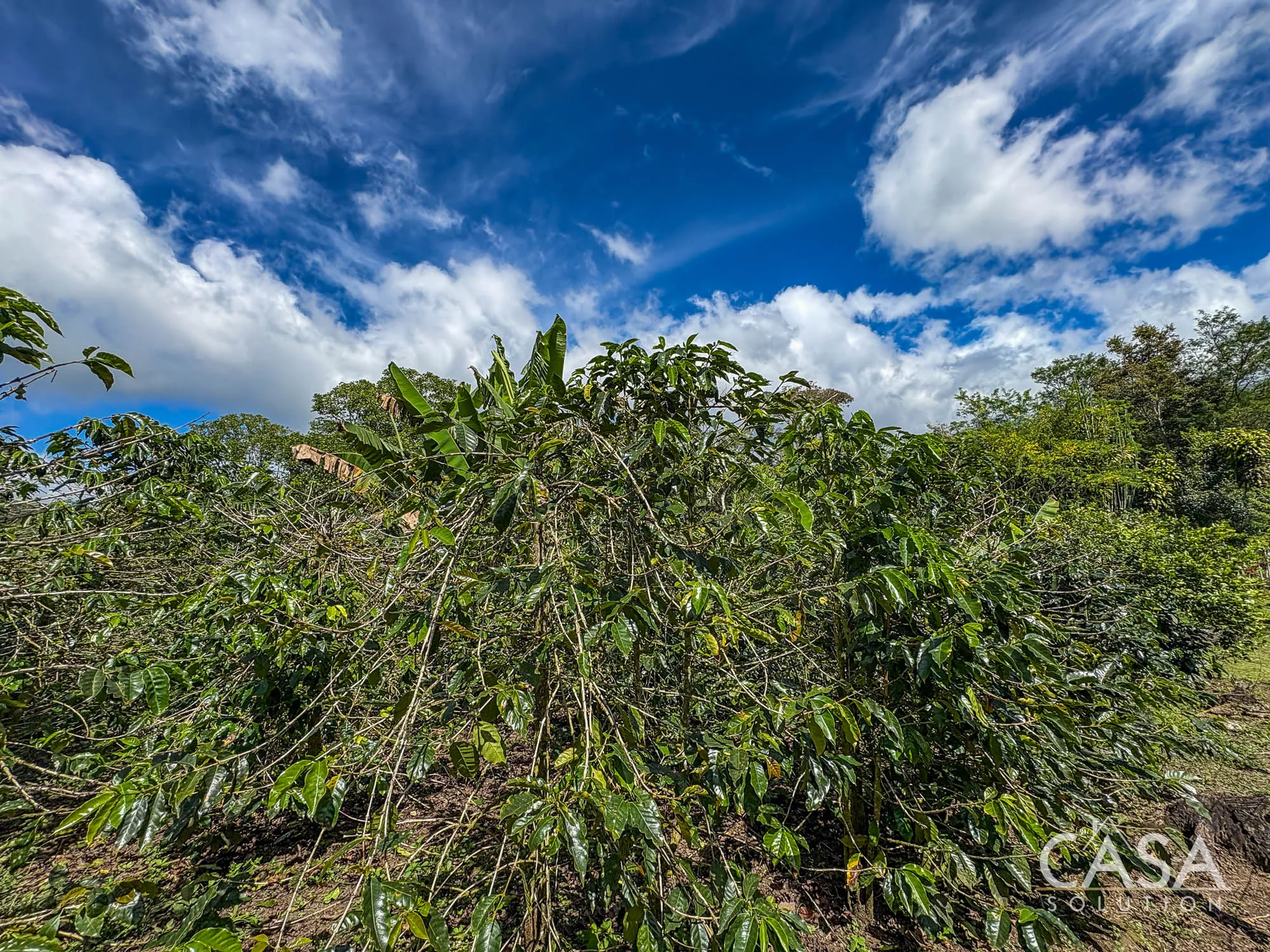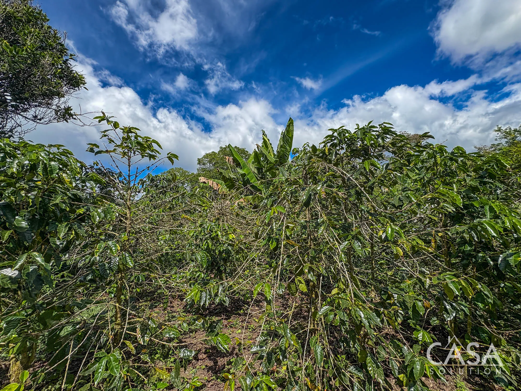 The land includes banana, orange, and lemon trees among a productive coffee plantation. The coffee varieties grown here are Caturra, Catuai, and some Geisha, known for their high quality. The entire coffee production is sold to a nearby coffee processing plant, just a few meters from the property.
