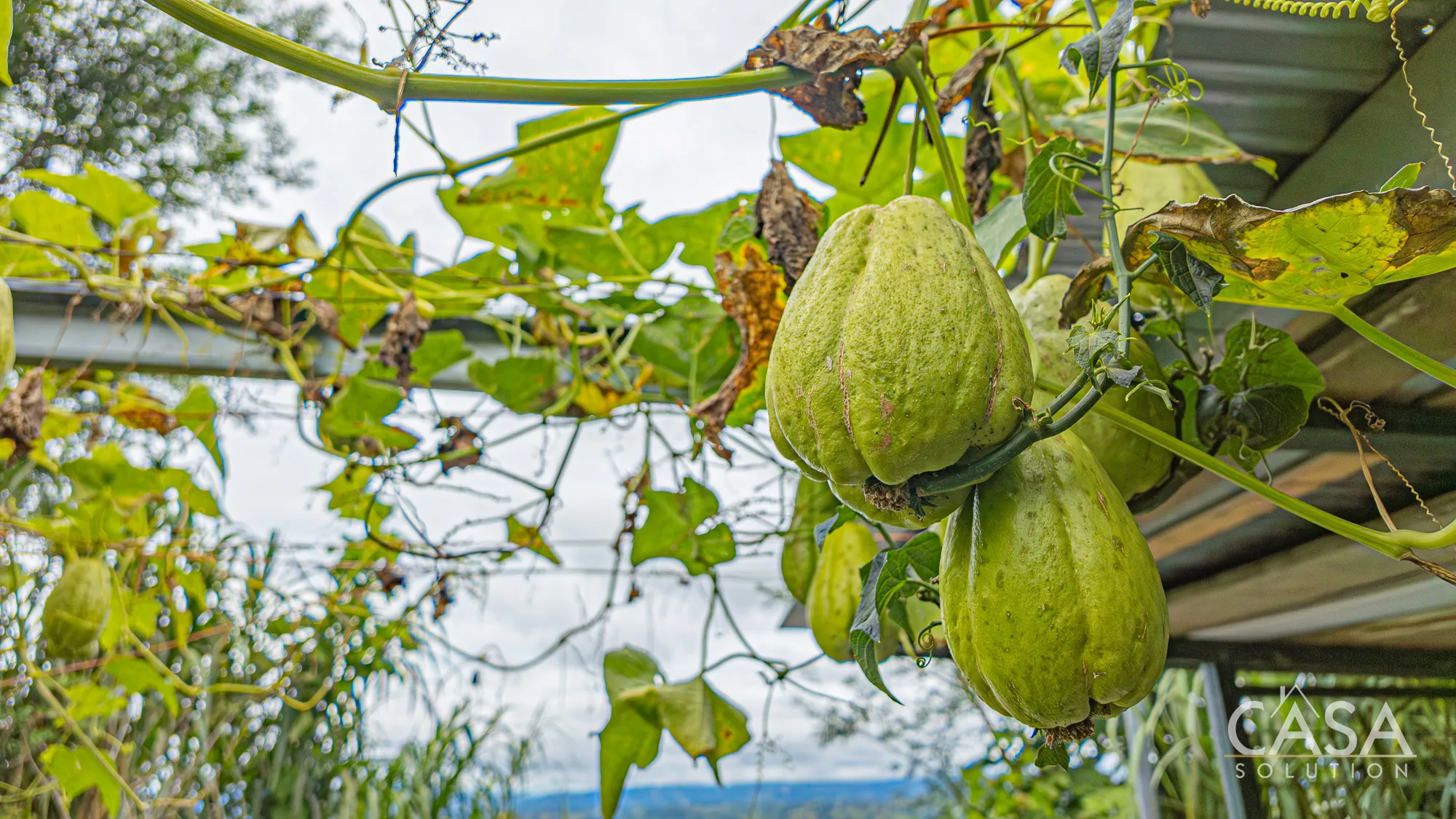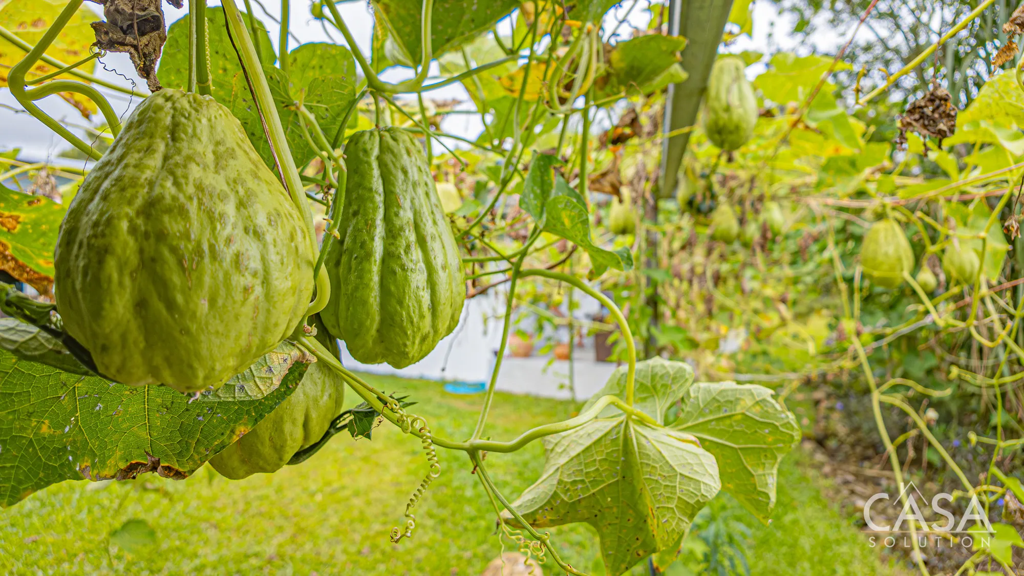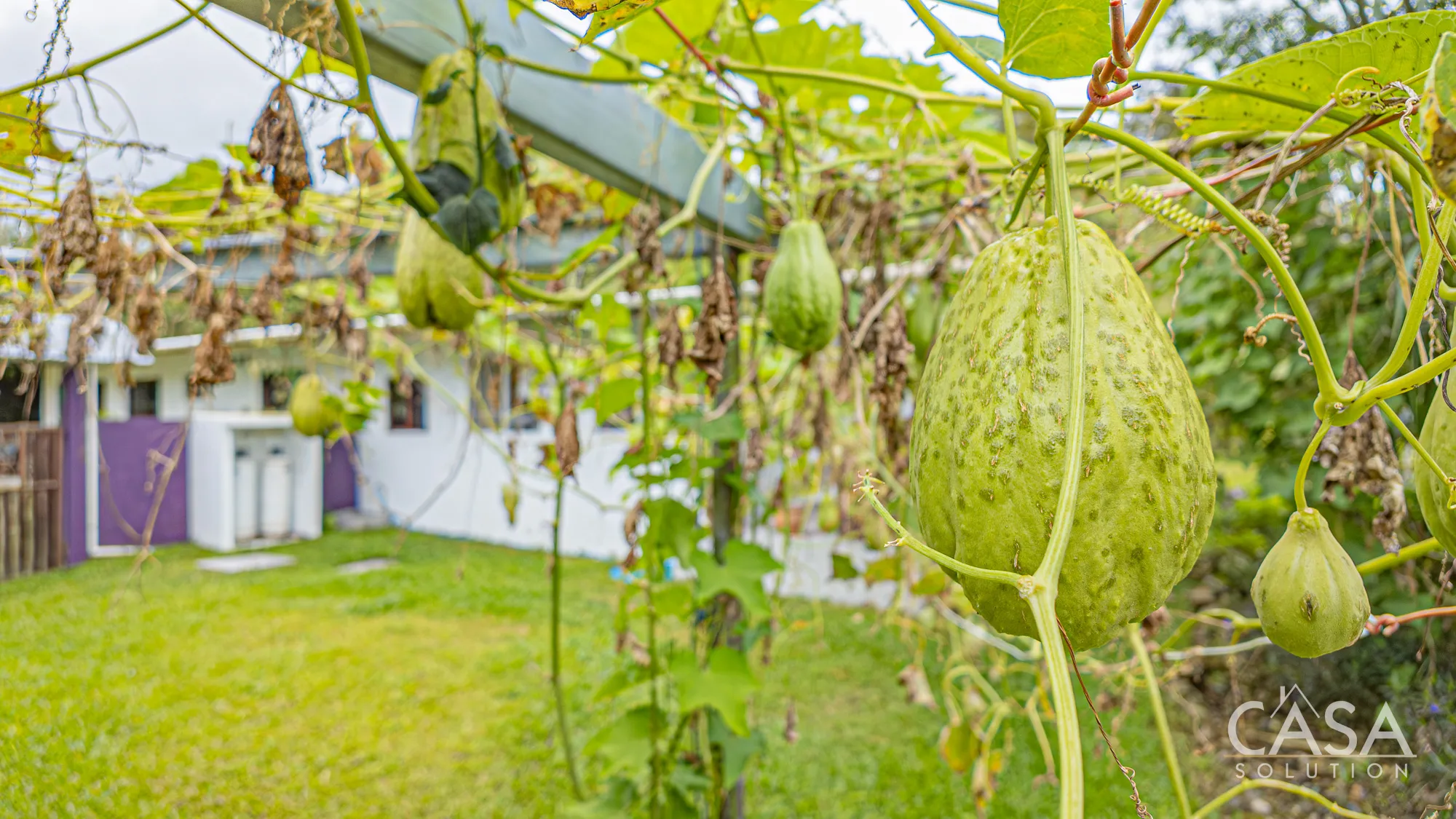 The property produces an impressive variety of tropical fruits and plants. Among them are eight varieties of bananas, over 100 pineapple plants, and trees of mango, avocado, guava, citrus, papaya, breadfruit, jackfruit, soursop, lemon, and zapote.