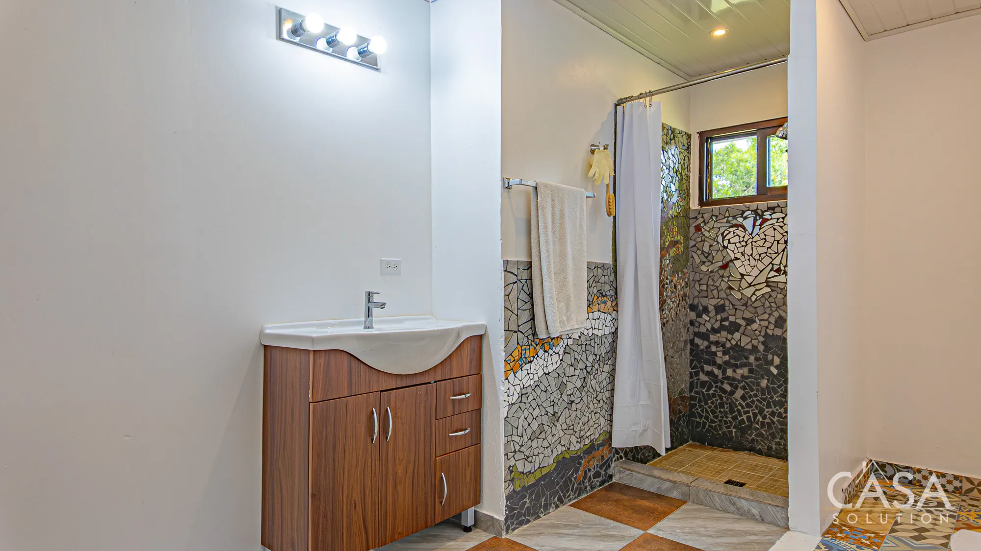 A 3-meter-deep dam with a pond, originally designed as a natural swimming area, adds to the charm, while several streams and small waterfalls run through the property. Nature trails meander through forested zones, leading to a small cave with bats, a ravine, and viewpoints overlooking the mountains and ocean.