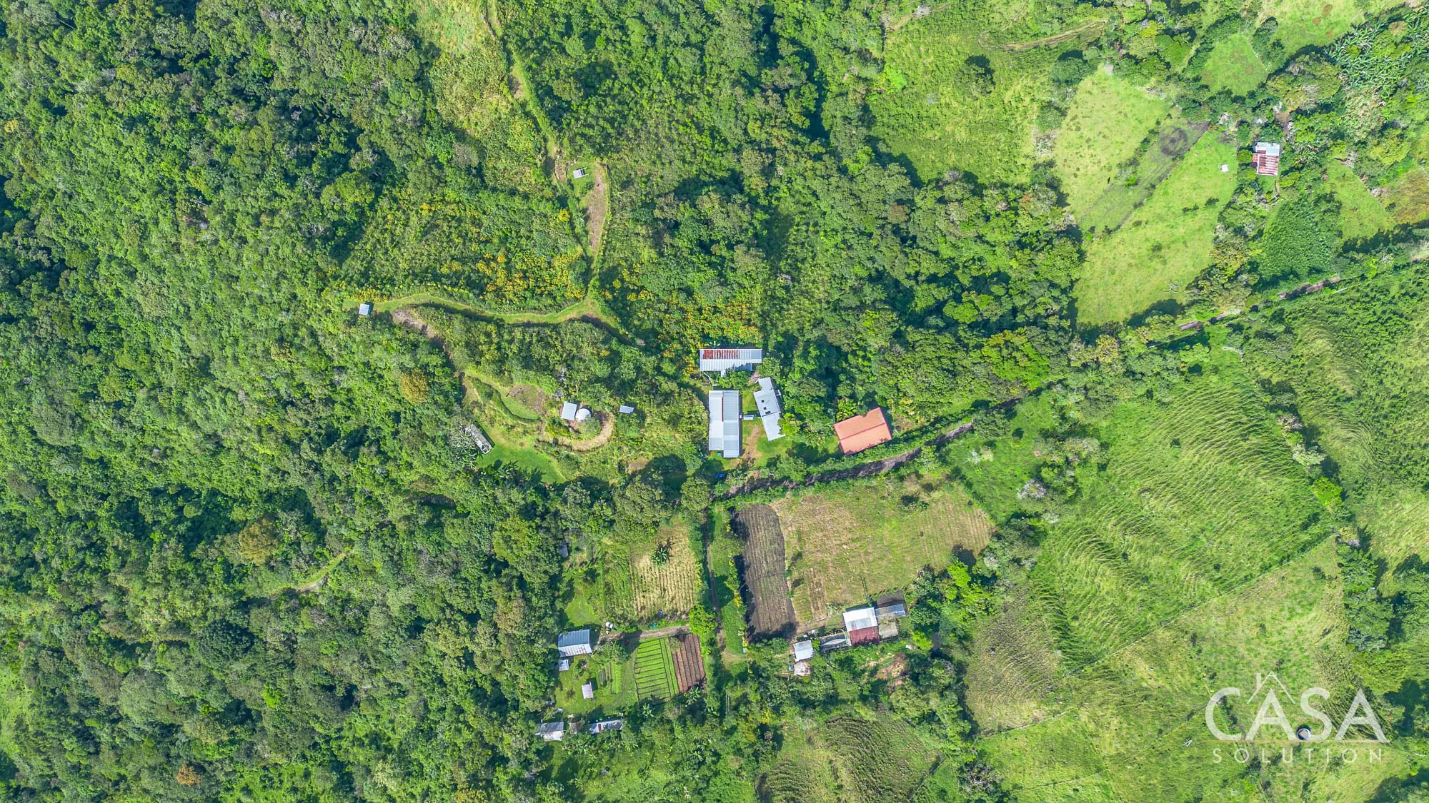 Set at an elevation between 950 and 1,100 meters, the property enjoys a cooler, less windy climate than nearby Volcán while maintaining impressive views of both the Pacific Ocean and Volcan Baru. The land consists of approximately 70% mature forest, 20% former pastureland, and 10% developed areas with houses, gardens, and internal paths.