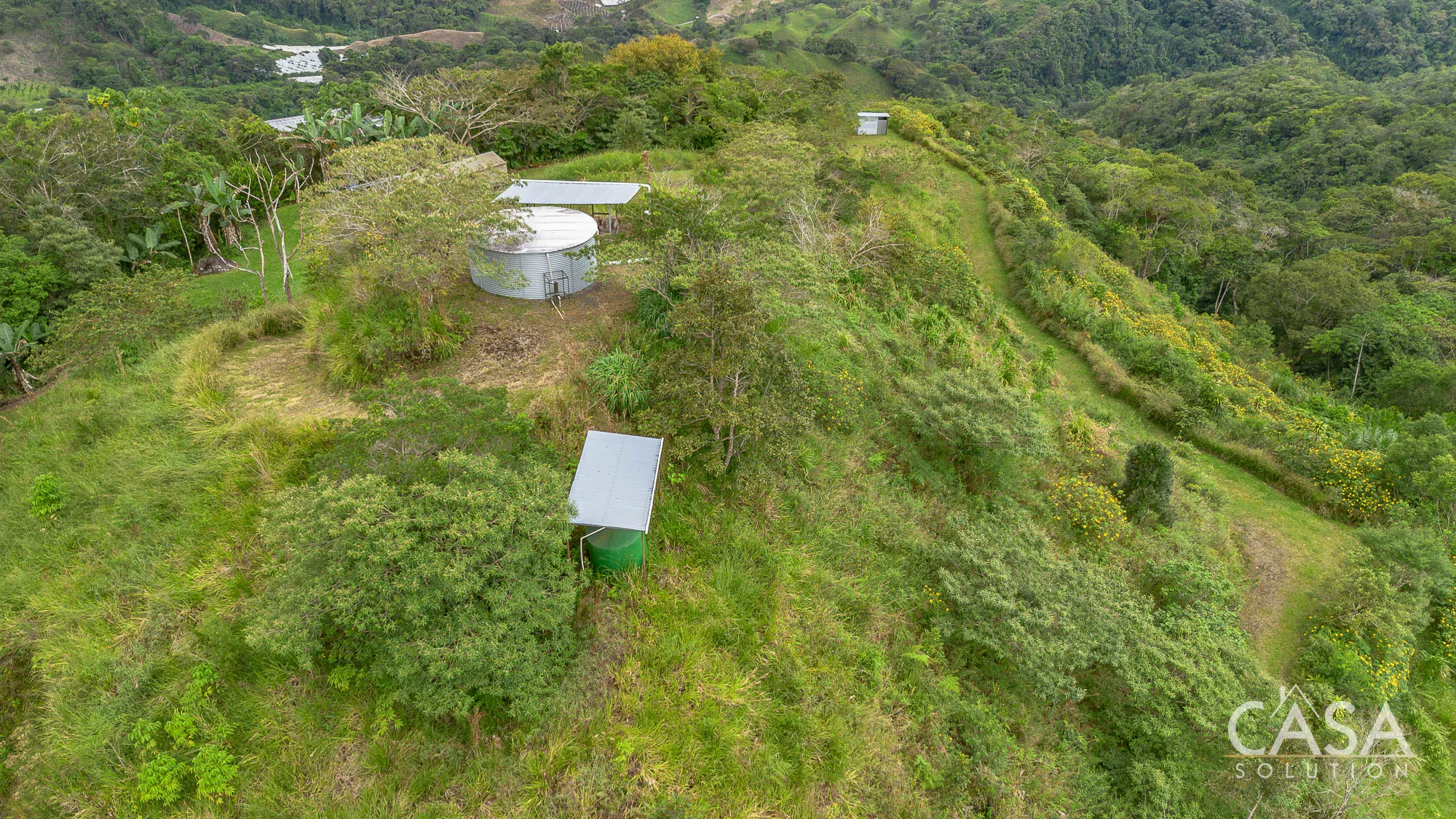 The property already has six leveled building plots and a seventh secluded site within the forest. Five of the plots are located within 100 meters of the main water tank, while one has its own spring. Some offer ocean and Volcan Baru views, and one enjoys a 360° panorama.