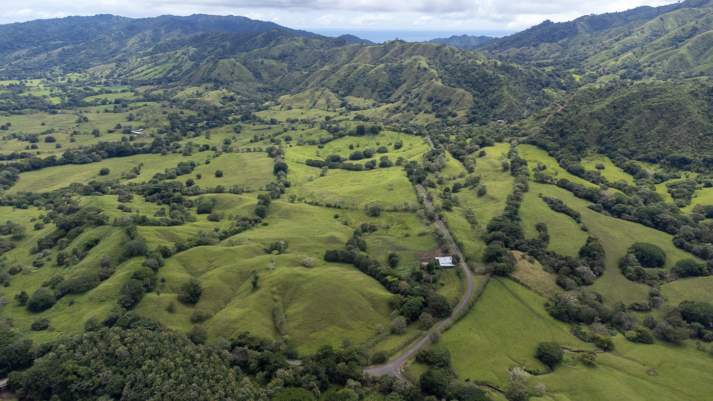 The land is currently functioning as a cattle farm, with most of the area being used as grazing pasture. However, there are several mature trees spread throughout the property. A small stream runs through the land during the rainy season. The property features a rural, tropical setting.