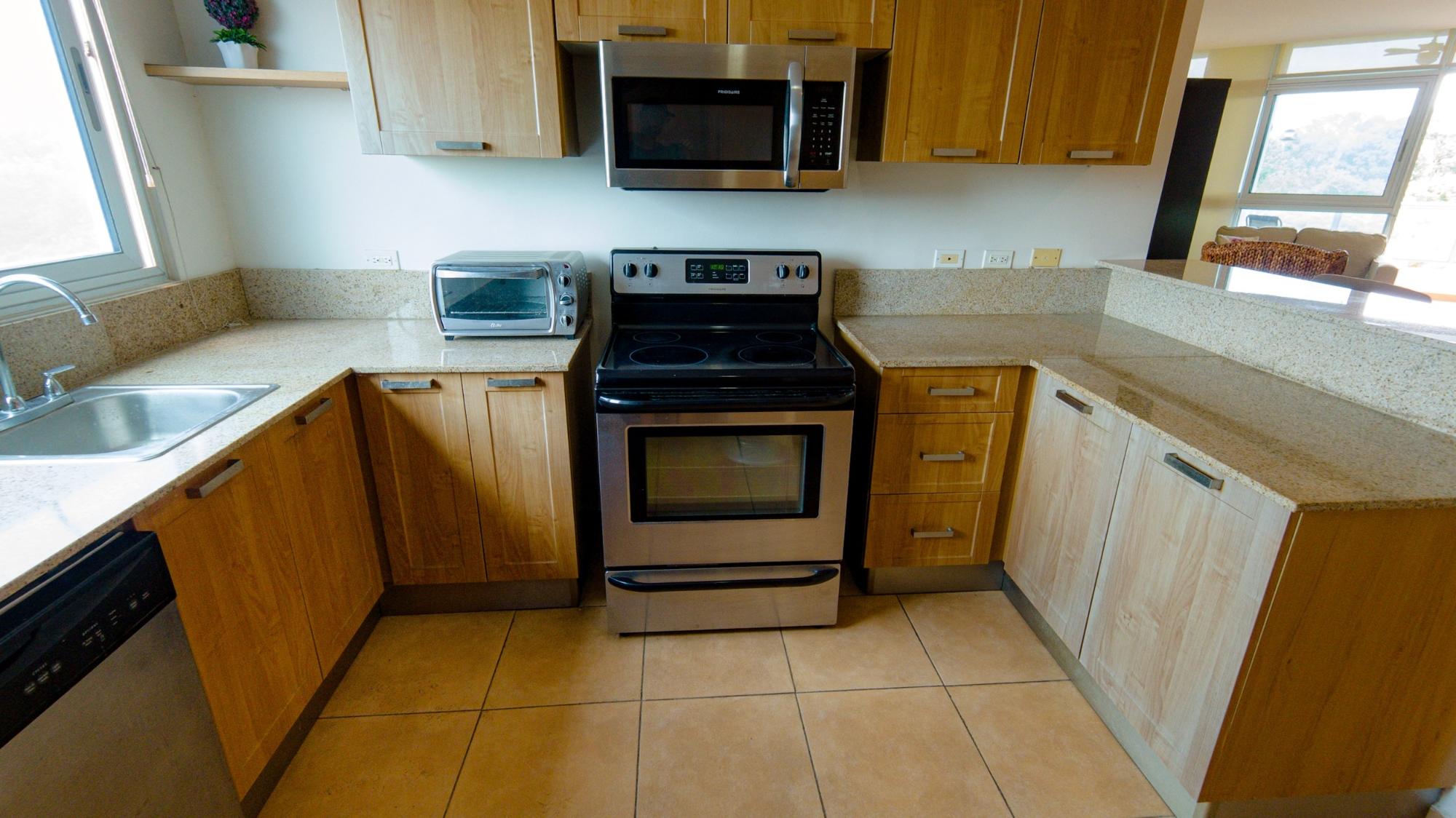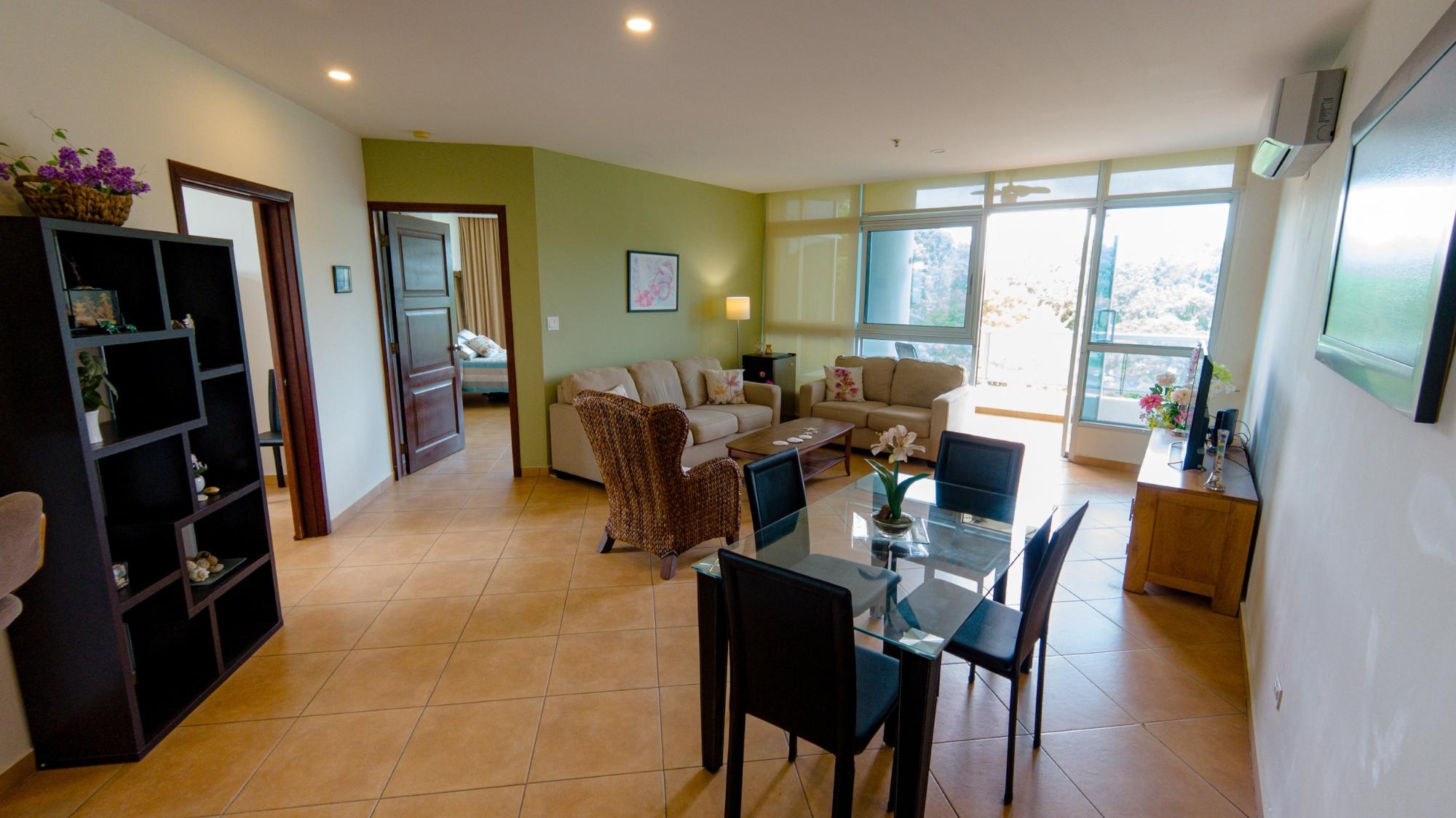 This comfortable and tastefully decorated condo is located in the beautiful ‘Coronado Golf building’ was built in 2010 by the very recognizable BERN Company. Coronado is a relaxed Pacific Coast community only an hour from Panama City and is popular with expats and Panamanians who enjoy its black & white sand beach and the Ocean. It offers 4 major shopping centers, with supermarkets, banks, restaurants, health clinic, dentists, veterinarians, beauty salons, Spa and more. The Condo Located on the 5th floor, this well-appointed move in ready, two bedroom, two-bath condo is offering views of the coast, the beach and the Golf course. Decorated in beach style, it offers the following: Spacious great room with dining area and access to the balcony Fully equipped kitchen with pantry storage, granite counter tops, dishwasher, large fridge, stove, microwave, and access to laundry room with washer/dryer, demand hot water heater Master suite with walk-through closet and private bathroom with soaker tub Guest bedroom Balcony with ocean view 1 parking place The bedroom and main room have floor to ceiling windows, bringing in plenty of light, and windows on both sides provide great airflow year-round. The entire apartment has golf and mountain views. The building The building was completed in 2010. It still offers 5 years of tax exemption. 31 apartment levels 4 high speed elevators, Stunning panoramic roof top social area with Swimming pool, Jacuzzis, fully equipped gymnasium, games room, Children’s playground area and pool on ground level, Building Management Services, 24-hour security,