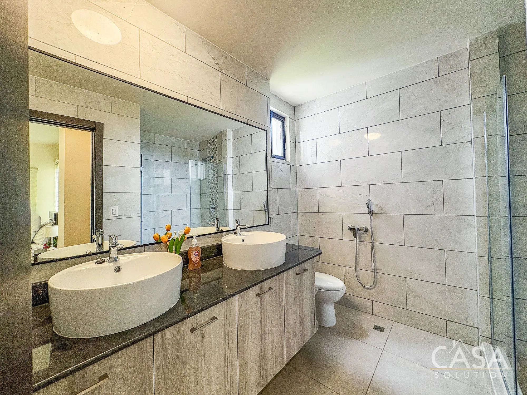 Model A offers two bedrooms, including a primary bedroom with a private bathroom and space to organize a comfortable sleeping area. The second bedroom receives good natural light and is located next to the full guest bathroom.