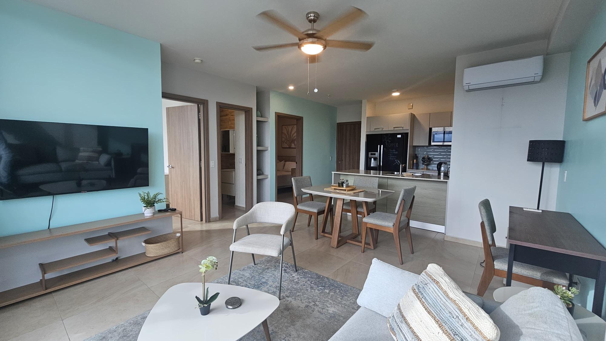Welcome to PH Royal Palm. This complex sits on the beach of Nueva Gorgona, only 10 minutes to Coronado center where you can find all your necesities and basic needs along with banks, medical facilities and shops and restaurants. This 70m2 (754ft sq) unit is located on the sunrise side of the building, greating you with stunning sunrises everyday from the comfort of your balcony and bedroom. The unit comes fully furnished, with a little desk area for those who need a work space, 2 closed off bedrooms and 1 bathroom with shower and sink. The kitchen is open and gives onto the views of the mountains of Chame and the closer you get to the balcony, then you get to appreciate the ocean as well. This unit has something for everyone. Pet-friendly, with a little dog park for your furry babies, this apartment is perfect for a small family, a couple, or a single person who would like to have room to accomodate friends and family. Do not miss your chance to purchase or rent this apartment, in both cases you would be making a great deal!