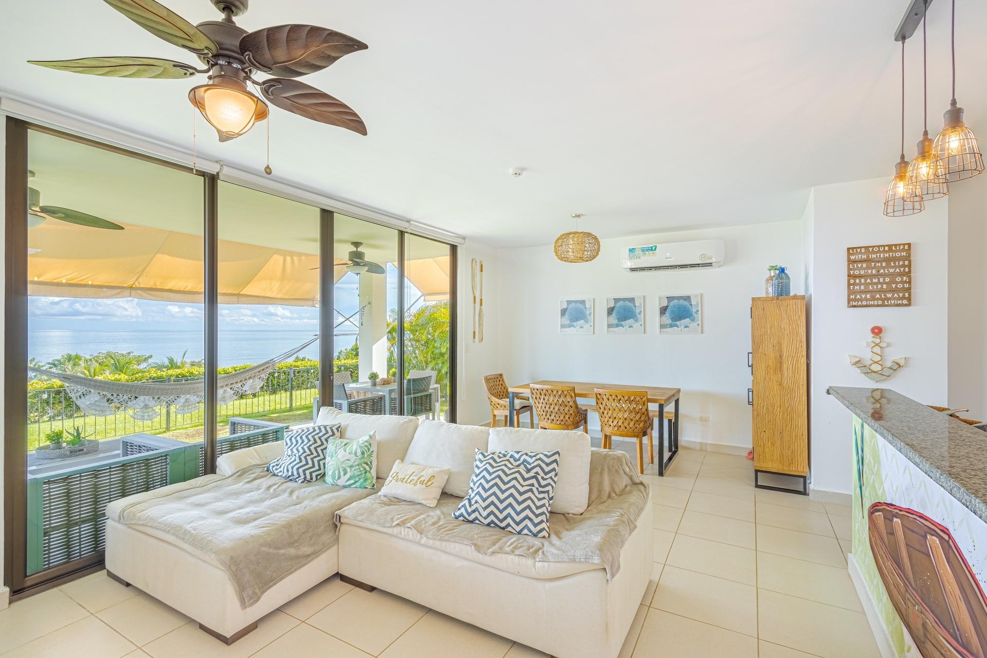 Wake Up to Waves, Sunlight, and Easy Coastal Living at PH Malecón Wake up to the sound of waves and sunlight streaming through your window. From the moment you open your eyes, the ocean is right there — calm, blue, and endlessly inviting. That’s life at PH Malecón, Ensenada. This fully furnished ground-floor apartment gives you everything you need for relaxed coastal living. With two spacious bedrooms (both with ocean views), two bathrooms, and 121 m² of open, bright space, it’s designed for comfort and connection. The private patio is the heart of the home — perfect for morning coffee, sunset dinners, or simply enjoying the ocean breeze any time of day. Life here flows easily. The Ensenada community offers resort-style amenities that make every day feel like a getaway: Swimming pools and gazebos Tennis and padel courts Beach volleyball Children’s playground Access to the Ensenada Beach Club with three pools, a kids’ pool, gym, sauna, jacuzzi, and beachfront lounge areas You’ll never have to worry about the little things either. This property comes with no outstanding taxes, 24/7 gated security, a water reserve system, and a full power plant. Everything is beautifully maintained with an HOA fee of $269/month — all you have to do is enjoy. In the evenings, the sky turns pink and gold as the sun dips below the horizon. Sit on your patio, listen to the waves, and remember how lucky you are to call this place home. Because at Ensenada, it’s not just about where you live — it’s about how you live. Easy. Peaceful. By the ocean.