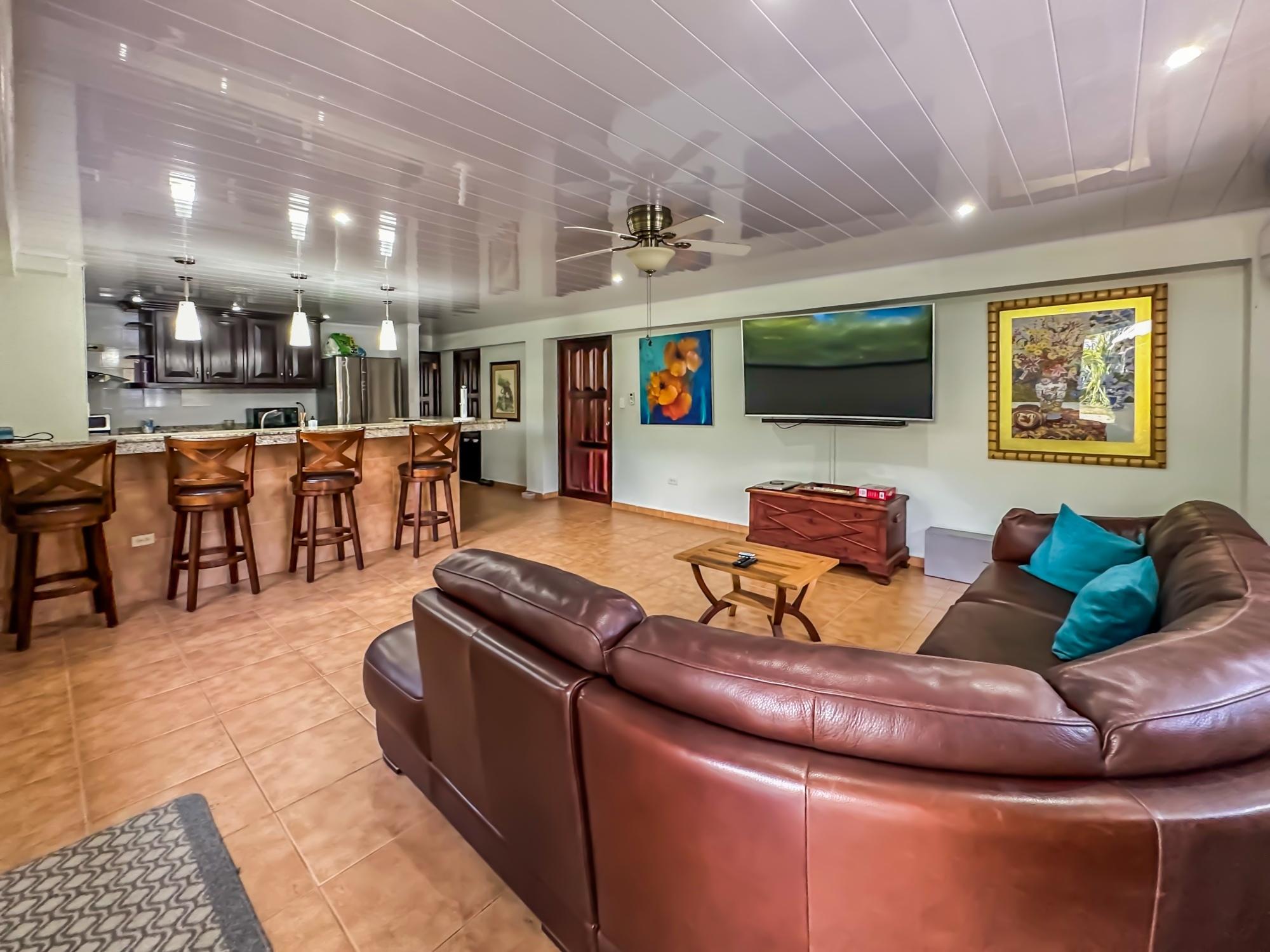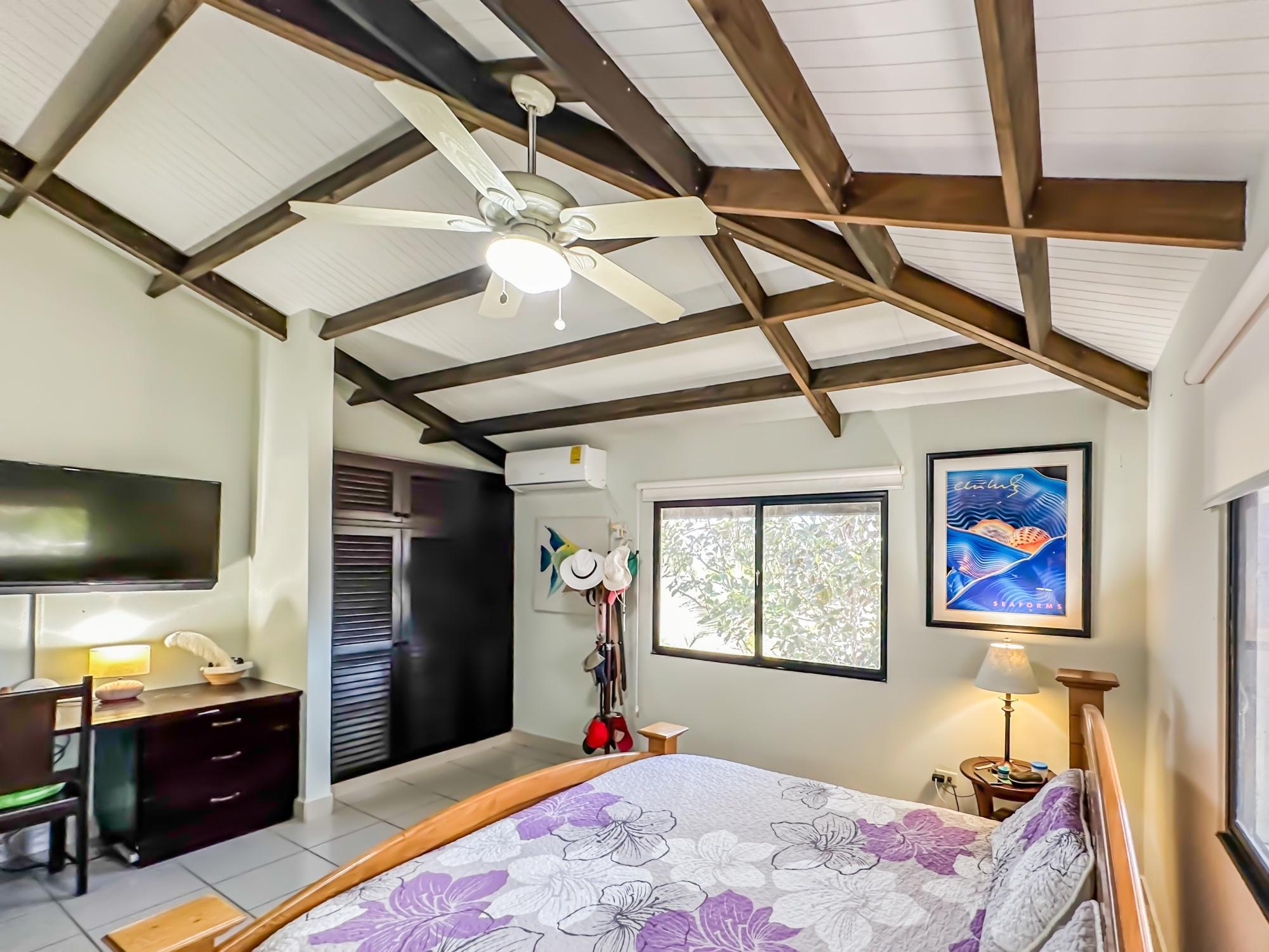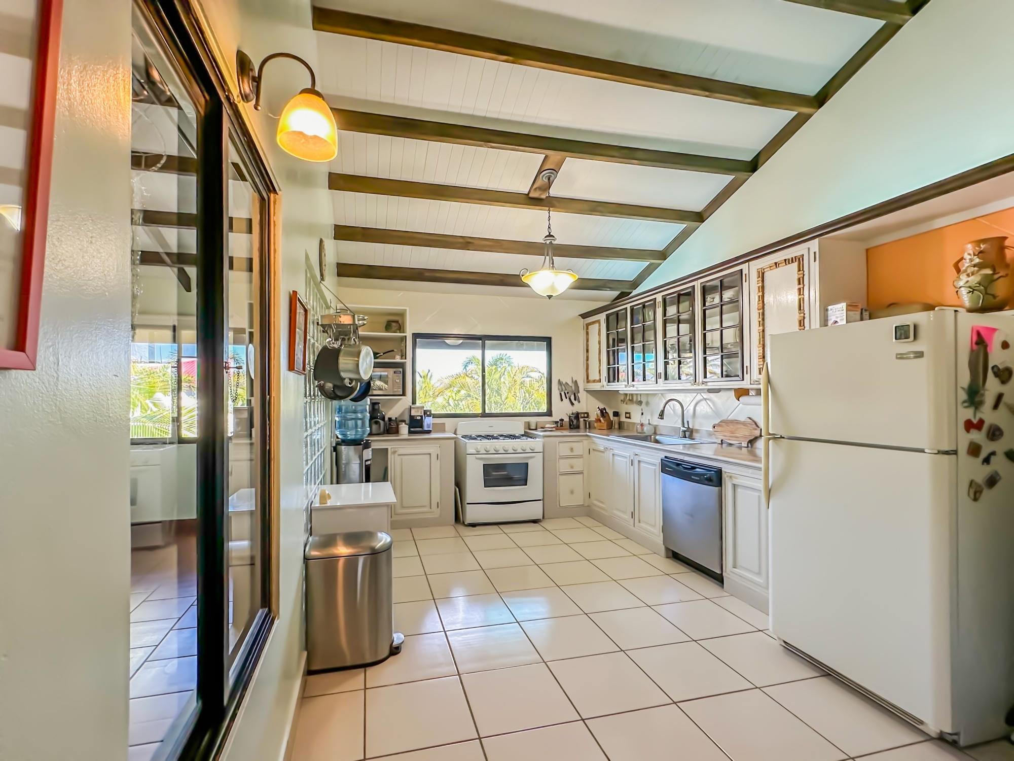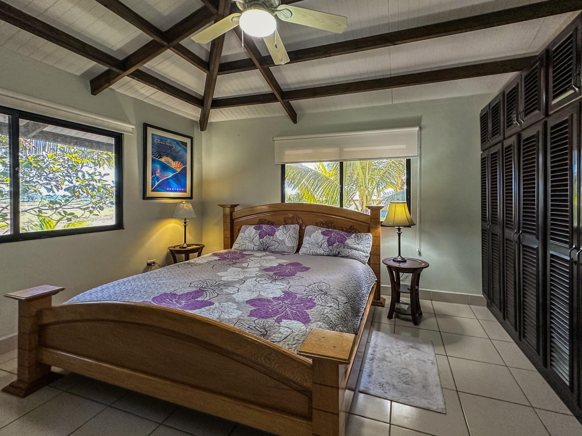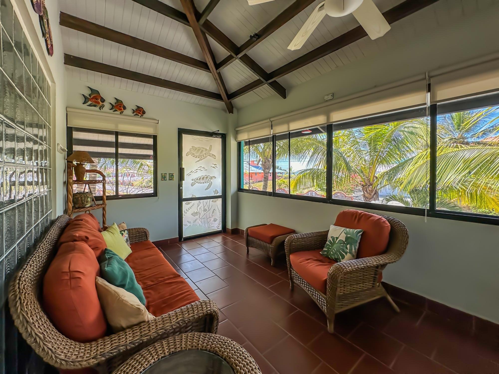 If you are in the market for a beach house, you are in luck as this delightful beach house is now up for sale at an incredible price. There has been one owner who has had many enjoyable years living here. It is located in Barqueta Nice, a small gated community on the beach of Playa Barqueta which is a 35 minute drive through the country side west of David. Playa Barqueta is the longest beach in Panama, 16 miles, no crowds and great for morning and sunset strolls. Barqueta Nice has a friendly international community of about 60 homes, with condos and a hotel just outside it’s gate. The house is two levels with the upstairs living area boasting 2 bedrooms, 2 bathrooms, laundry room and a screened patio perfect for enjoying your morning coffee. There is a spacious kitchen and cozy living room ideal for relaxing after a long day. But that’s not all – this property also includes a separate one-bedroom rental unit downstairs, providing potential rental income or space for extended family members. The possibilities are endless with this unique layout. From this unit you step out into the meticulously designed landscaping surrounding a salt water pool that creates a serene and inviting atmosphere, perfect for relaxing on hot days. The saltwater pool offers a much gentler alternative to traditional chlorine pools, providing a more natural and eco-friendly swimming experience. This home has easy beach access through the path starting directly across the road. Less than one minute your toes are in the sand.