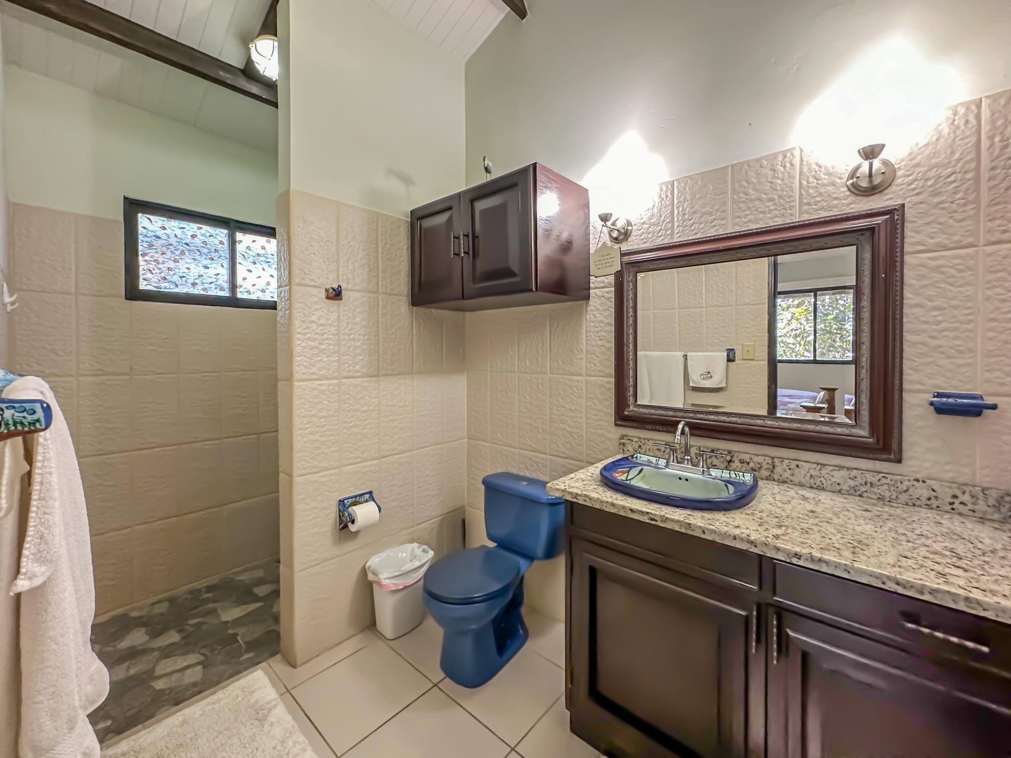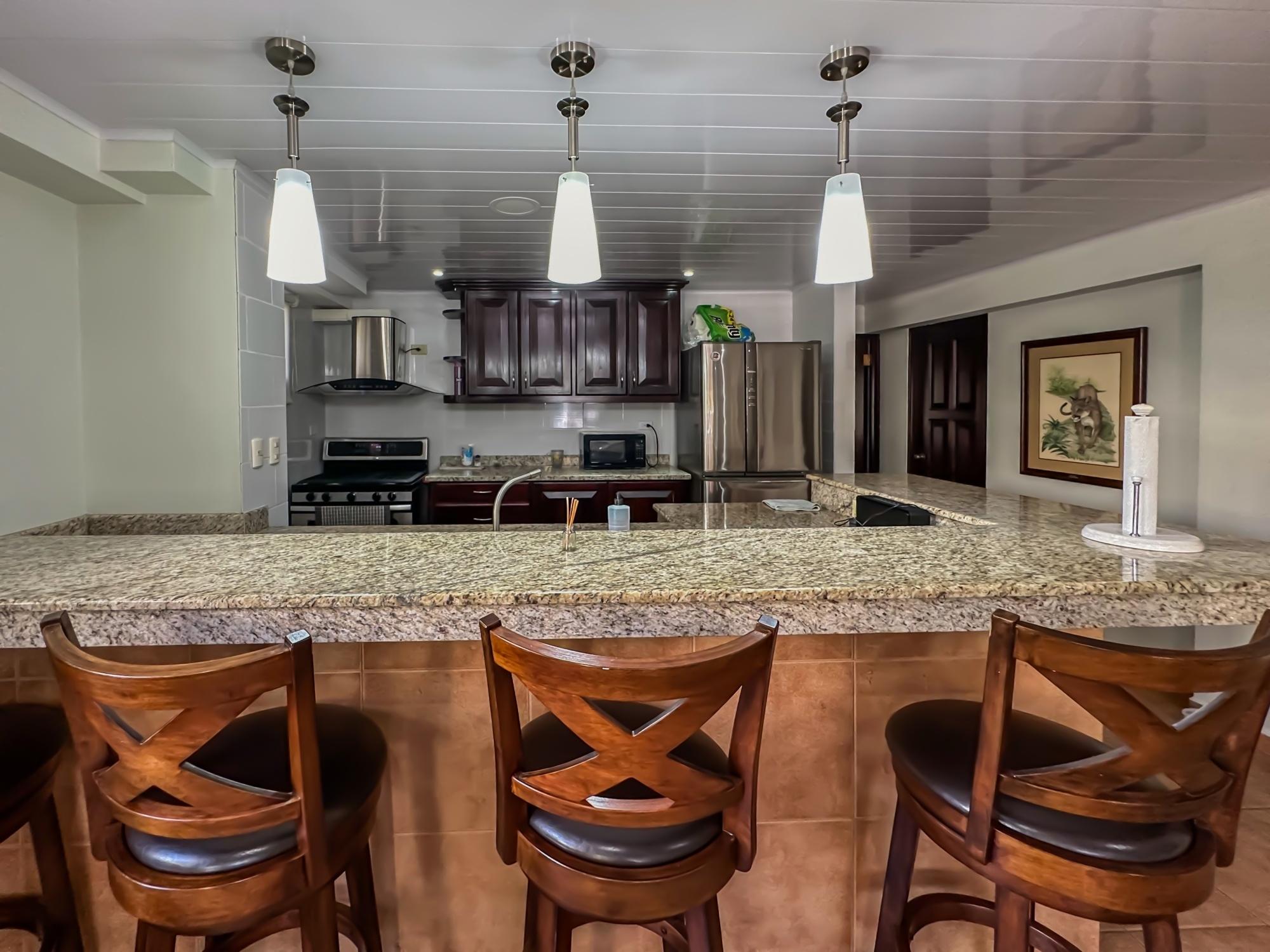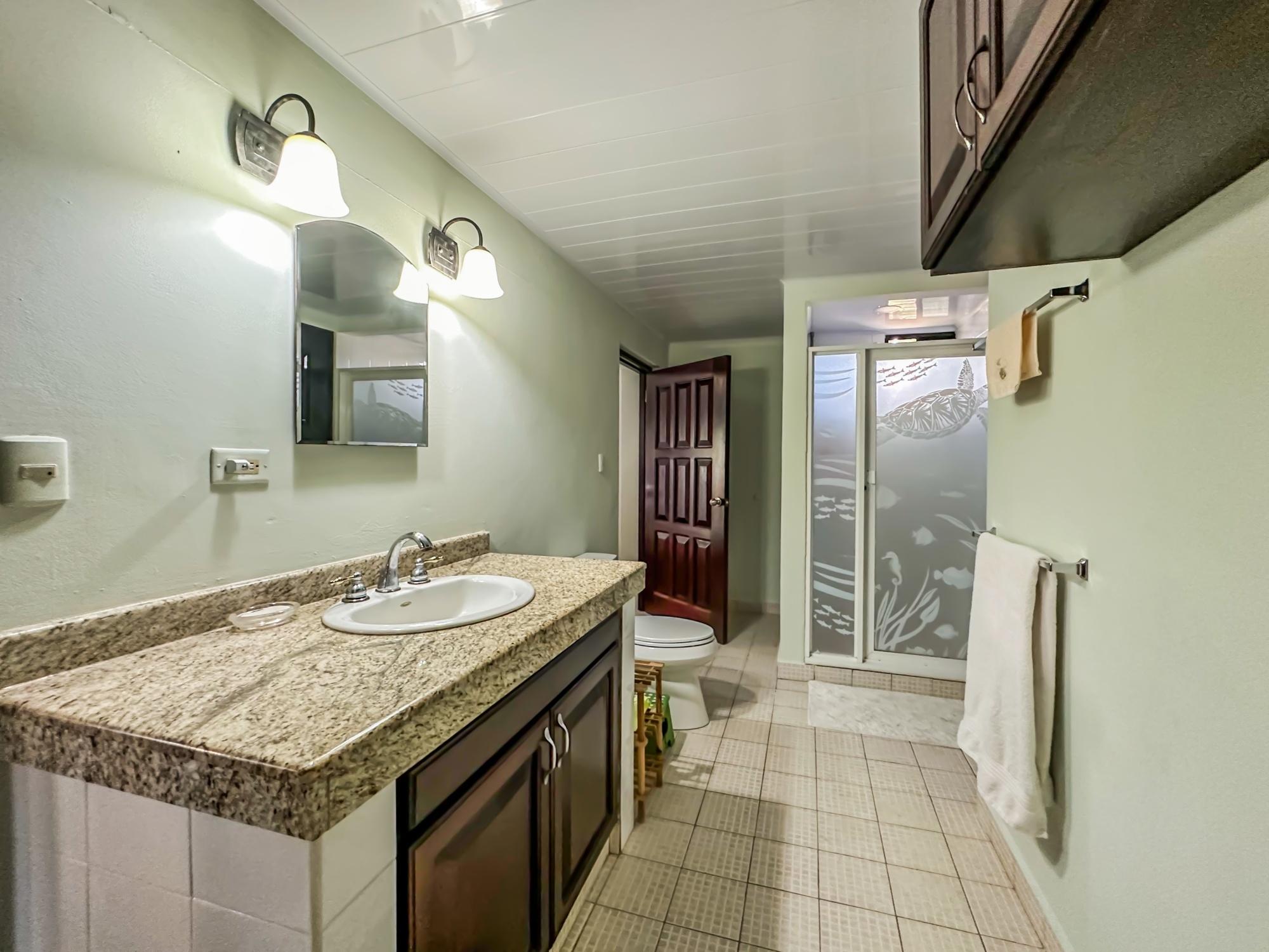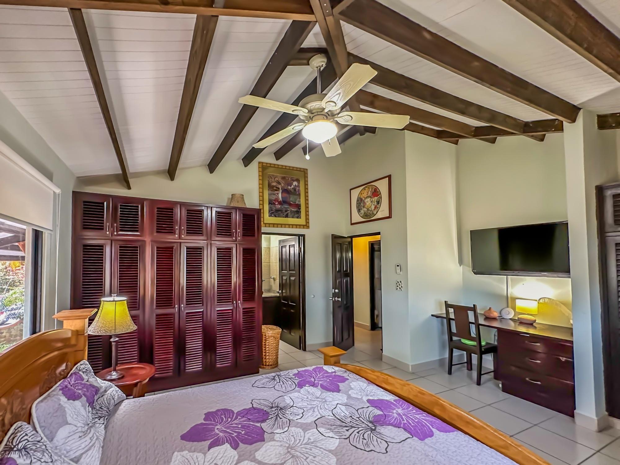 If you are in the market for a beach house, you are in luck as this delightful beach house is now up for sale at an incredible price. There has been one owner who has had many enjoyable years living here. It is located in Barqueta Nice, a small gated community on the beach of Playa Barqueta which is a 35 minute drive through the country side west of David. Playa Barqueta is the longest beach in Panama, 16 miles, no crowds and great for morning and sunset strolls. Barqueta Nice has a friendly international community of about 60 homes, with condos and a hotel just outside it’s gate. The house is two levels with the upstairs living area boasting 2 bedrooms, 2 bathrooms, laundry room and a screened patio perfect for enjoying your morning coffee. There is a spacious kitchen and cozy living room ideal for relaxing after a long day. But that’s not all – this property also includes a separate one-bedroom rental unit downstairs, providing potential rental income or space for extended family members. The possibilities are endless with this unique layout. From this unit you step out into the meticulously designed landscaping surrounding a salt water pool that creates a serene and inviting atmosphere, perfect for relaxing on hot days. The saltwater pool offers a much gentler alternative to traditional chlorine pools, providing a more natural and eco-friendly swimming experience. This home has easy beach access through the path starting directly across the road. Less than one minute your toes are in the sand.