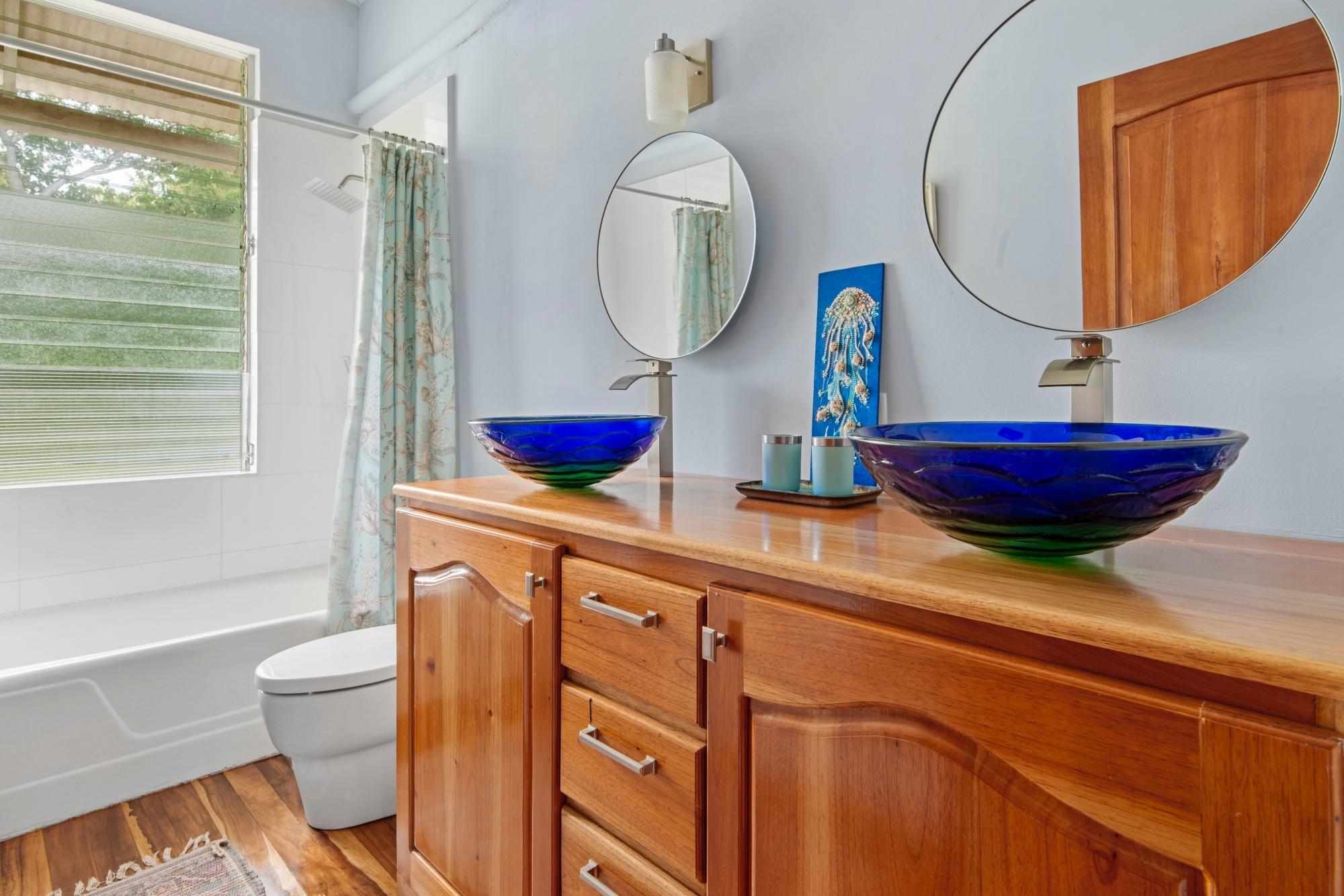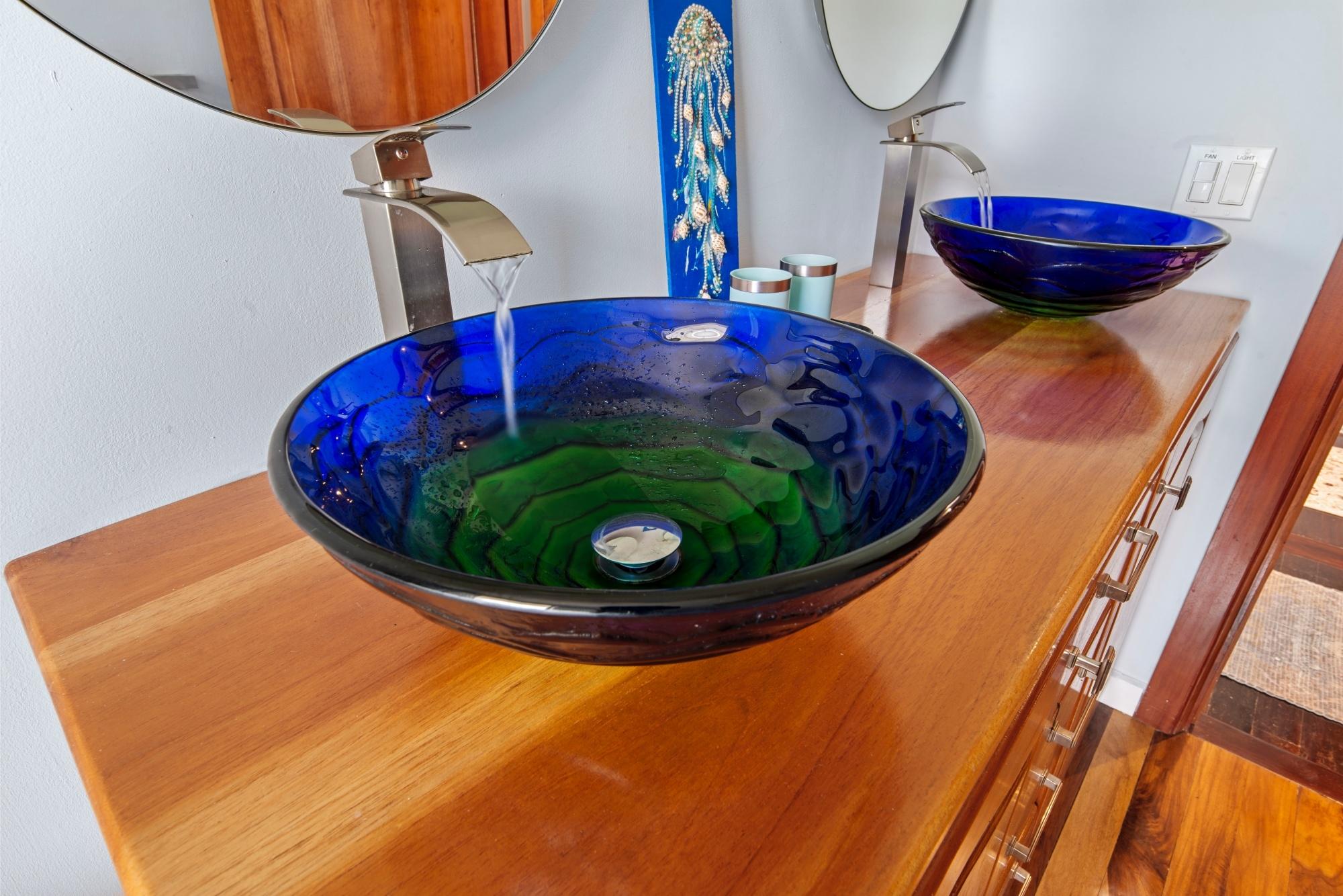 Where history meets modern day, this beautiful newly renovated and decorated Chiquita Banana Executive home in the beautiful neighborhood of Las Palmas, Puerto Armuelles is now for sale. Puerto Armuelles is a coastal town on the west end of Panama near the border of Costa Rica, known for its history as a banana port. It is a thriving town with new roads, a new hospital and major investment potential as a multi-purpose port is being built, that is expected to generate thousands of jobs and attract investment in the region. This beautiful home was one that was originally built for the Chiquita Banana executives and engineers during the company’s presence in the coastal town of Puerto Armuelles. These homes are characterized by their classic tropical colonial design featuring large overhangs, hardwood floors and ventilation for the tropics. Some were built on stilts to allow for airflow and avoid dampness. Las Palmas offers a peaceful atmosphere while being walking distance to town. This home has been completely renovated by a professional decorator and sits on a large beautifully landscaped property with fruit trees all around and surrounded by a deep ravine with a creek and beyond is a nature preserve. You will see and hear howler monkeys and toucans cruising amongst the trees. The home is approximately 2700 sq ft of living space upstairs with the same footage below and is 100% secured with new security bars and can be used for parking or party space. This spacious home has 3 large air conditioned bedrooms and modern bathrooms with top of the line fixtures.