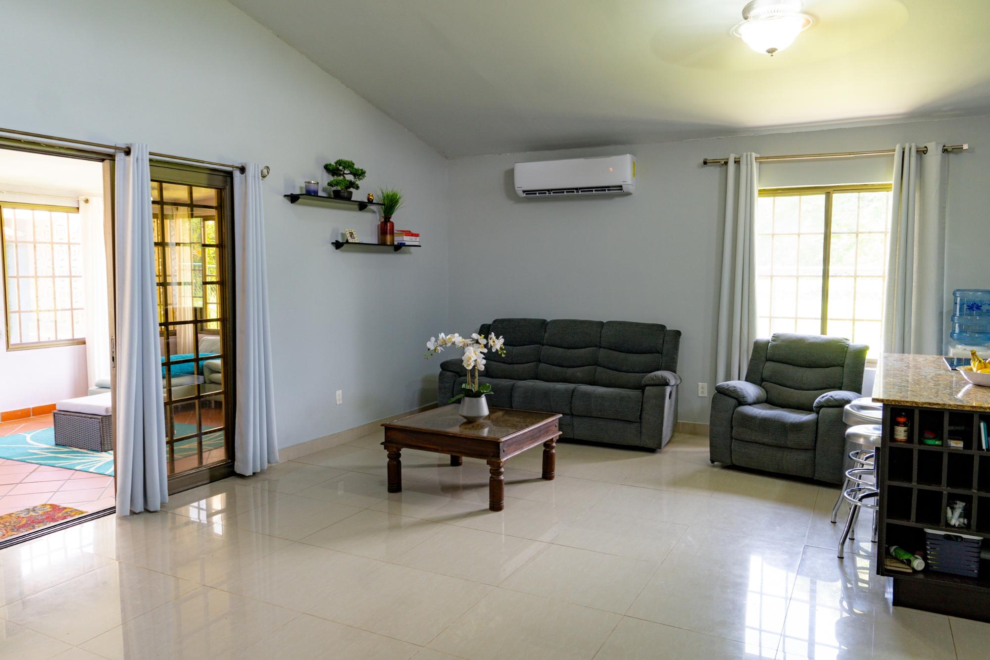This exceptional property in the exclusive area of Chame offers an ideal blend of luxury and investment potential. Situated on a generous 3,400 square meter lot, the main house features two spacious bedrooms and two bathrooms. The open-concept kitchen seamlessly connects to a large living area, which opens onto a covered terrace overlooking the sparkling swimming pool, perfect for relaxation and entertaining. Low maintenance salt water pool and outdoor kitchen. Covered patio is an office, or dining room.1.5 full garage. The property also boasts two studio-style cabins, each with direct access to the pool, a private bathroom, and a kitchen. These cabins are perfect for rentals, Airbnb, or guest accommodations, providing an excellent opportunity for income generation. Surrounded by beautiful gardens, the property offers ample parking and plenty of space for future construction. Located just 10 minutes from Coronado, it is conveniently close to markets and restaurants, ensuring easy access to all essential amenities while maintaining a peaceful and private setting. This unique property is perfect for those looking to enjoy a serene lifestyle with additional income opportunities. Parking for 10 cars.
