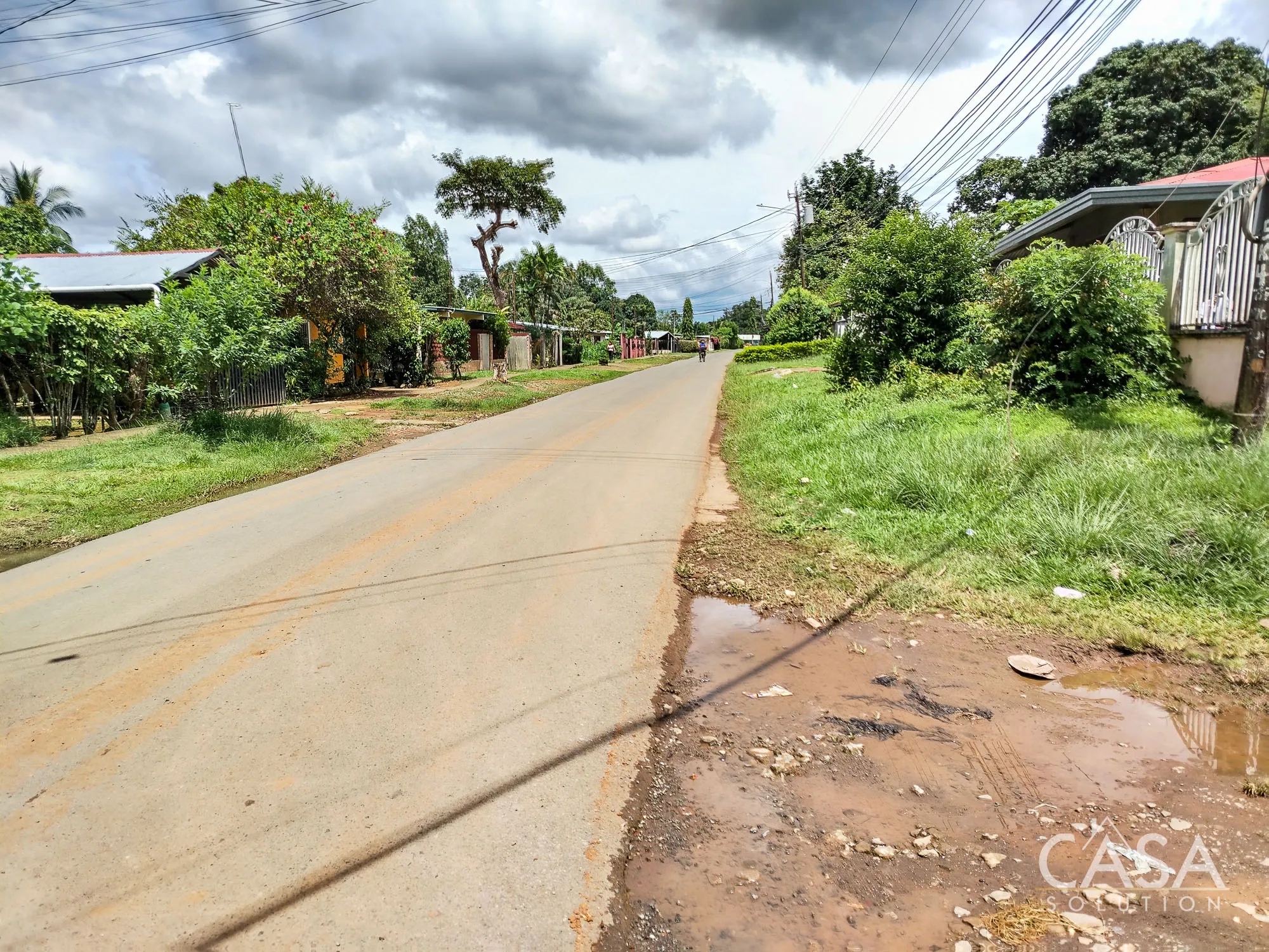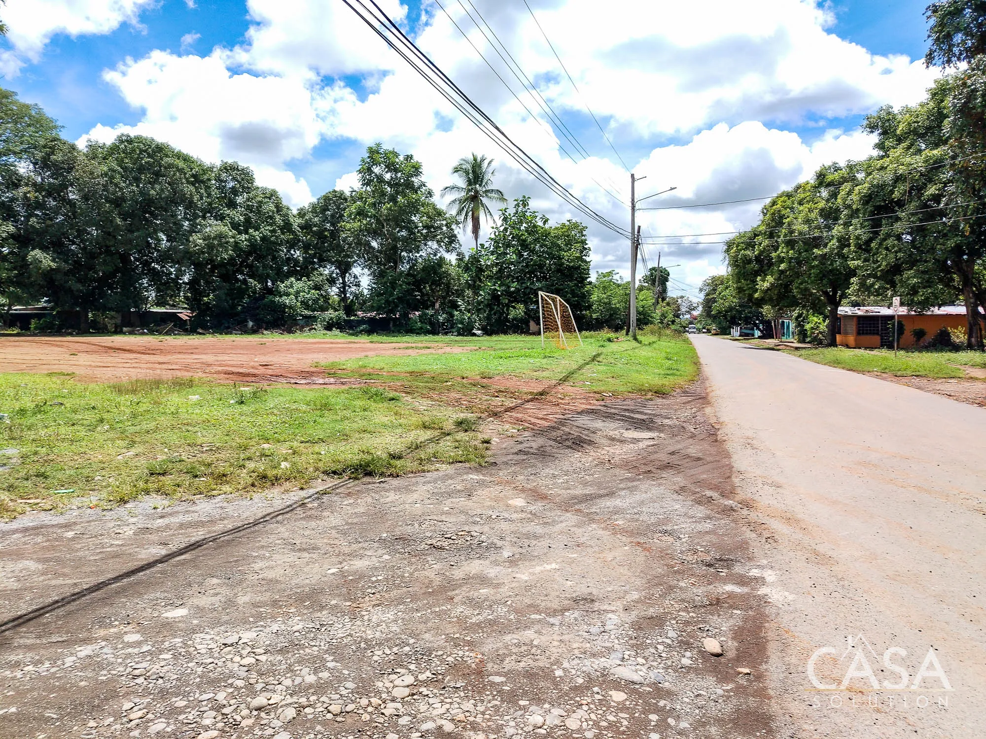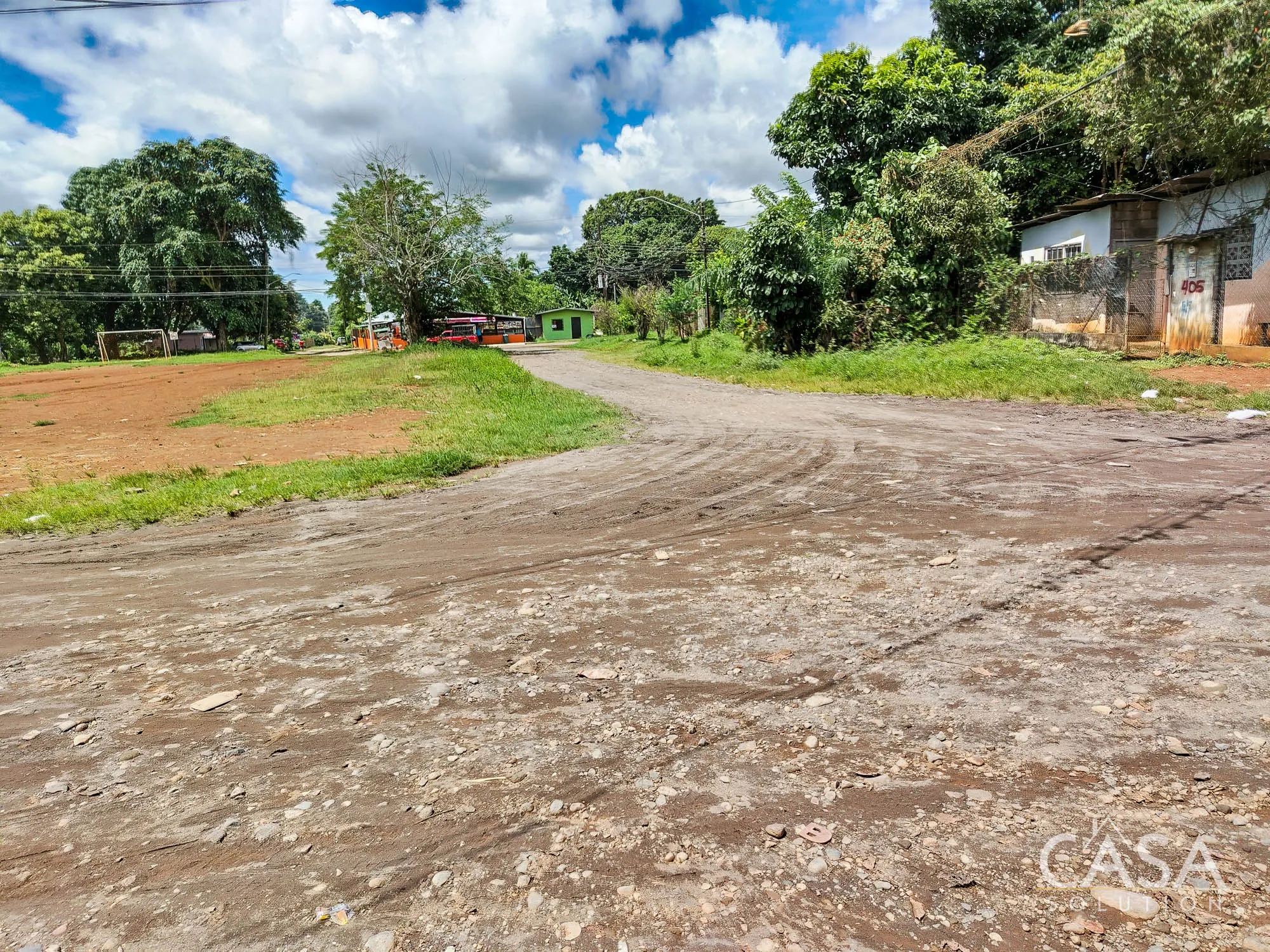 The paved road is located at the front of the property, and this is the route used by local buses serving the area. The other two connecting sides are unpaved roads.