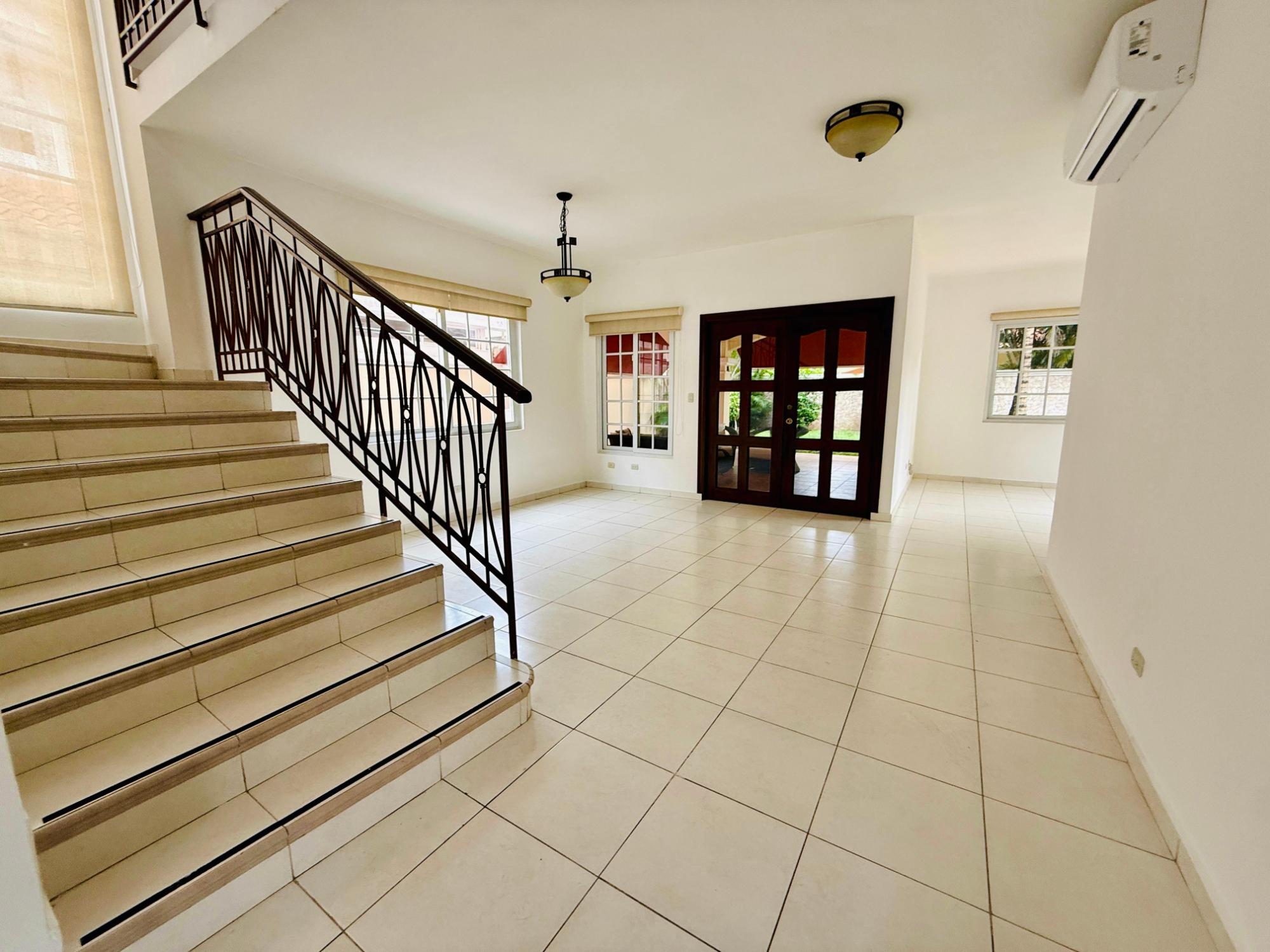 House for Rent in Villa Valencia – Costa Sur. This spacious and comfortable 407 m² house is located in the exclusive Villa Valencia residential area, in Costa Sur. Designed to provide comfort and functionality, it is ideal for families looking for a spacious home in a safe and well-located community. Property Features: 4 bedrooms, each with its own private bathroom, Master bedroom with walk-in closet and balcony, Study ideal for office or family room, 4.5 bathrooms, Maid's quarters and bathroom, Terrace with additional bathroom, Separate laundry area, Air conditioners and lamps installed, Complete appliances included, Villa Valencia residential amenities: 24/7 security, Adult and children's pool, Gym, Playground and green areas, Sports courts: tennis, soccer, and basketball, Event room. Villa Valencia is a gated community that offers tranquility and a family atmosphere, with easy access to main roads, shopping centers, supermarkets, and schools.