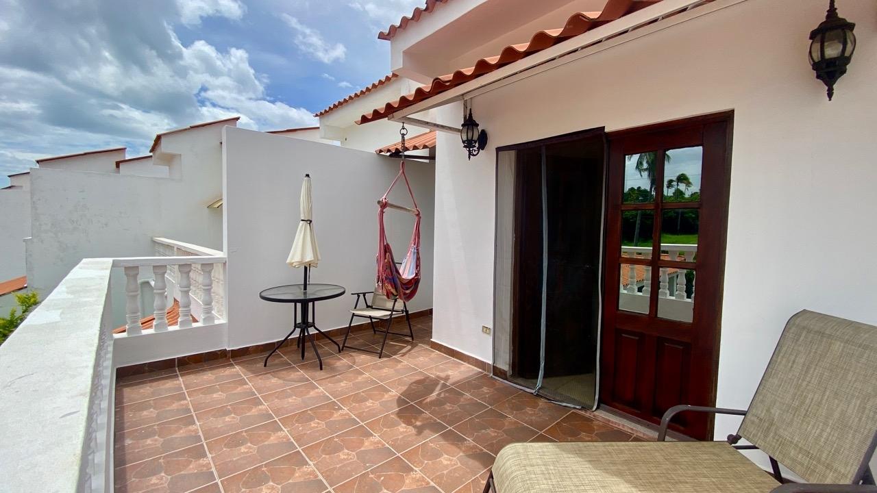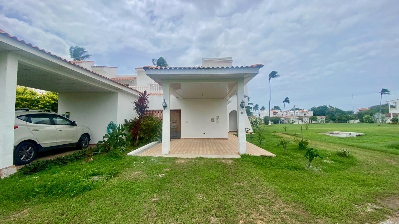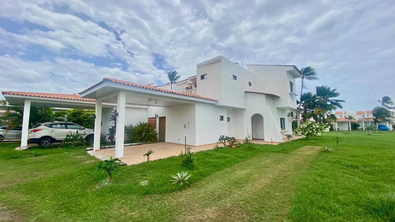 4 bedrooms duplex villa with large terraces and ocean view, fully furnished and ready to move in. THE LOCATION Located 100 meters from the ocean and the beautiful beach of El Rompío, with its fishermen and typical restaurants, here is a nice and friendly complex named "Los Jardines del Rompio". It is a gated community with only 35 houses and a large swimming pool. We are about 15 minutes from Chitre and 20 minutes from Las Tablas. The complex has two different types of houses : the 2 bedroom model and the 3 bedroom model. They all have two stores with a large living area and terrace downstairs and the two or three bedrooms upstairs, each room with private bathroom. ANd both models have a maid's quarter with a full bathroom. THE PROPERTY This beach villa has 259 sqm of construction. The lay out is the following: On the ground floor: •Entrance •Large living-dining room with terrace and garden access, •Nice kitchen, fully furnished and equipped, •Separate WC with basin, •Large covered terrace with dining area, barbecue, and open view, •Small interior courtyard with laundry space, •Maid’s quarter with complete bathroom, •Storage, •Covered parking. First floor: •Three large bedrooms, each one with private bathroom, •Spacious terrace and balcony with open sea view •Large closets in each room As said, this 4 bedrooms duplex villa is ready to move in. Fully furnished and equipped, the villa has been carefully maintained... THE PROJECT This 4 bedrooms duplex villa is ideal for a large family who would like to live close to the ocean in a private and very friendly complex.