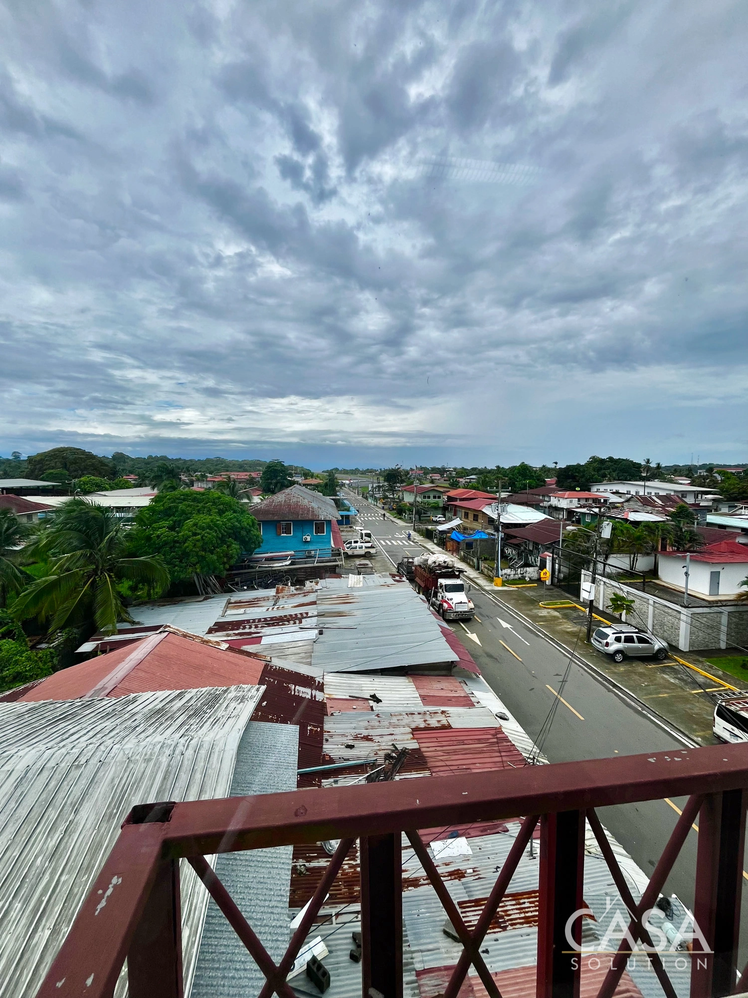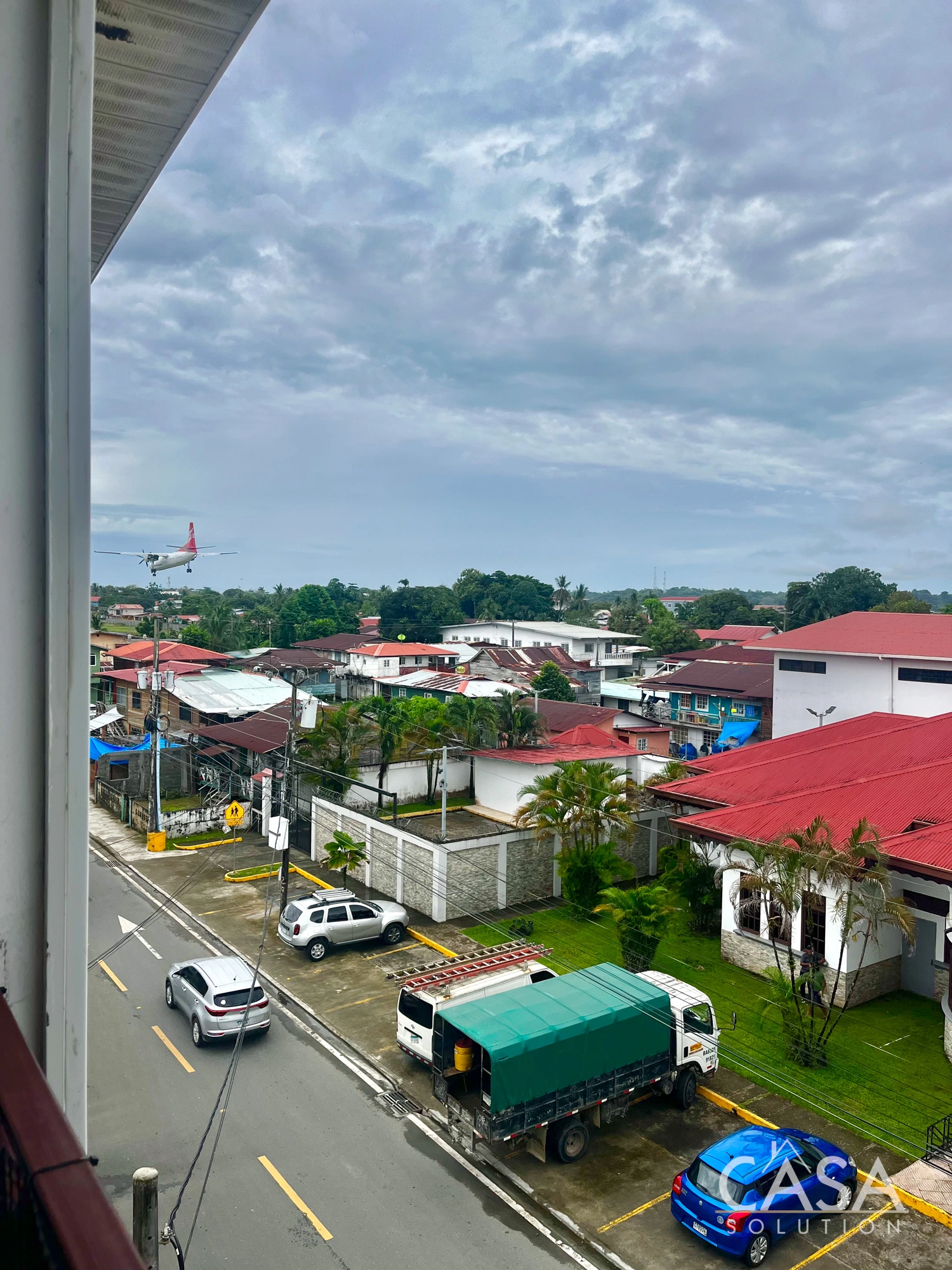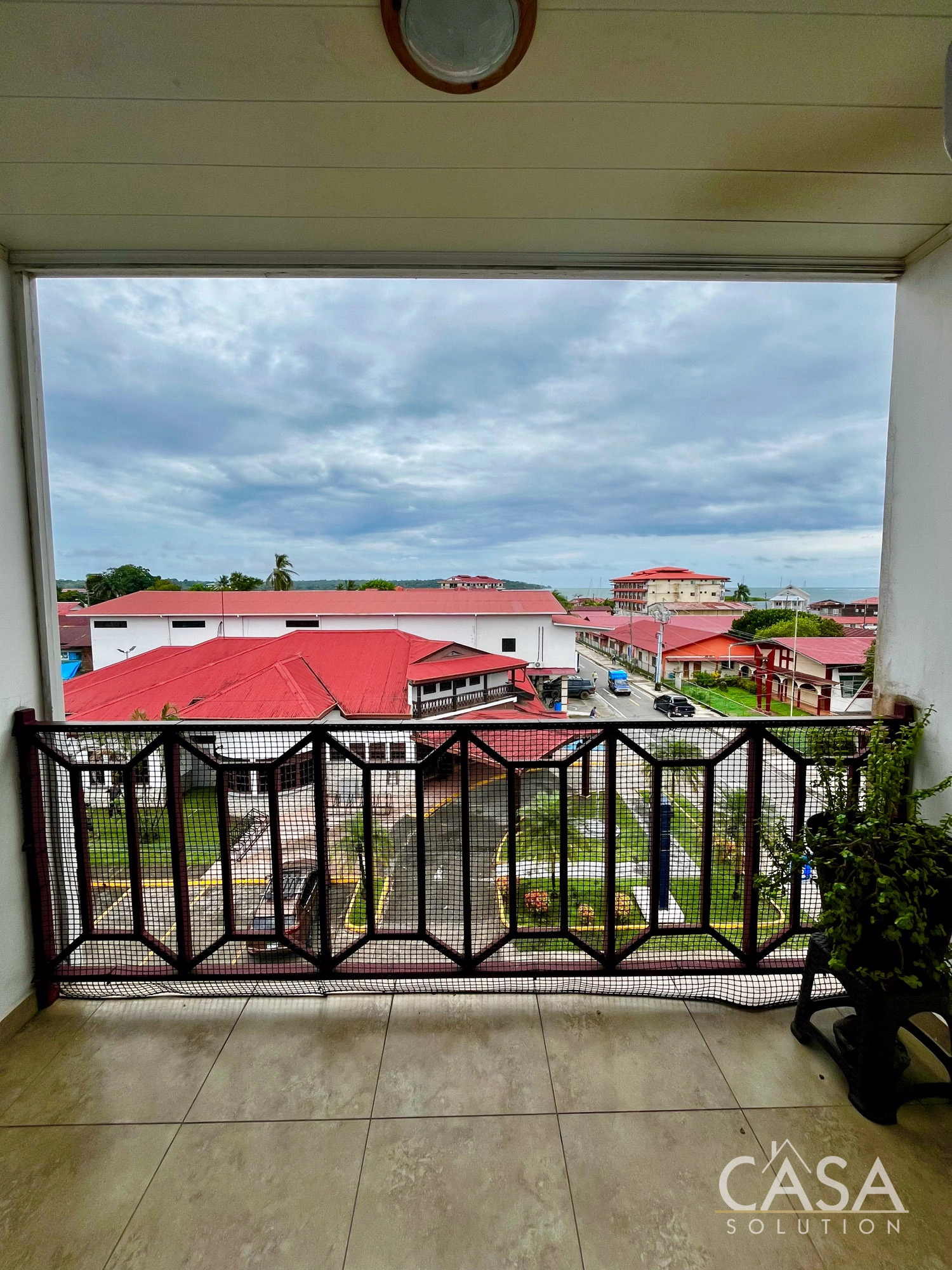 Several units include private balconies with panoramic city views over Isla Colón and the surrounding neighborhood. From upper floors, the views extend across Isla Colon's Town toward the coastline.