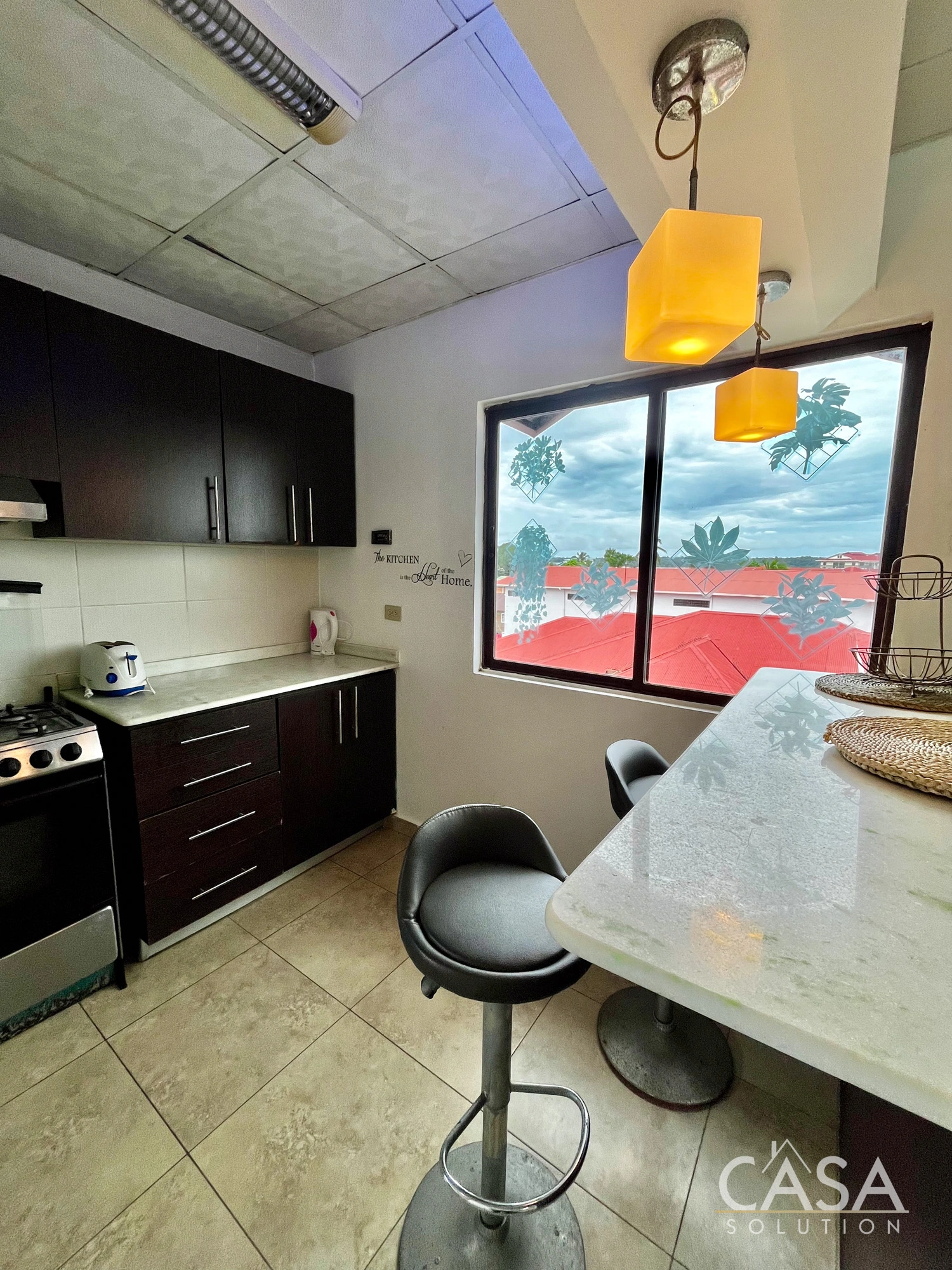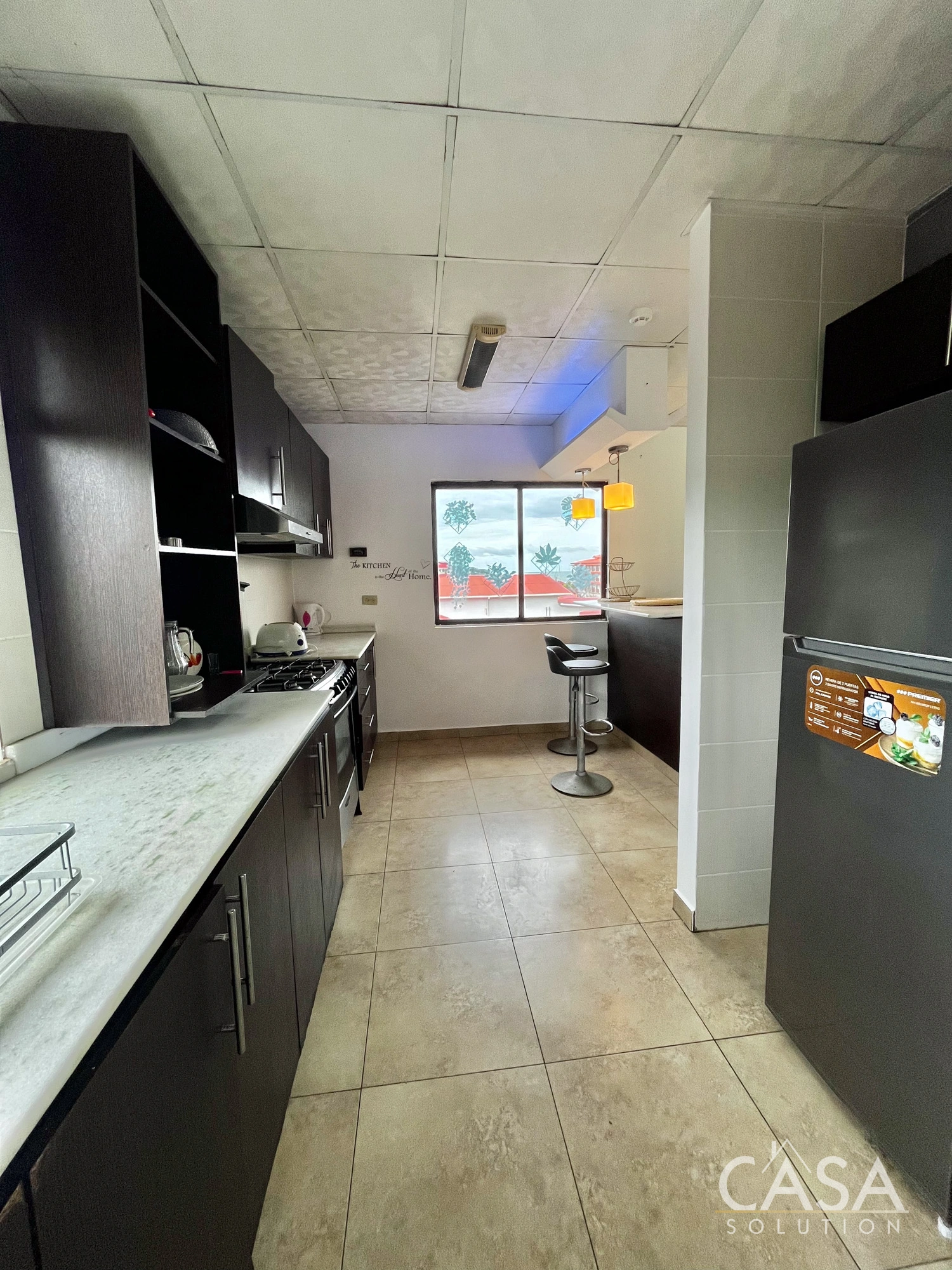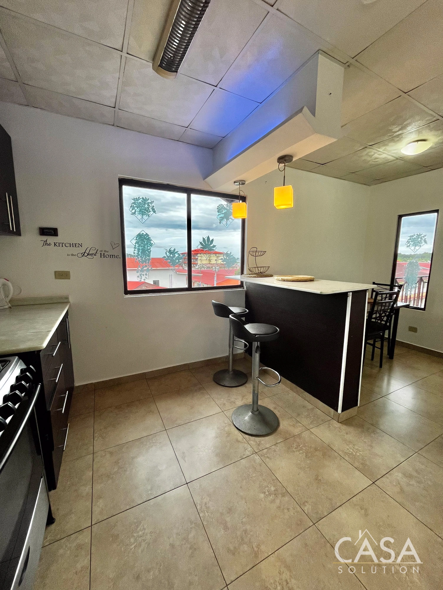 Kitchens include built-in cabinetry, countertops, and full-size appliances. Bedrooms are well-proportioned, and bathrooms are fully tiled with standard fixtures. Window placement and ceiling height support airflow, which is a relevant feature for residential properties in Bocas del Toro’s tropical climate.
