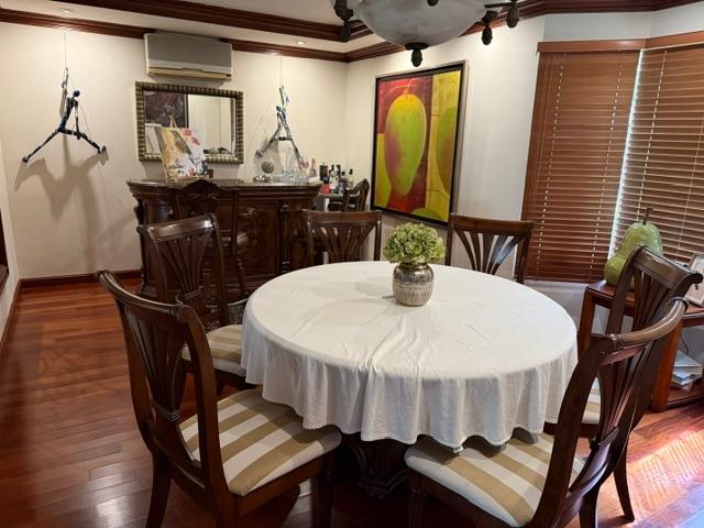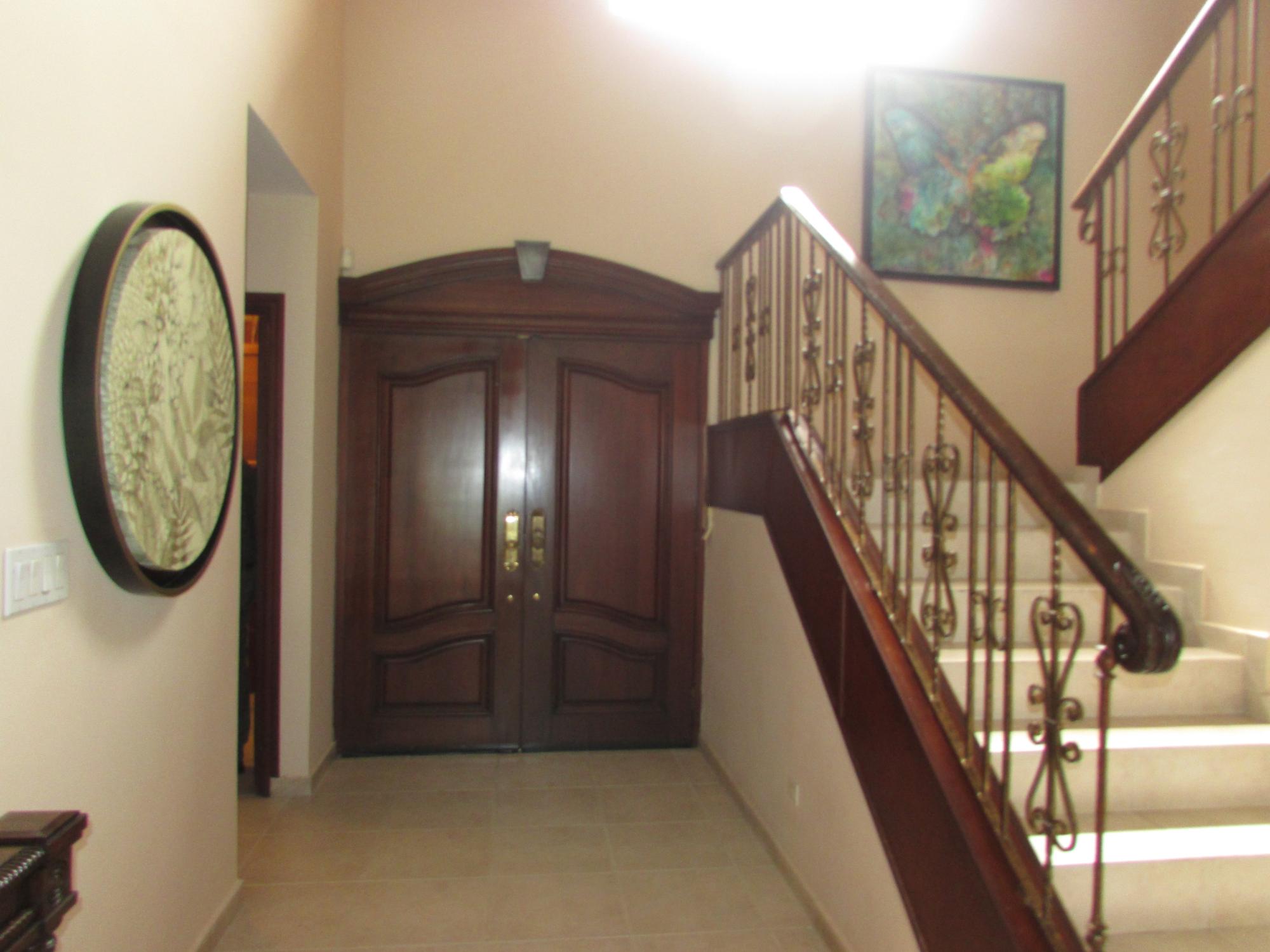 This is a single-family chalet-type home, built on two (2) floors. Below, we list the main spaces that make up the property: * EXTERIORS - Garage for two (2) cars - Portal - Rear terrace - Left side hall - Laundry room - Outdoor storage * GROUND FLOOR - Maid's room and bathroom * UPSTAIRS - Staircase - Family room - Hallway closet - Three (3) bedrooms - Three (3) dressing rooms - Three (3) bathrooms Entrance hall Guest bathroom Living room Den Dining room Breakfast area Pantry Laundry room Indoor storage