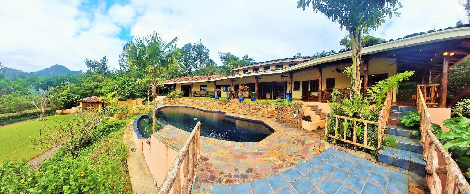 This spacious House for sale in Altos del Ma; it´s a piece of paradise in the mountains of Altos del Maria. Very importantly, as soon as you walk into the house, you will appreciate the views and landscaping. Also, the property sits on a cul de sac, providing privacy and tranquility. Furthermore, there are no neighbors behind this property, only a green belt that has been carefully landscaped to create trails in the middle of the woods. These trails lead to a beautiful forest and a seasonal creek. Property Features: Mangrove Columns and Vigas Tangare and Balsamo Wood Ceiling Tar Paper and Zinc Roofing, Antique Clay Tile Roof Kitchen Granite countertops Large office/5th bedroom Visitor half bath Detached studio with half bath Outdoor shower Car Garage Spacious laundry Swimming pool Short drive to Altos del Maria main entrance About Altos del Maria: Altos del Maria is an established mountain community near Panama City, in the town of Sora, district of Chame. This is a region of natural beauty full of forests, streams, and also waterfalls. Likewise, there are great views from many of its nature trails, all of them well-marked and easy to find. Moreover, from some of them, you can see the Pacific and the Caribbean coasts on a clear day. Another important feature is an activity center that has a pool table, ping pong, gym, and also a party room. There is more, you have parks for outdoor events, also lakes to go fishing. Moreover, it is typical to see wild animals and the area is ideal for birdwatching. Altos del Maria is 30 minutes drive to El Valle de Anton. There is a private road just for the residents. Also, and very importantly, there is