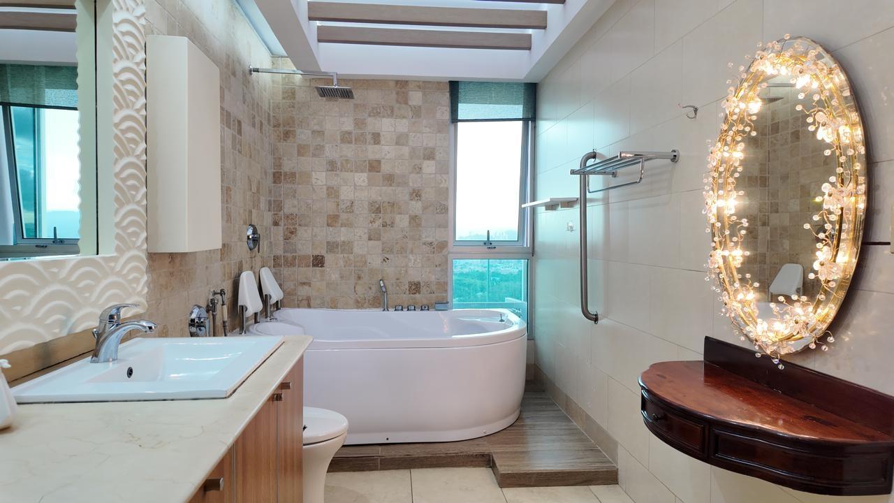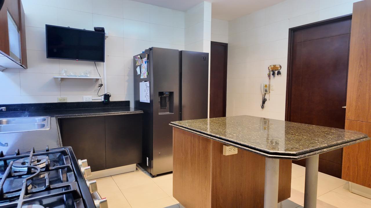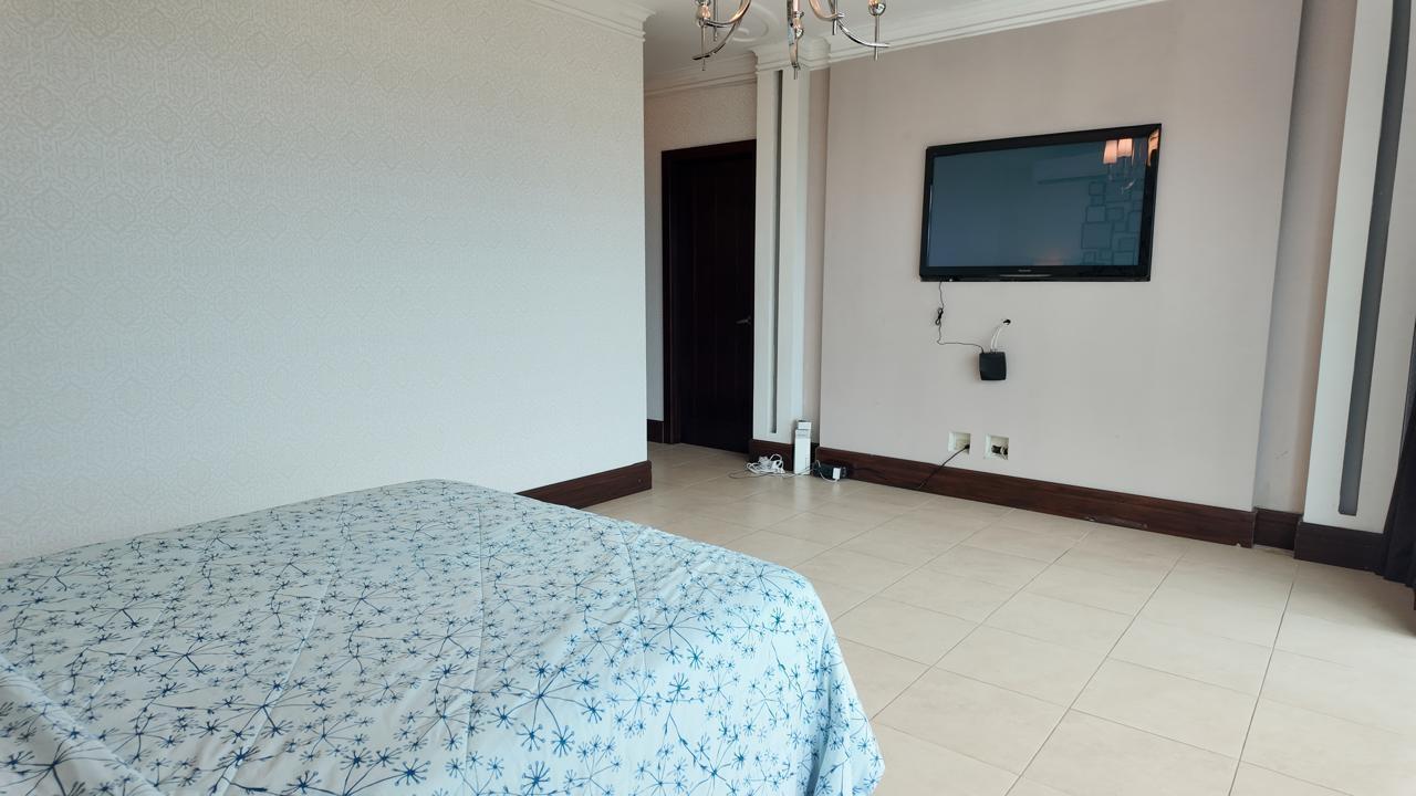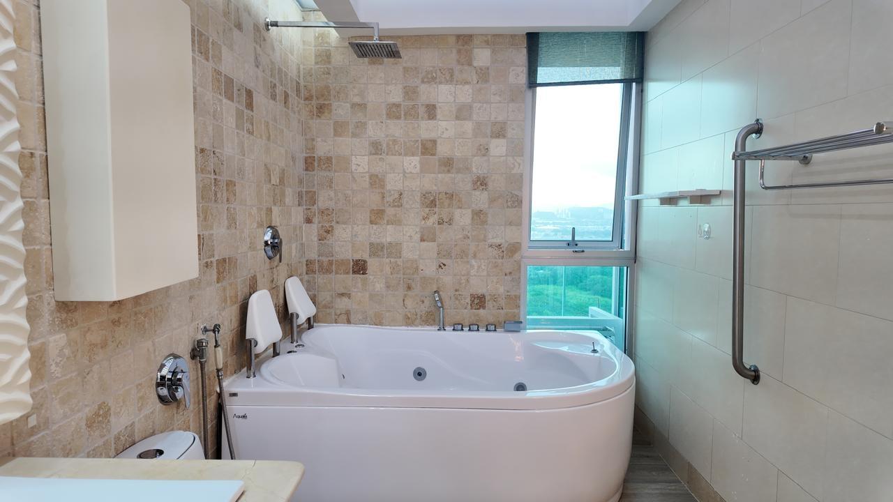 Spacious 228-square-meter apartment with beautiful ocean views from its floor-to-ceiling windows and a terrace with ocean views. With an excellent layout and high ceilings, this apartment has a newly remodeled and equipped kitchen; all windows have roller blinds, curtains, and blackouts. Each bedroom has its own bathroom and walk-in closet, and a large closet in the hallway for storing linens or bedding. The master bedroom is quite spacious, with a balcony and large windows. The bathroom is equipped with a whirlpool tub and a large walking closet. The parking spaces are easily accessible, one next to the other, and next to the large storage room.