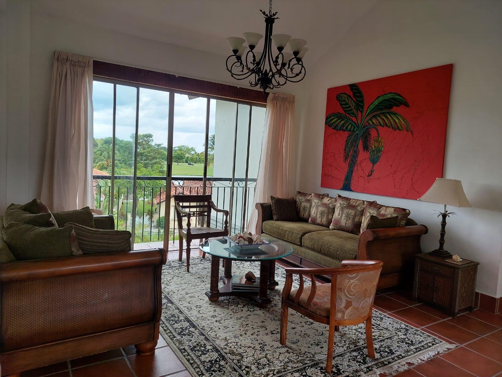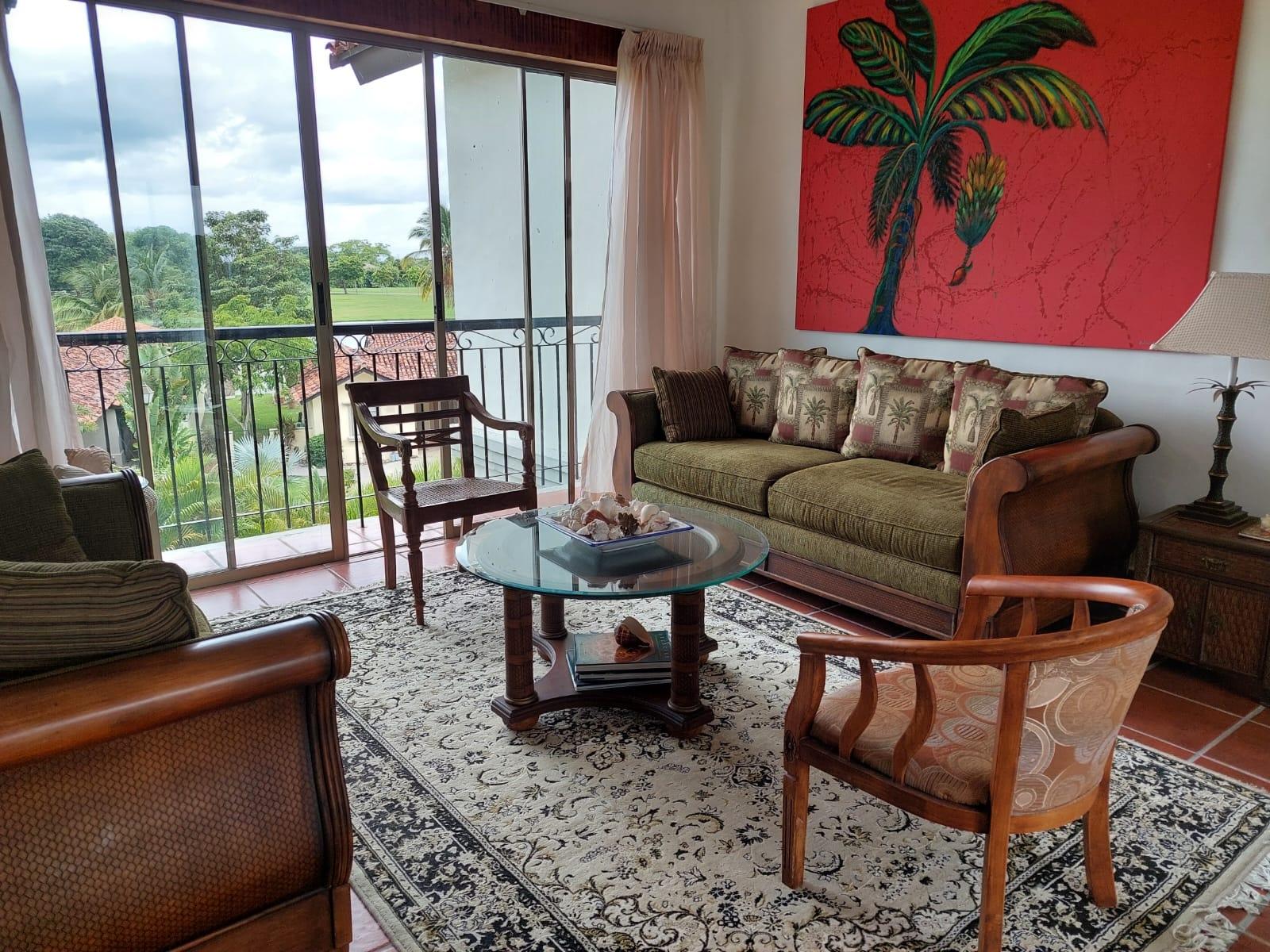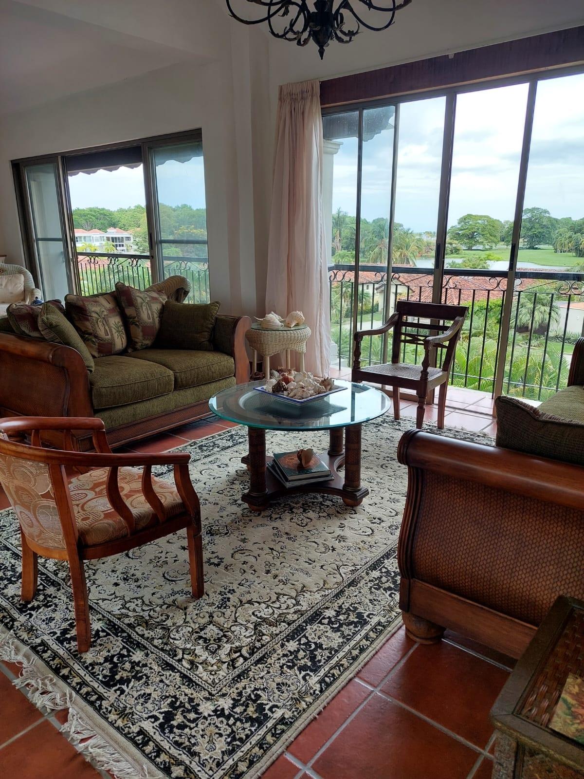 EXCLUSIVE LAKE-VIEW APARTMENT IN BUENAVENTURA Experience luxury living in one of Panama's most exclusive Pacific beachfront communities. This stunning 3-bedroom, 2-bathroom apartment offers breathtaking lake views and lush green landscapes. Premium Features: Fully furnished and decorated with Persian rugs Elegant living and dining areas Only 2 apartments per floor for ultimate privacy Access to golf course, equestrian club, and marina International school within the community Beachfront location with pristine views Move-in ready with complete furnishing Smoke-free environment Perfect for those seeking an upscale lifestyle surrounded by natural beauty. Ideal for golf enthusiasts, horse lovers, and water sports aficionados. No pets allowed. Building features freight elevator for luggage and groceries.
