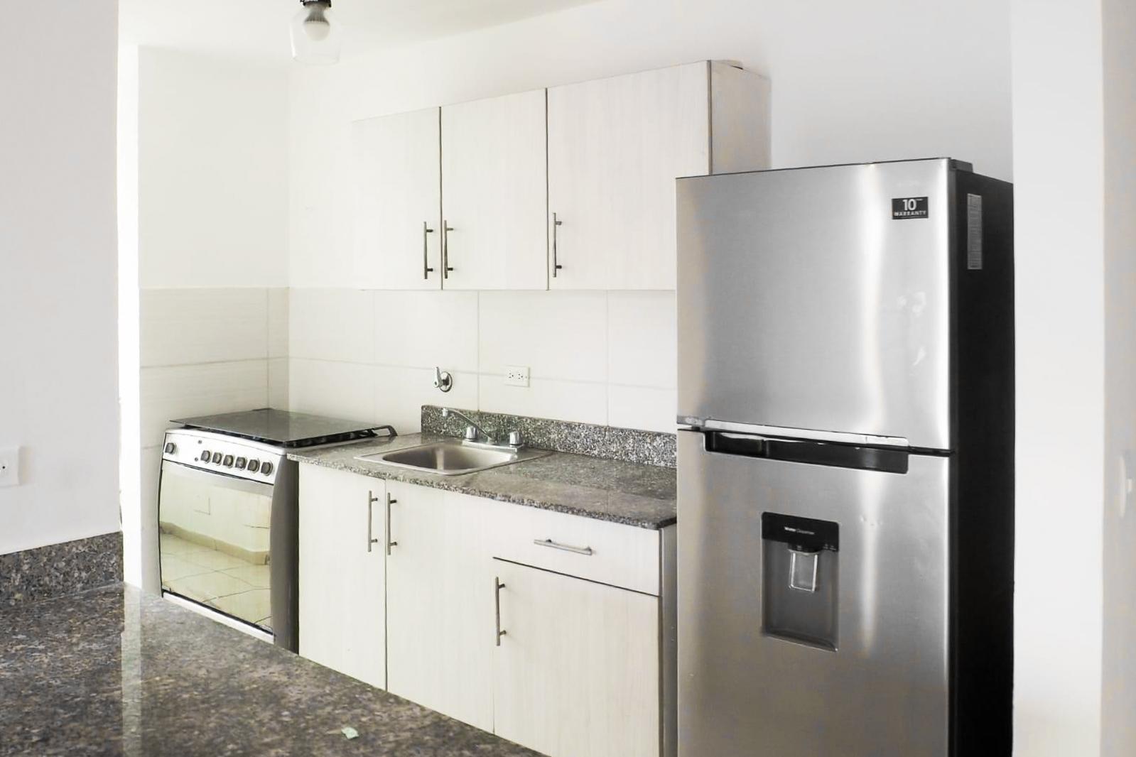 Apartment of 59 square meters with 2 bedrooms, 1 bathroom, living room, dining room, kitchen, laundry room, balcony, covered parking and access control, semi-furnished, refrigerator, stove, air conditioning in the master bedroom, water heater, sofa, TV cabinet, facilities, 24-hour security booth, building management, concierge and cleaning service, visitor parking area, swimming pool, children's play area, adult play area, BBQ area, party room and gym.