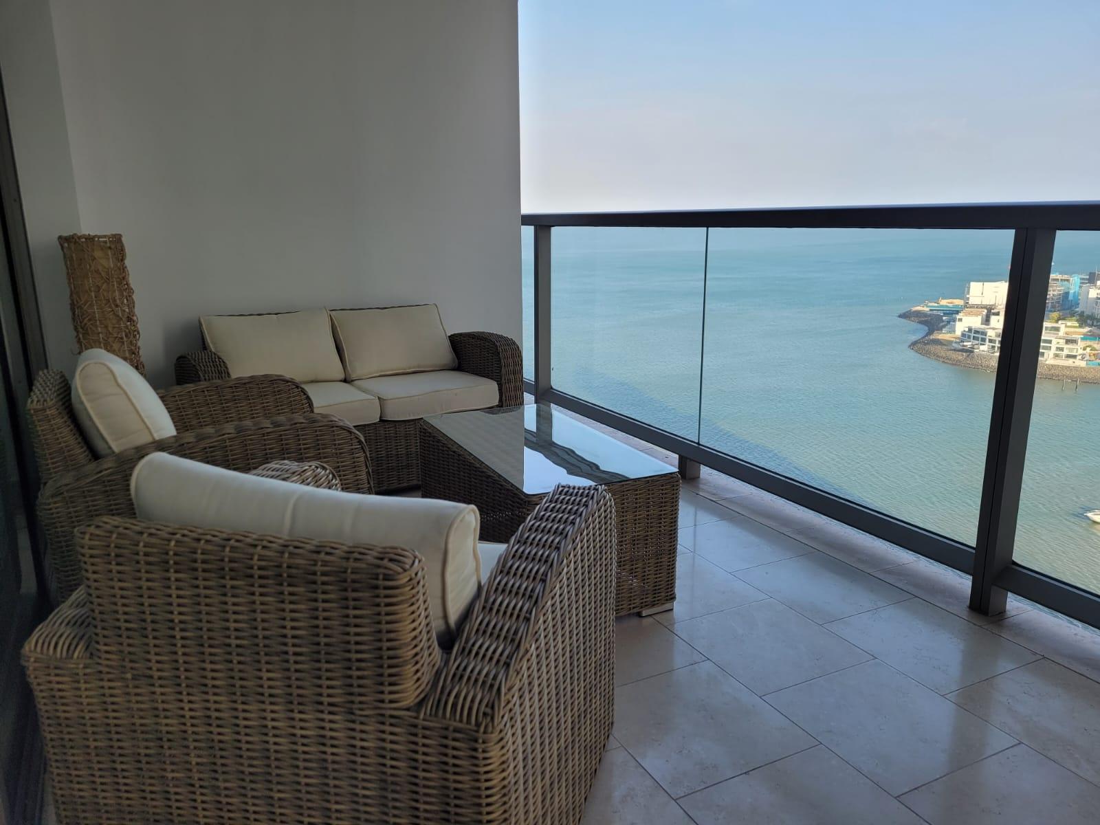 Exclusive apartment for sale in the prestigious TOC Tower. Enjoy panoramic ocean and city views from the 22nd floor of this luxurious home. With top-of-the-line finishes, including elegant marble floors, this fully furnished apartment is ready for you to move in. Highlights: Two spacious bedrooms and two and a half bathrooms. Spacious terrace to enjoy the breathtaking views. One parking space and a storage/trunk. Central air conditioning for your comfort. Complete appliances included. Additional Details: Prime location in the coveted TOC Tower
