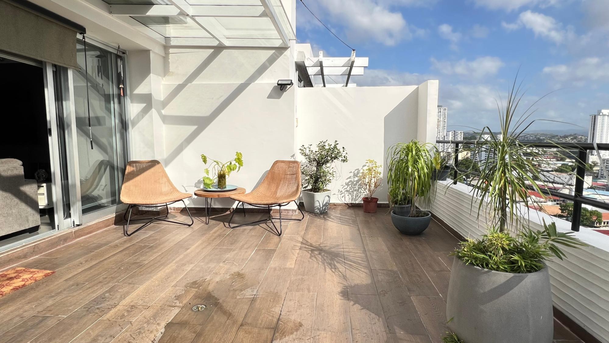 Enjoy the sunrise every day from the terrace of this apartment. Charming 194 m2 apartment available for sale in the prestigious area of San Francisco, Altos del Golf, located in the beautiful city of Panama. This property has 3 spacious and bright bedrooms and 4 full bathrooms, perfectly distributed. Without a doubt, an excellent opportunity to acquire a cozy and comfortable space for you and your family. Altos del Golf In the center of Panama City, is a residential neighborhood considered one of the best areas of Panama, with luxury homes with large gardens and a row of high-end buildings, adjacent to Omar Park. Close to avenues such as Vía Porras, Vía España, Cincuentenario, and with easy access to the Corredor Sur or Puente Centenario to the interior of the country. It belongs to the district of San Francisco, which has restaurants, a mall, supermarkets, banks, schools, etc. Omar Park: A former grassy golf course with scattered trees and shrubs, it boasts 55 hectares of green space The building features: A direct entrance to Omar Park. A swimming pool. A gym. A BBQ area. A children's play area. A solarium. 24-hour security. Direct exit into Omar Park Water reserve tank Power plant Visitor parking WiFi in social area GROUND FLOOR APARTMENT Living - Dining Room Kitchen with pantry Laundry Den (can be converted into a maid's quarters) Large Terrace Full Bathroom UPSTAIRS 3 Bedrooms 3 Bathrooms Balcony Storage 2 Ample Parking Spaces Complete Appliances Air Conditioning Curtains Beautiful View of the Park and the Ocean