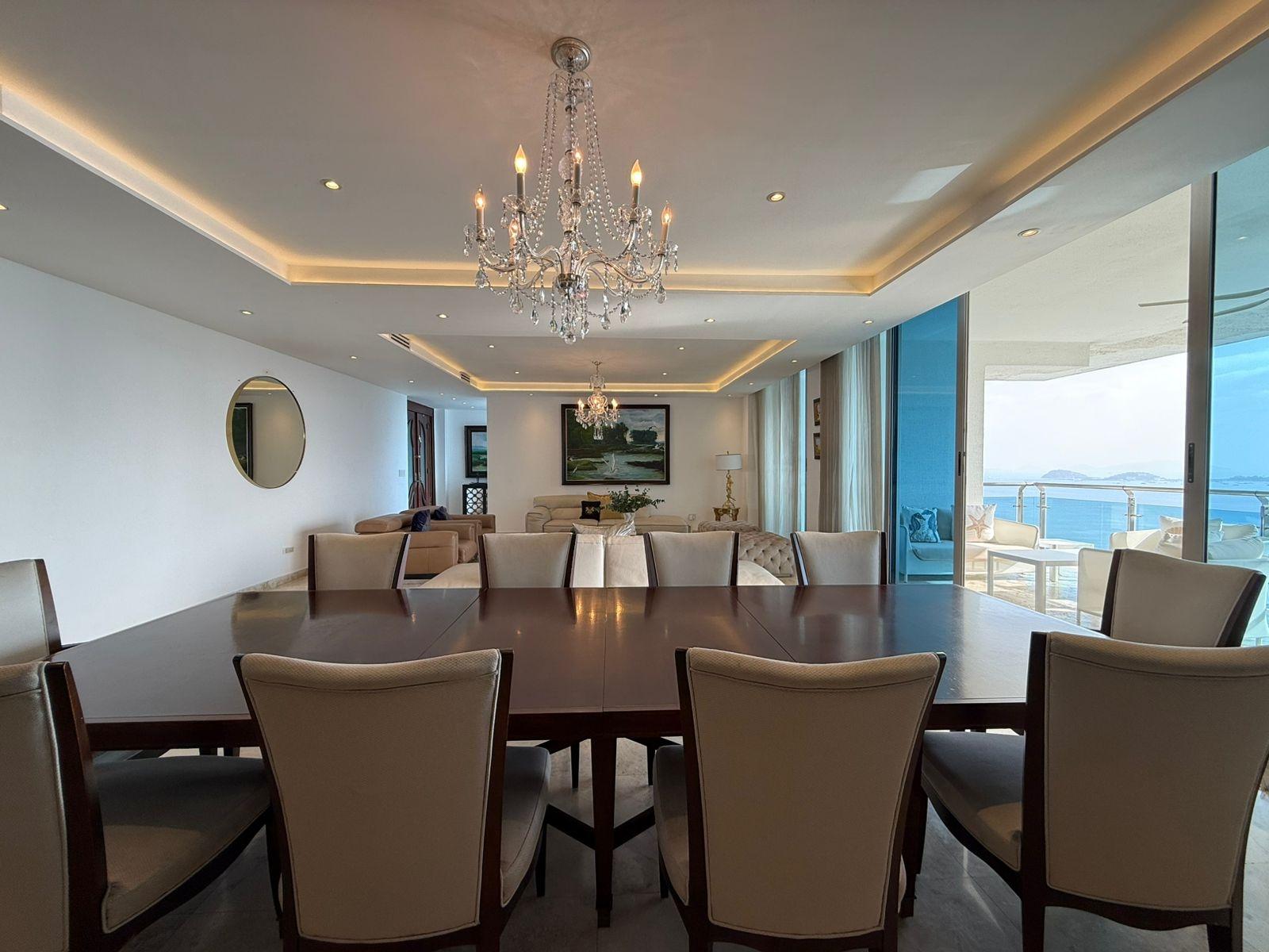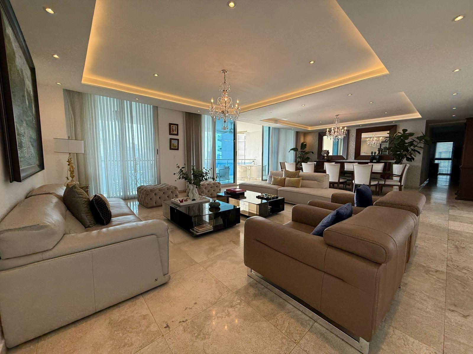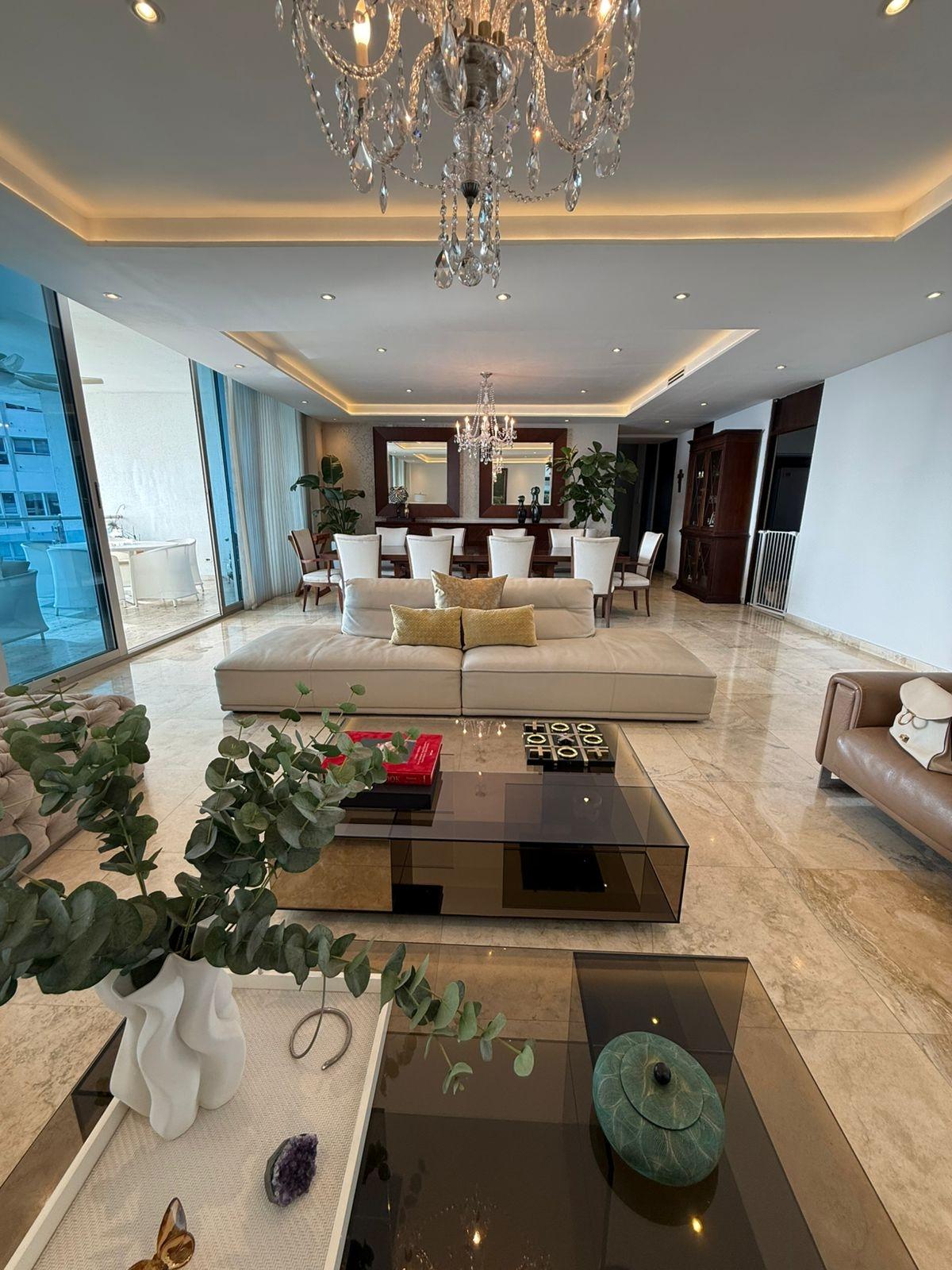 Located on a high floor, this elegant 408 m² apartment offers absolute privacy with one residence per level and spectacular panoramic ocean views from all its main spaces. The property boasts a spacious and functional layout: four bedrooms, each with its own bathroom, plus a guest powder room. The master bedroom is distinguished by its size, natural light, and private balcony with direct ocean views, creating an intimate and relaxing atmosphere. The social area is designed for entertaining, with a generously sized living and dining room that opens onto two additional balconies, ideal for contemplating the sea and the city from different perspectives. The kitchen is spacious and functional, complemented by a maid's quarters with a bathroom. It includes four parking spaces and finishes that reflect the standard of a luxury residence in one of the city's most exclusive buildings. A unique property for those seeking spaciousness, privacy, and privileged views in an iconic oceanfront location.
