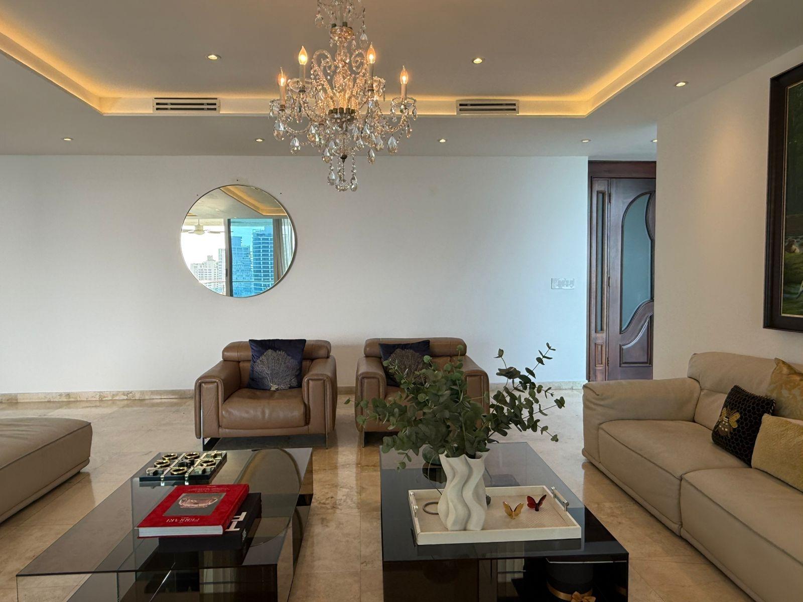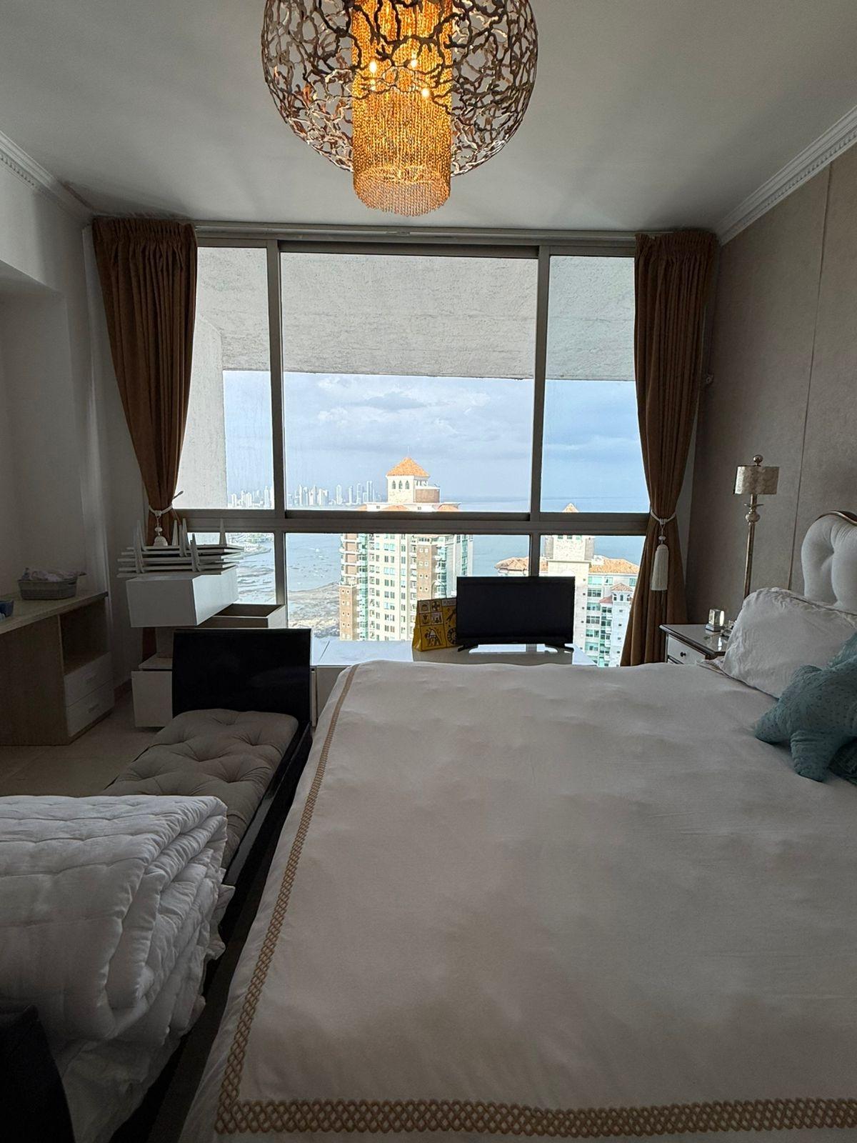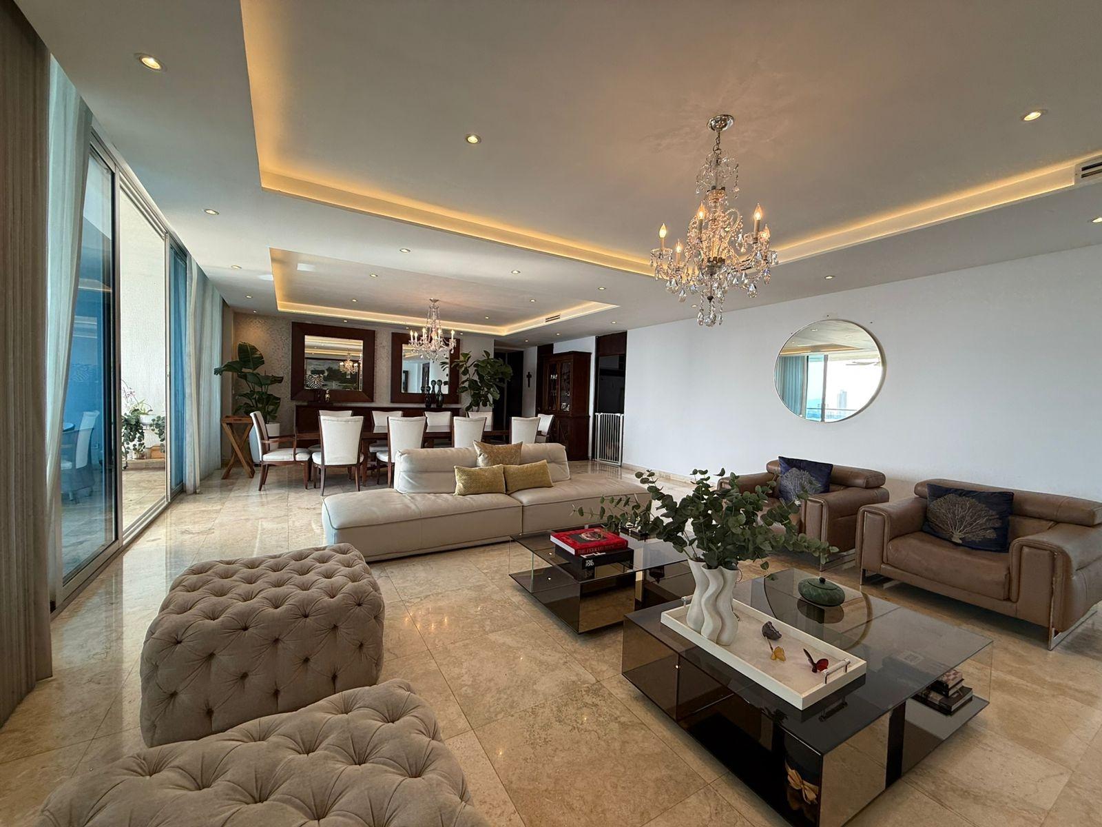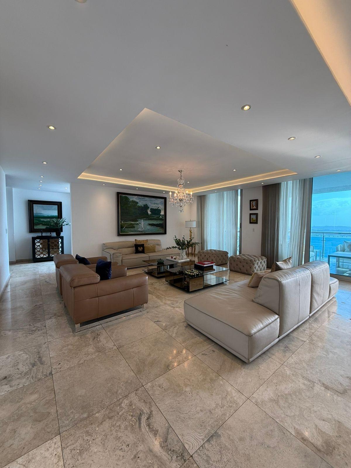 Located on a high floor, this elegant 408 m² apartment offers absolute privacy with one residence per level and spectacular panoramic ocean views from all its main spaces. The property boasts a spacious and functional layout: four bedrooms, each with its own bathroom, plus a guest powder room. The master bedroom is distinguished by its size, natural light, and private balcony with direct ocean views, creating an intimate and relaxing atmosphere. The social area is designed for entertaining, with a generously sized living and dining room that opens onto two additional balconies, ideal for contemplating the sea and the city from different perspectives. The kitchen is spacious and functional, complemented by a maid's quarters with a bathroom. It includes four parking spaces and finishes that reflect the standard of a luxury residence in one of the city's most exclusive buildings. A unique property for those seeking spaciousness, privacy, and privileged views in an iconic oceanfront location.
