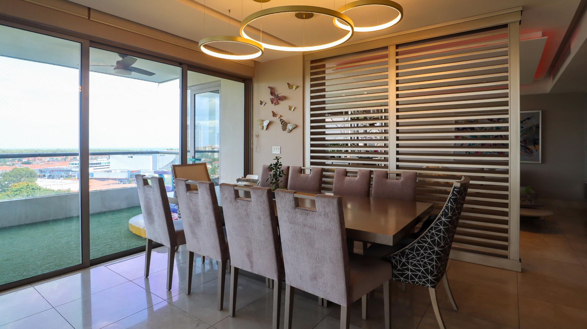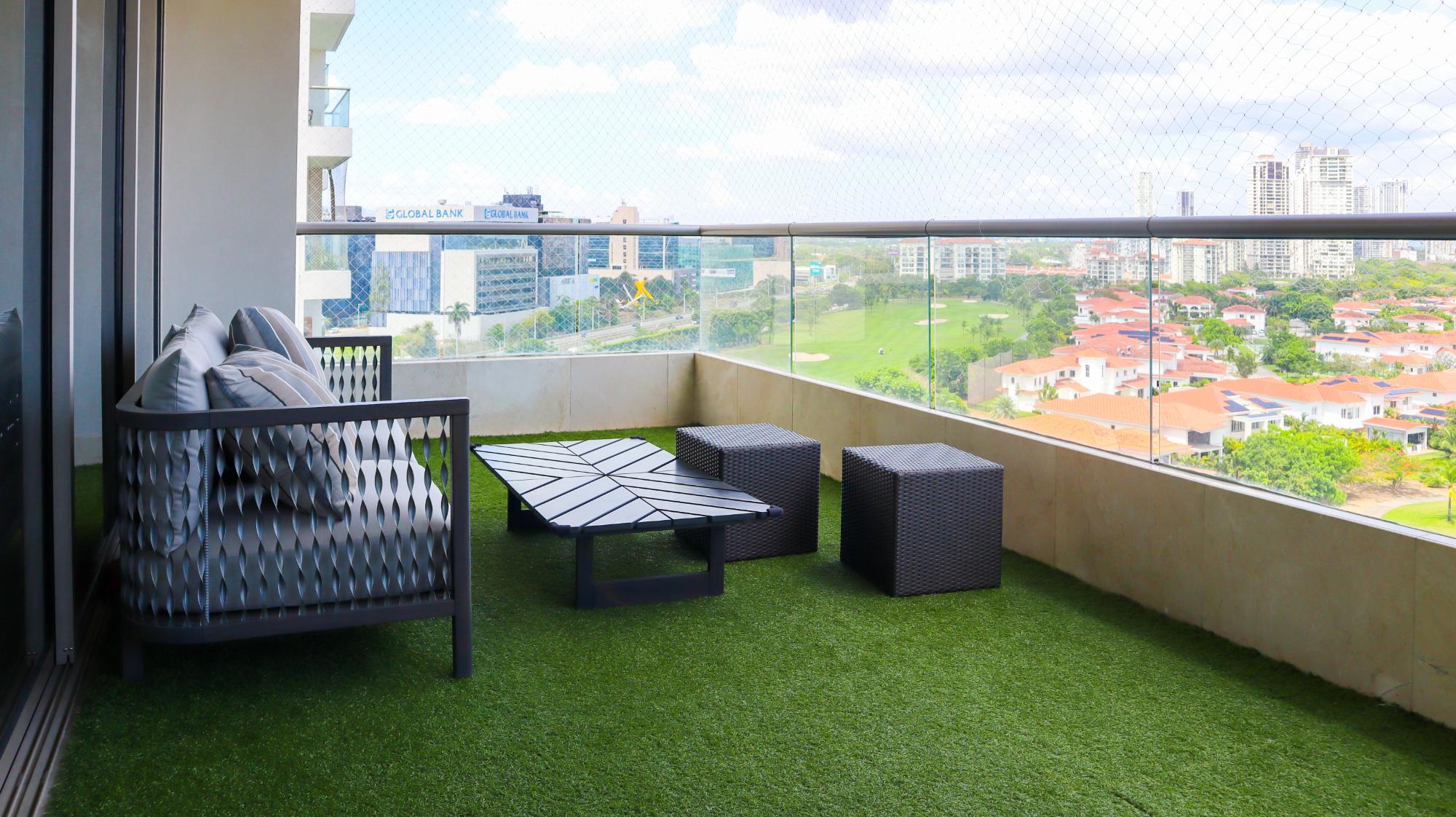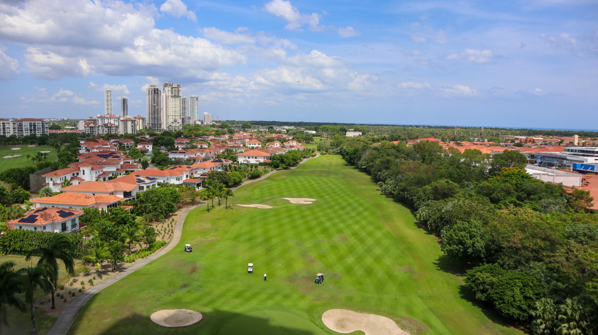 Exclusive apartment in the Greengarden building, of 314 square meters located at Santa María Golf & Country Club, featuring 3 bedrooms, each with its own private bathroom and walk-in closet in the master bedroom, and 3.5 bathrooms, including a half guest bathroom. It offers stunning panoramic views of the golf course, the ocean, and the city. Its layout includes a living-dining room, an Italian-style kitchen with a breakfast bar, a den, a family room, a terrace, a laundry area, and a service bedroom and bathroom. Its finishes include marble floors, imported wooden doors, and double-pane windows. The building offers amenities such as a swimming pool, a gym, a party room, children's play areas, a soccer field, large green areas, 24/7 security, a power generator, and a backup water tank. It also has 3 parking spaces, a storage room, and extras such as air conditioners, appliances, roller blinds, and blackout shades in all bedrooms. This apartment combines luxury, comfort, and a prime location in one of Panama's most exclusive communities.