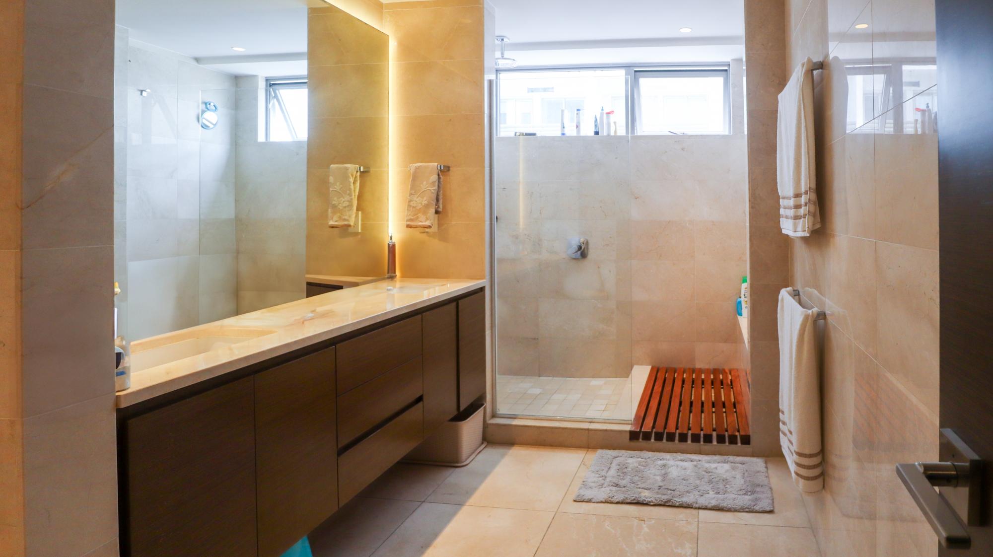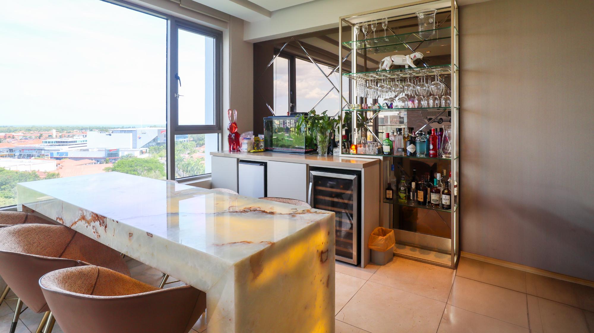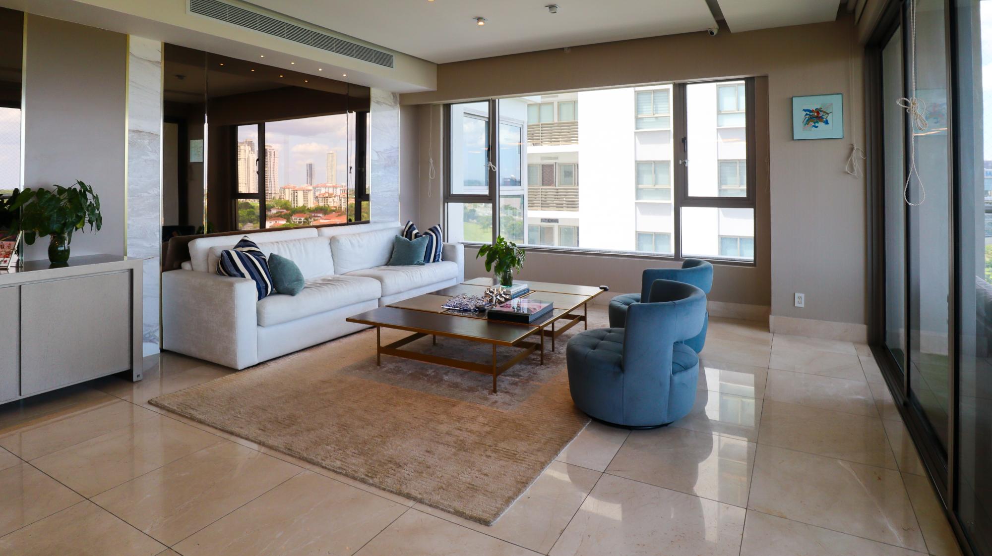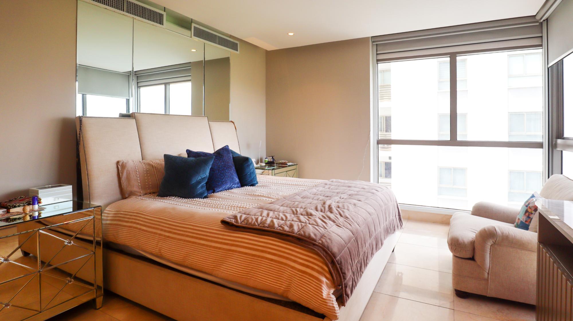 Exclusive apartment in the Greengarden building, of 314 square meters located at Santa María Golf & Country Club, featuring 3 bedrooms, each with its own private bathroom and walk-in closet in the master bedroom, and 3.5 bathrooms, including a half guest bathroom. It offers stunning panoramic views of the golf course, the ocean, and the city. Its layout includes a living-dining room, an Italian-style kitchen with a breakfast bar, a den, a family room, a terrace, a laundry area, and a service bedroom and bathroom. Its finishes include marble floors, imported wooden doors, and double-pane windows. The building offers amenities such as a swimming pool, a gym, a party room, children's play areas, a soccer field, large green areas, 24/7 security, a power generator, and a backup water tank. It also has 3 parking spaces, a storage room, and extras such as air conditioners, appliances, roller blinds, and blackout shades in all bedrooms. This apartment combines luxury, comfort, and a prime location in one of Panama's most exclusive communities.