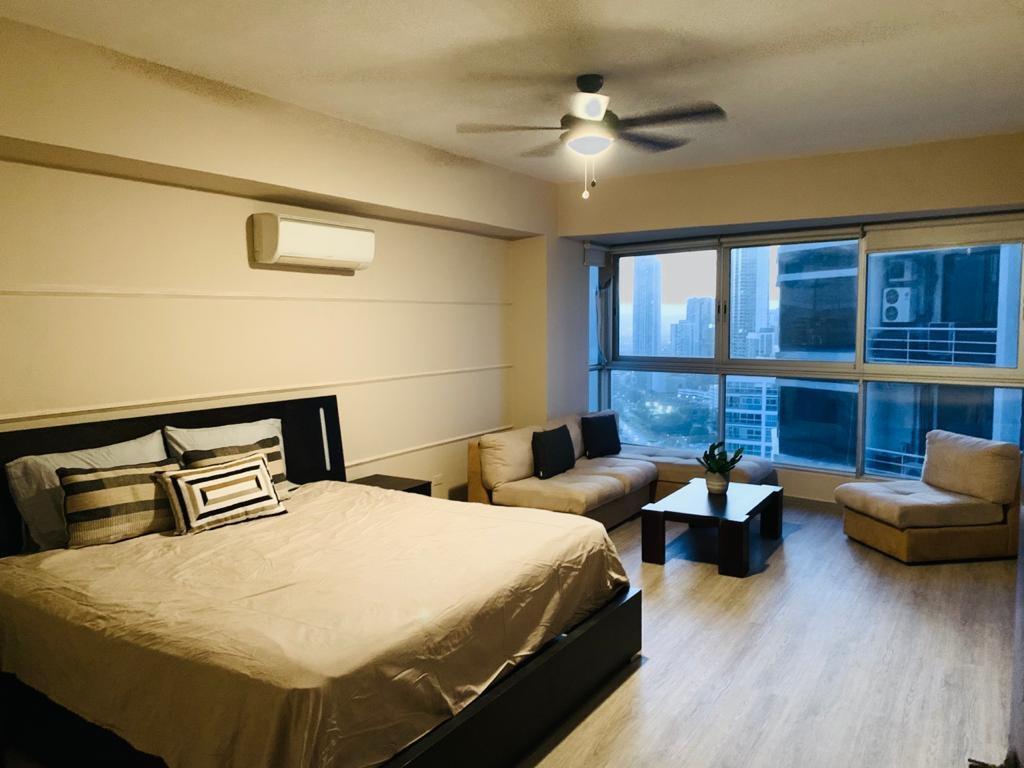 Beautiful apartment for sale on Avenida Balboa, with stunning city views and a prime location. Modern and beautifully remodeled by a professional decorator to the highest standards. The unit features: 138 m2, the largest model in Grandbay Tower; 1 bedroom with walk-in closet; 1.5 bathrooms; spacious living and dining area with floor-to-ceiling windows and spectacular views of Panama City; modern open kitchen; and 1 parking space. Just steps from shopping centers, pharmacies, laundromats, banks, and across from the Cinta Costera (coastal strip), among other amenities. The building boasts a complete social area including a large gym, rooftop pool (with majestic bay views), entertainment room, and party room; plus Wi-Fi in common areas.
