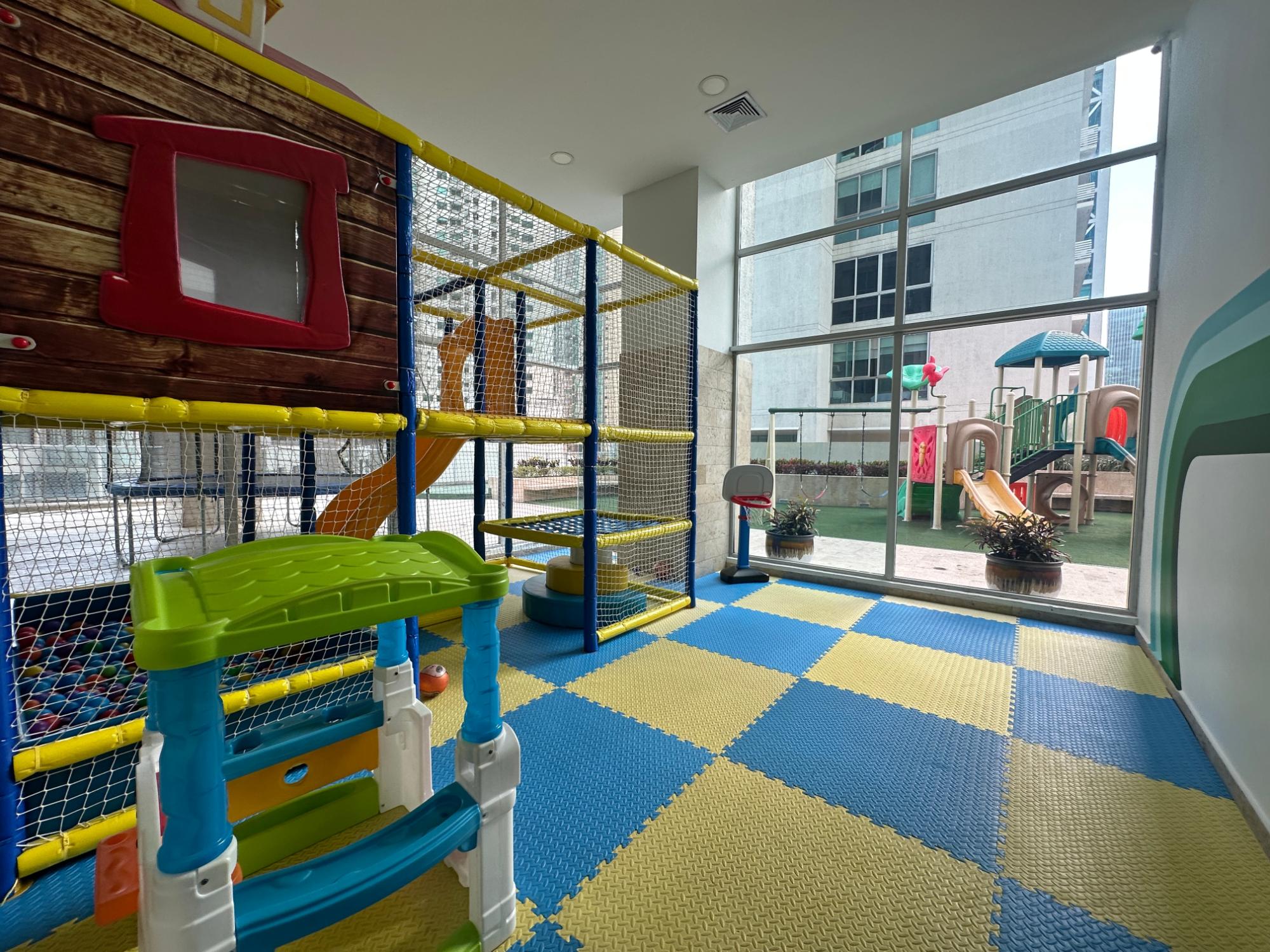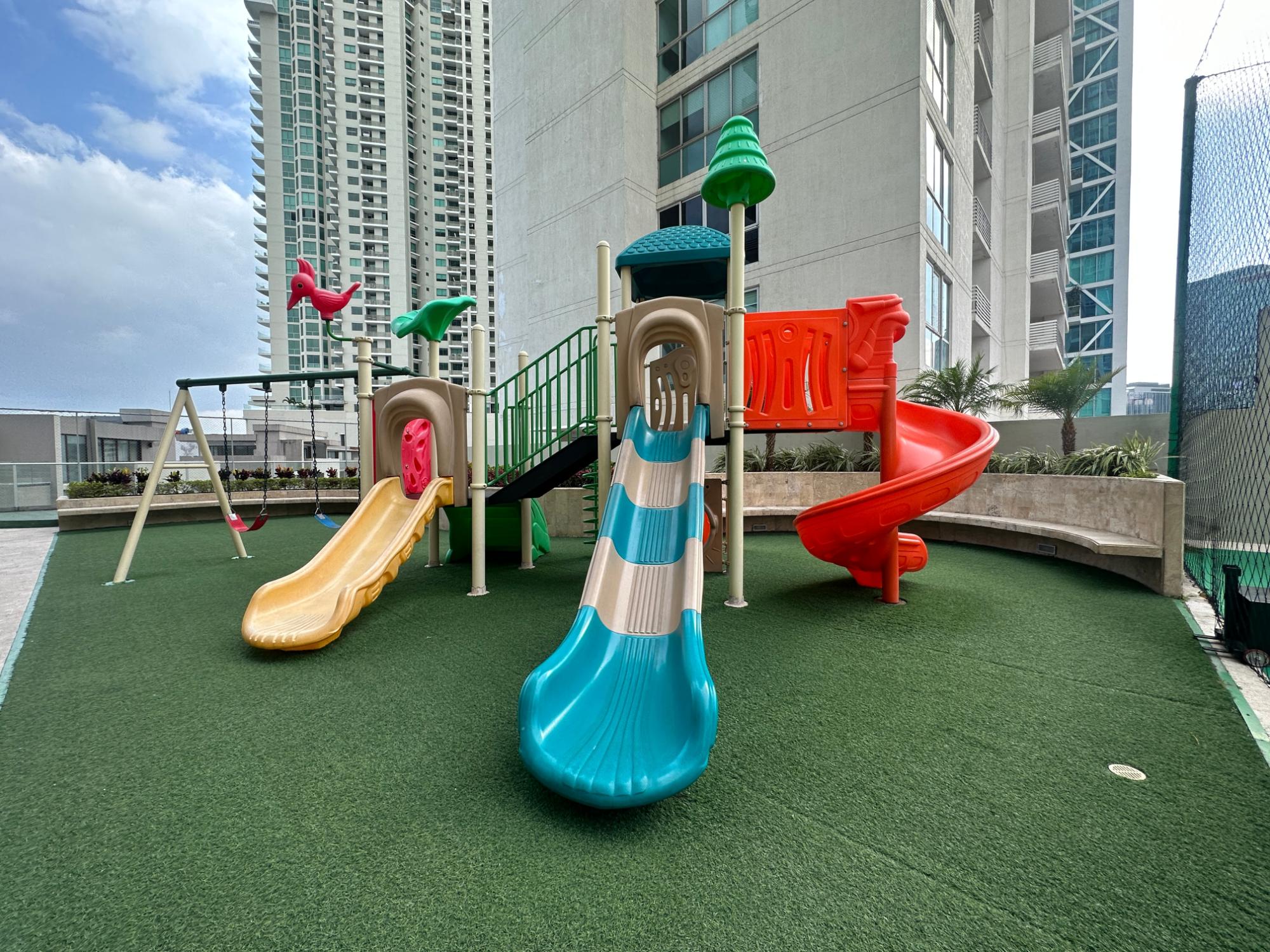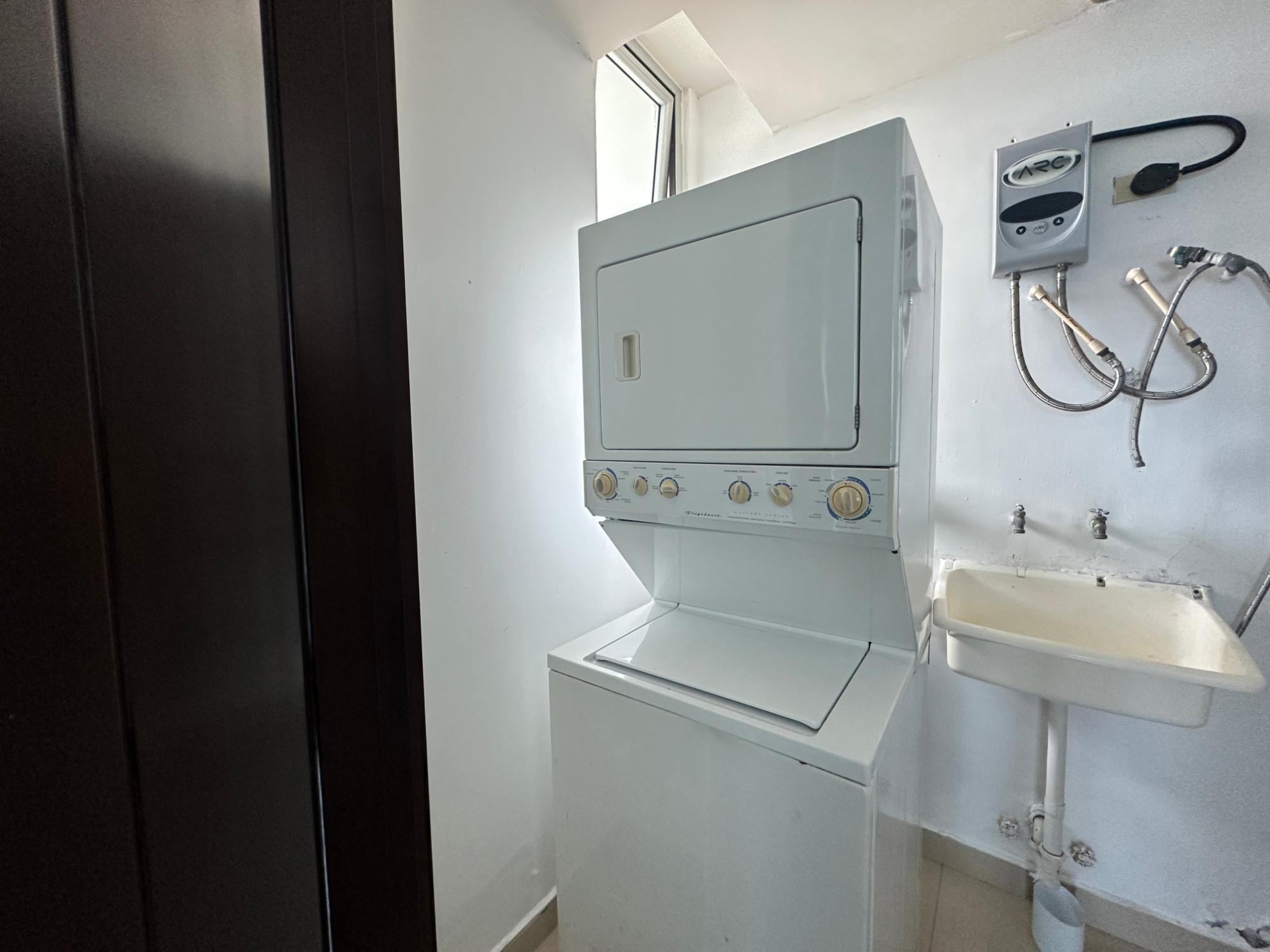 -115 m2 of construction -Balcony with beautiful city views -1 bedroom with ensuite bathroom and walk-in closet -Half bathroom for guests -Spacious living and dining room -Includes all light fixtures, appliances, curtains, and central air conditioning. -Integrated kitchen with convenient countertop and dishwasher -Enclosed laundry area -Central AC -Stove, refrigerator, washer, dryer, dishwasher, and water heater -1 covered parking space -High floor -Maintenance fee: $200 -Modern finishes and excellent social area for children and adults. Located in PH Oceanaire Punta Pacífica, a social area with: -event room, -children's playground and playroom, -sauna, -squash court, -gym, -swimming pool, -dog park. 24/7 security. Very central location, with plazas, shops, restaurants, and supermarkets nearby. Sale price: $235,000 (negotiable) or rent for $1,300 when the tenant vacates in April 2026.
