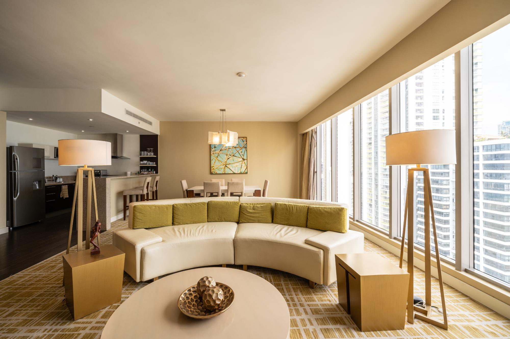 The apartment is located on the 30th floor with views of the city. Living room, 1 bedroom, 1 bathroom, central air and laundry. The building has amenities such as restaurants, bars, a spa, swimming pool, and an excellent location, close to shopping centers, hospitals, Cinta Costera, and Casco Viejo. Tocumen International Airport is a 20-minute drive away.