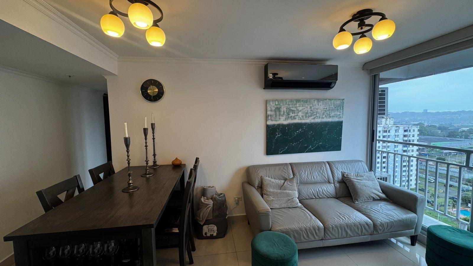 Live in comfort, style, and with excellent connectivity at PH Los Pueblos Towers, a private residential complex distinguished by its modern design and prime location. This fully furnished apartment is available for rent at $850, ideal for those seeking a hassle-free move and a move-in ready space. Apartment Layout: 2 bedrooms, 2 full bathrooms, living and dining room, kitchen, separate laundry area, balcony with panoramic city views. Building Amenities: Swimming pool and jacuzzi, fully equipped gym, rooftop terrace with stunning views, event room and multipurpose areas, coworking space, BBQ area, multipurpose sports court, bicycle and motorcycle parking. Strategic Location: Steps from Metro Line 2 and Metro Bus, close access to supermarkets, pharmacies, shopping centers, and more. Quiet area, ideal for relaxing without being far from the essentials.