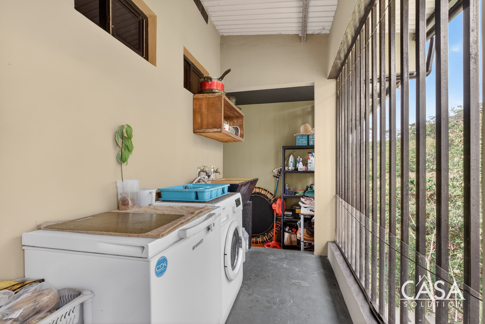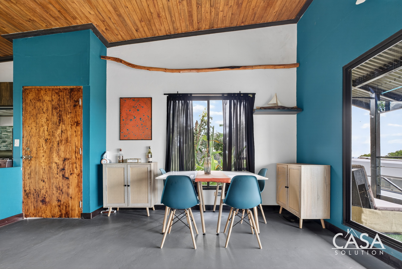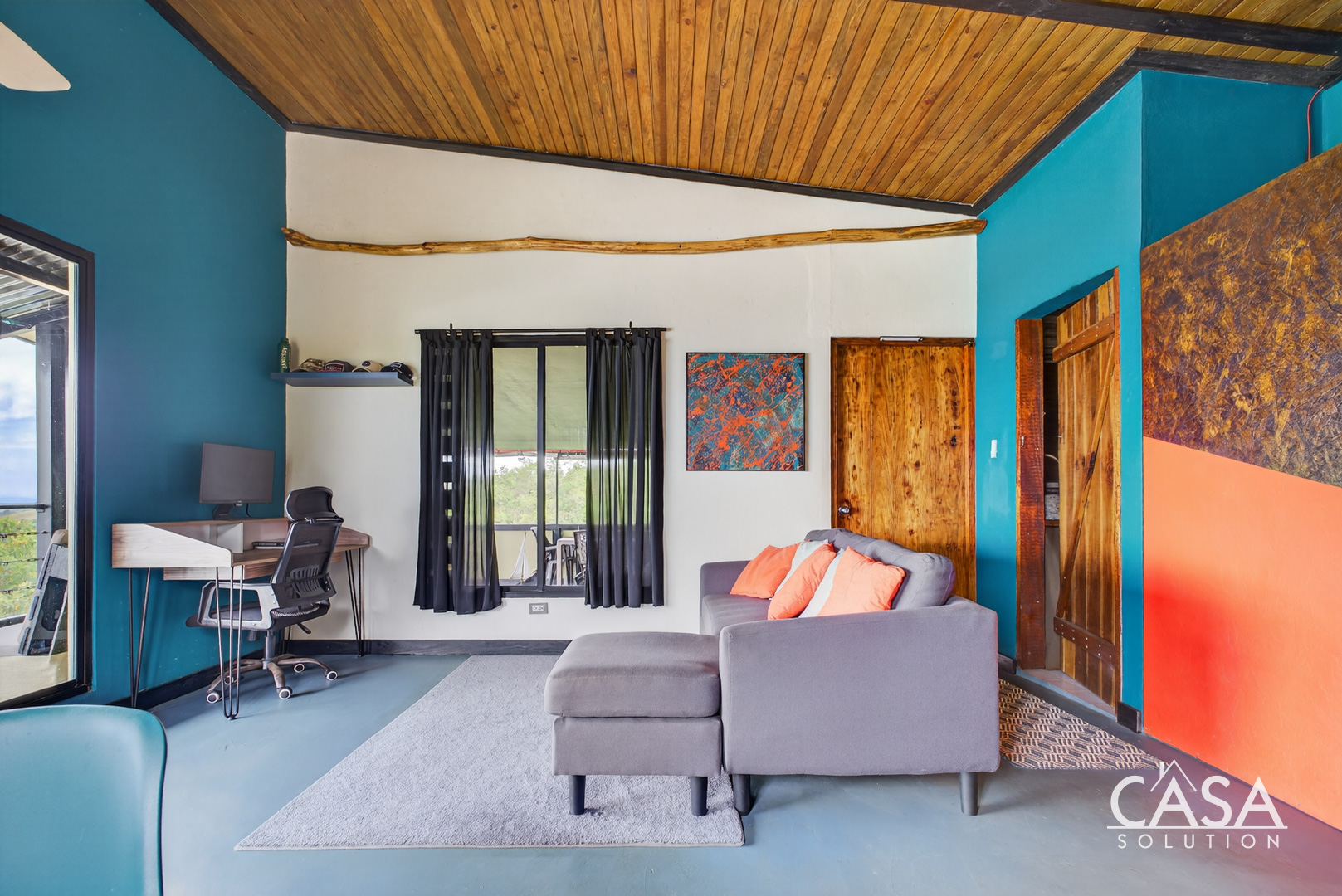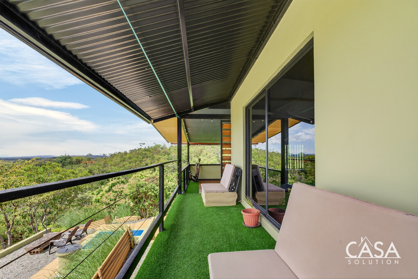 The home was designed with open spaces and practical living in mind. The main level centers around a spacious covered terrace that frames sweeping ocean views. This terrace naturally becomes the main living area - ideal for dining, relaxing in a hammock, or simply watching the Pacific change colors at sunset.