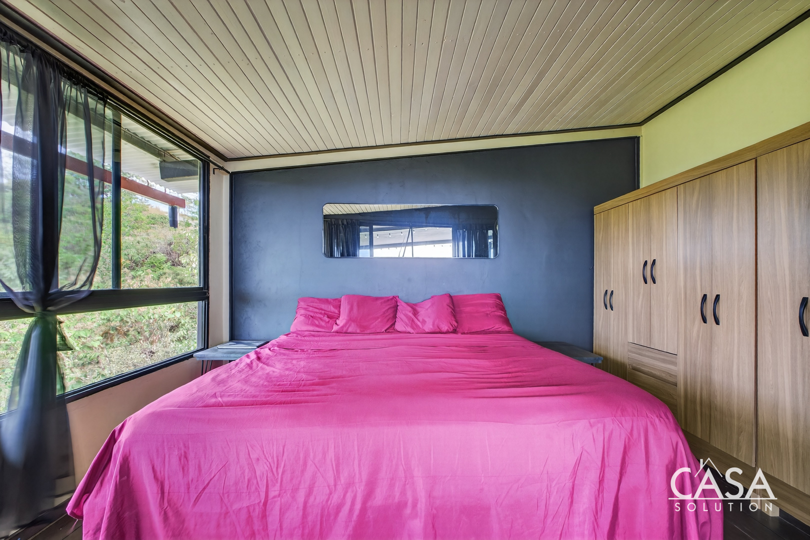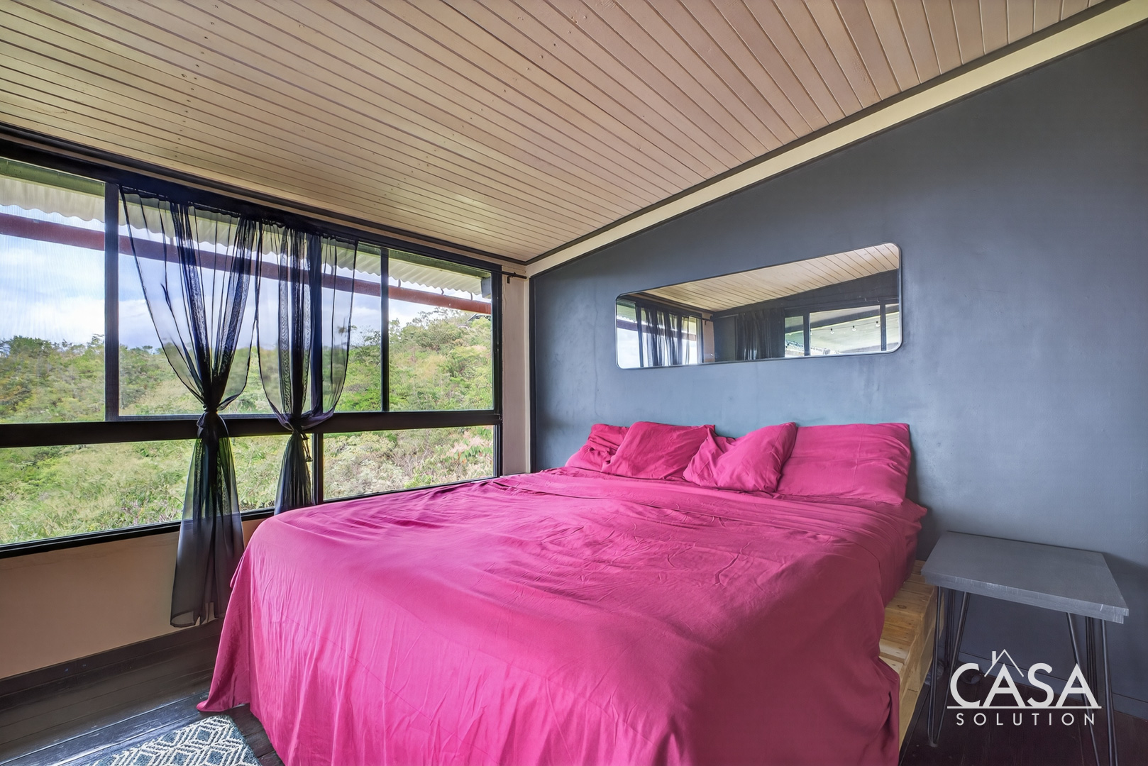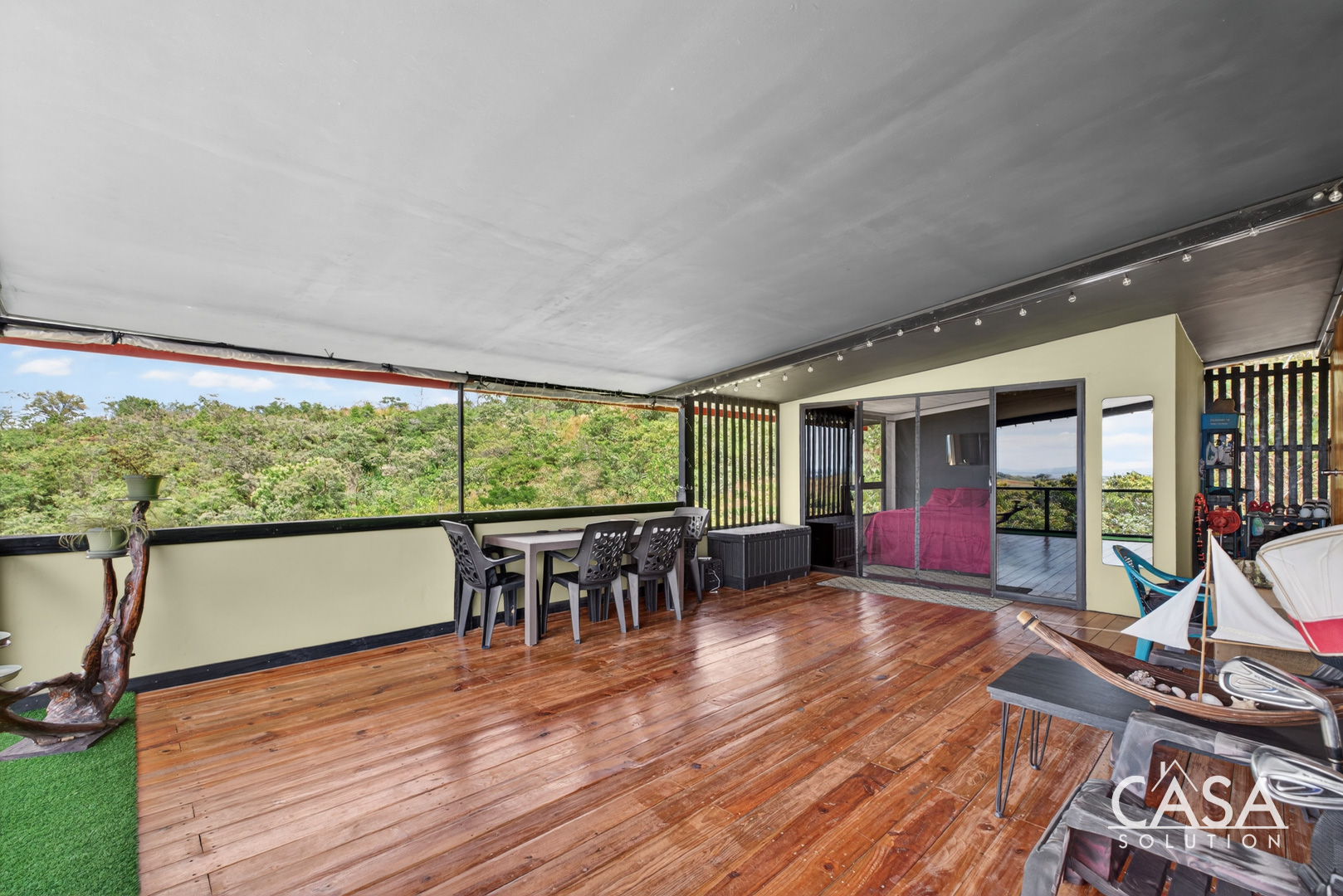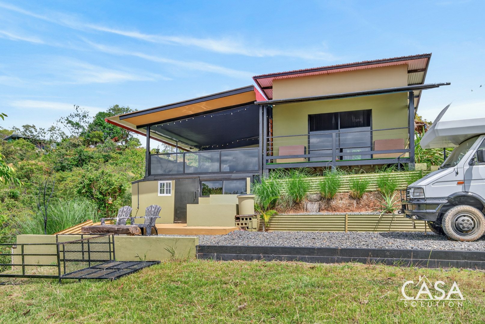 The setting feels open and private, surrounded by forest, fruit trees, and natural vegetation. From this elevation, you experience constant airflow and noticeably fewer insects compared to properties at sea level. Even though the beach is only about three to four minutes away, the temperature here remains pleasant throughout the day and evening.