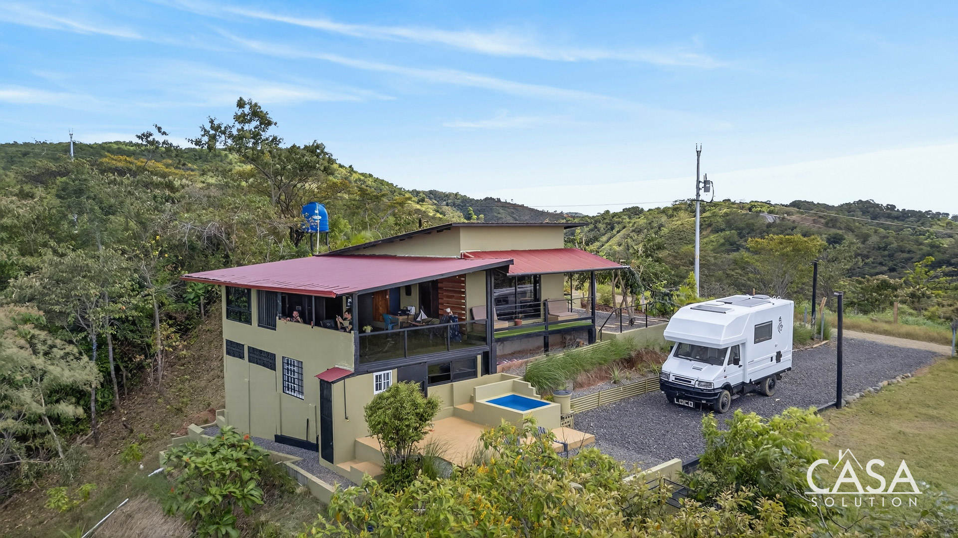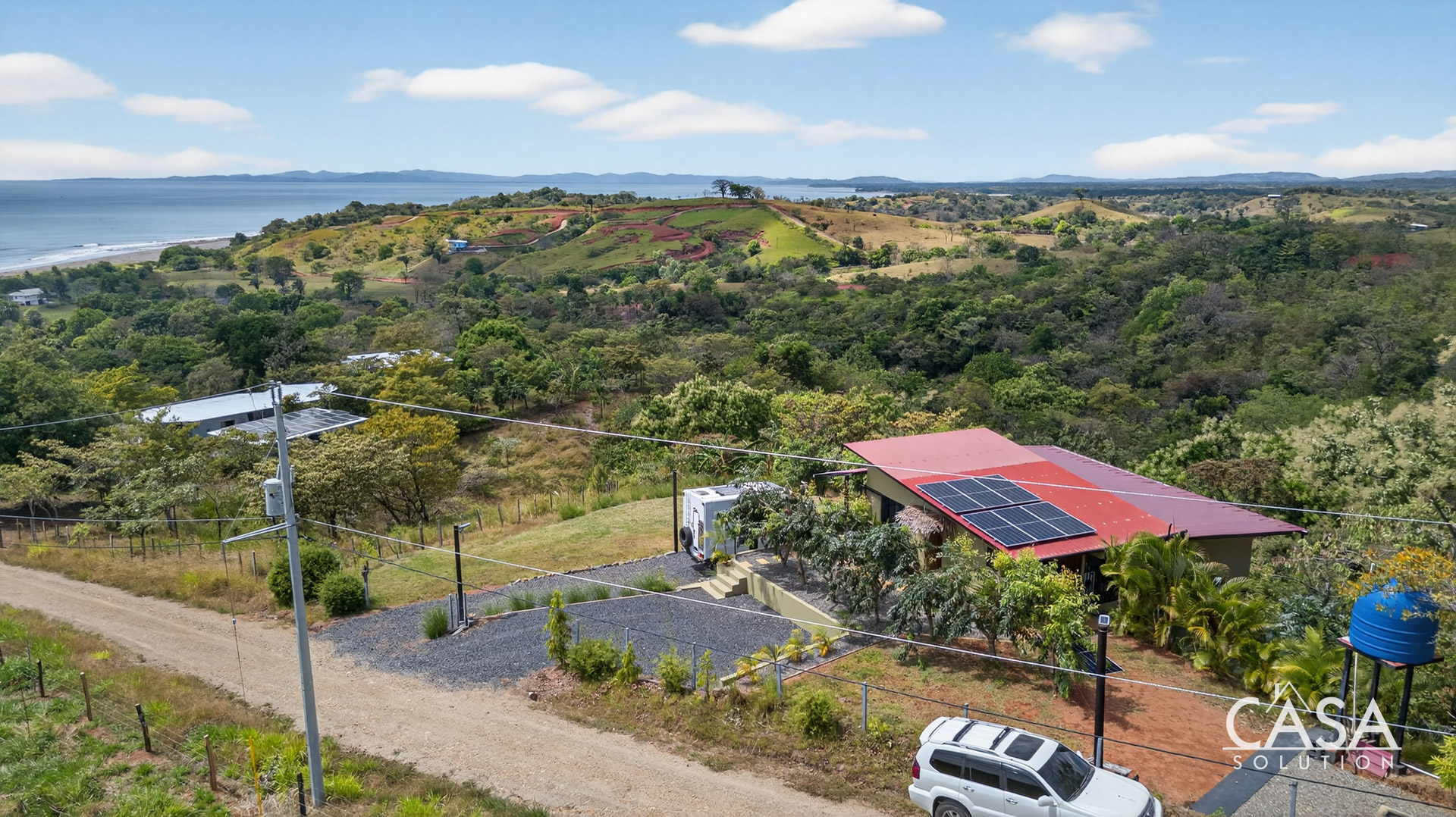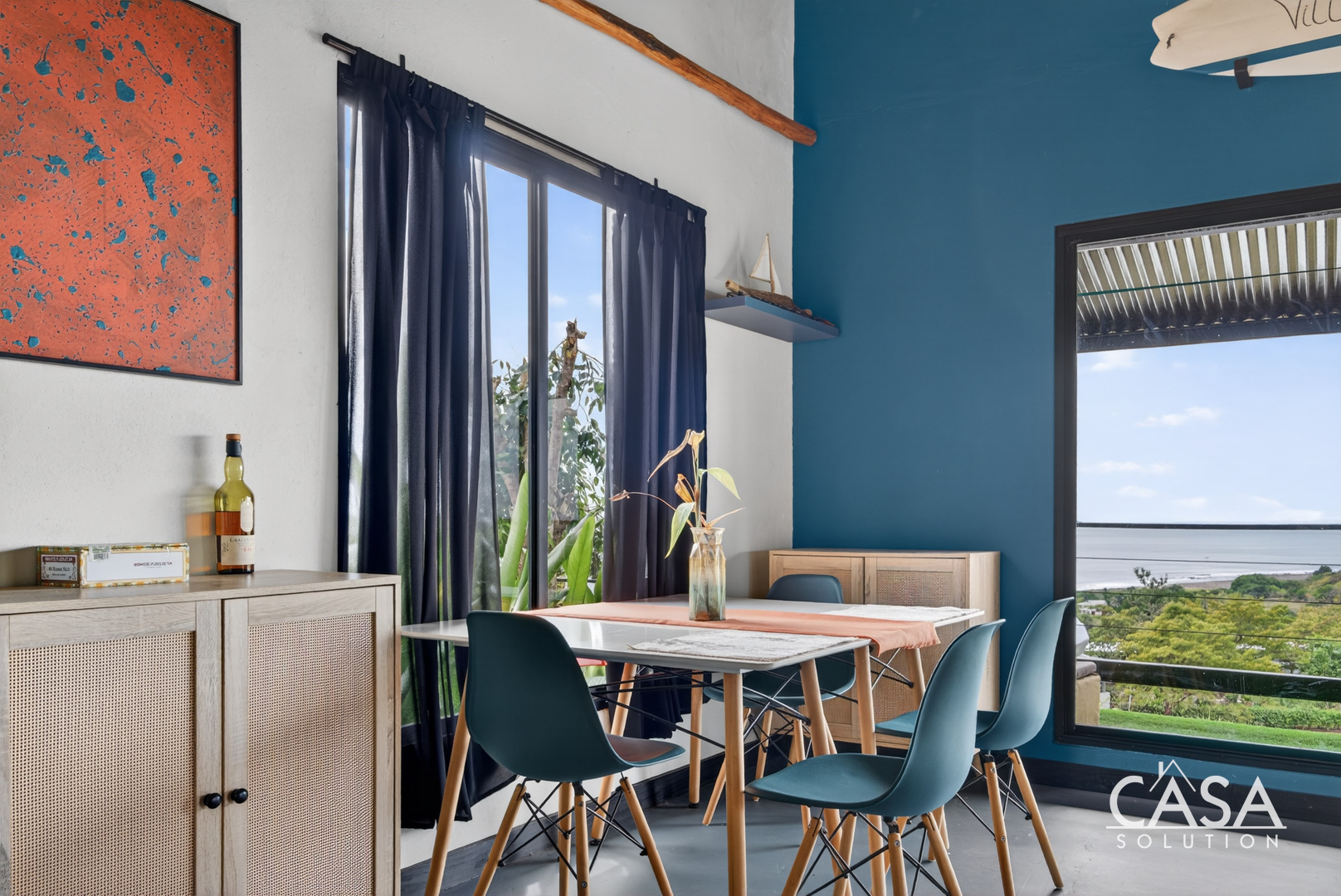 Located in the hillside community of Altos de Malena, this architect-designed home offers elevated Pacific Ocean views, steady breezes, and a comfortable year-round climate just minutes from the beach. The property sits on a 1,571 m2 lot with approximately 150 m2 of construction, positioned to capture west-facing sunsets over the ocean.