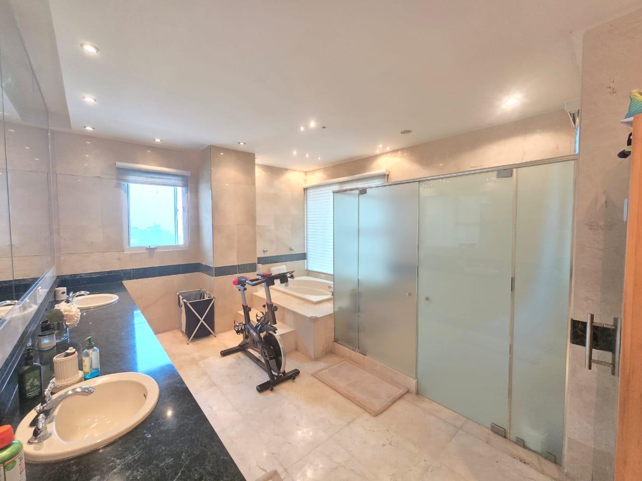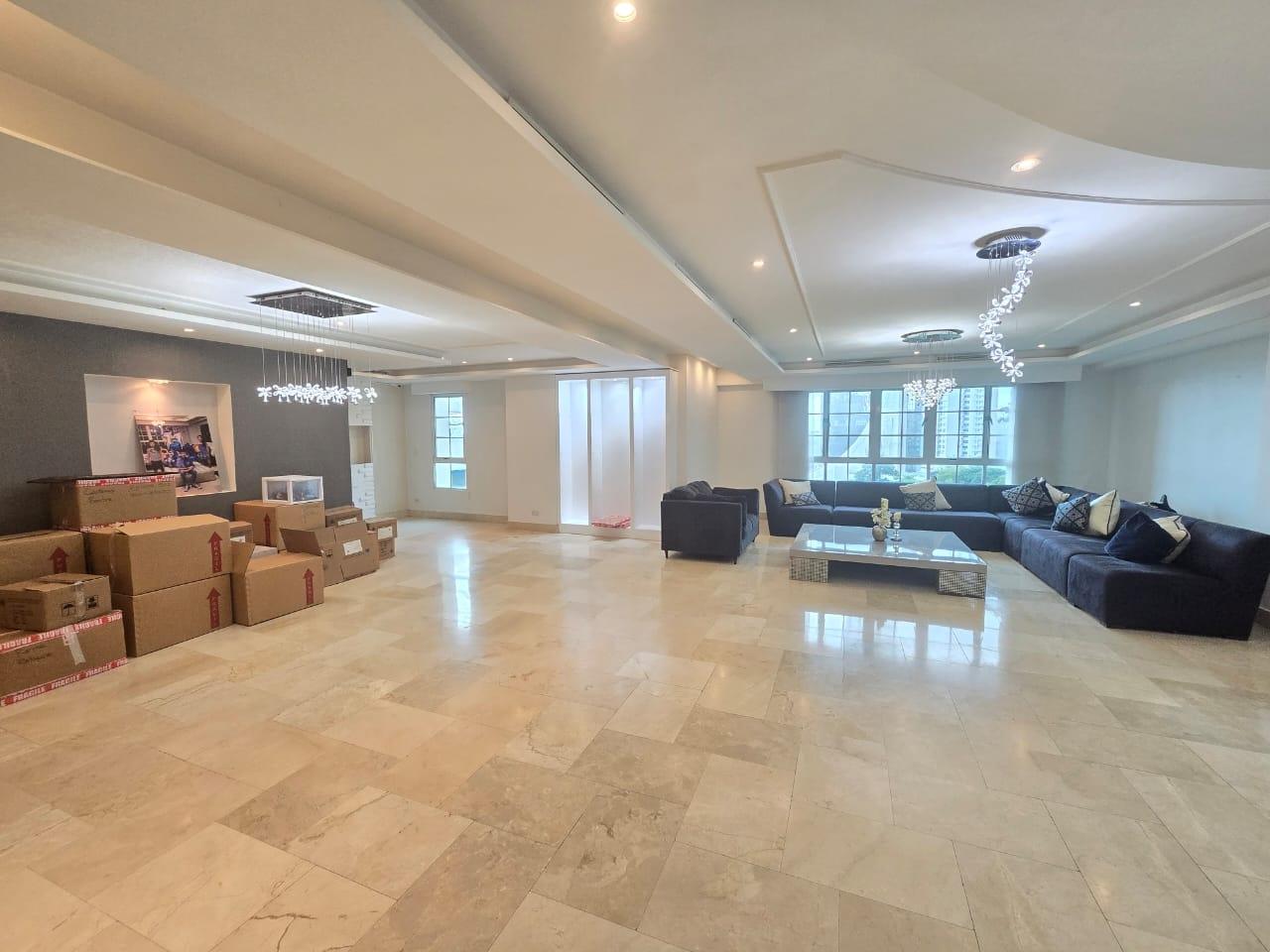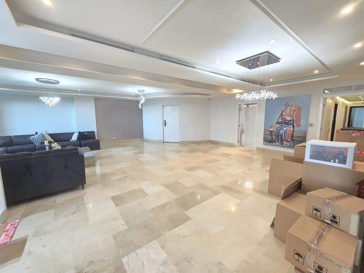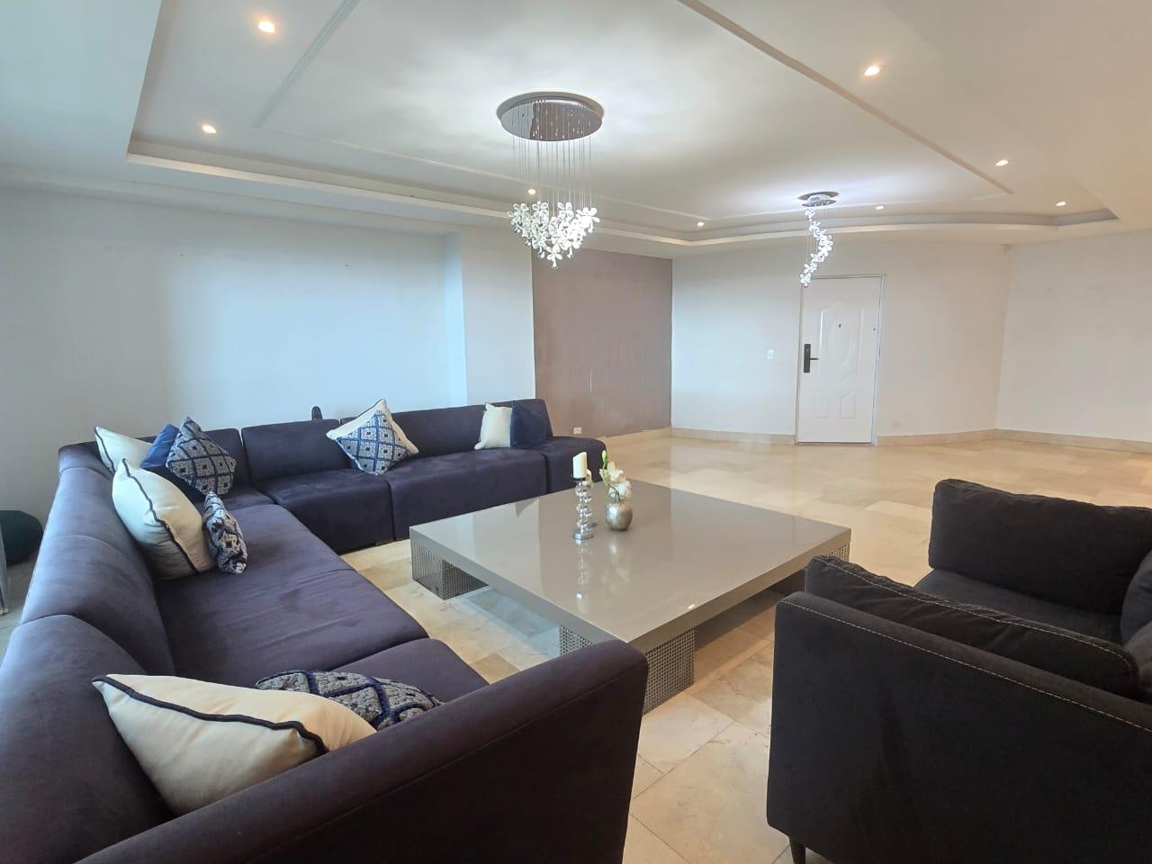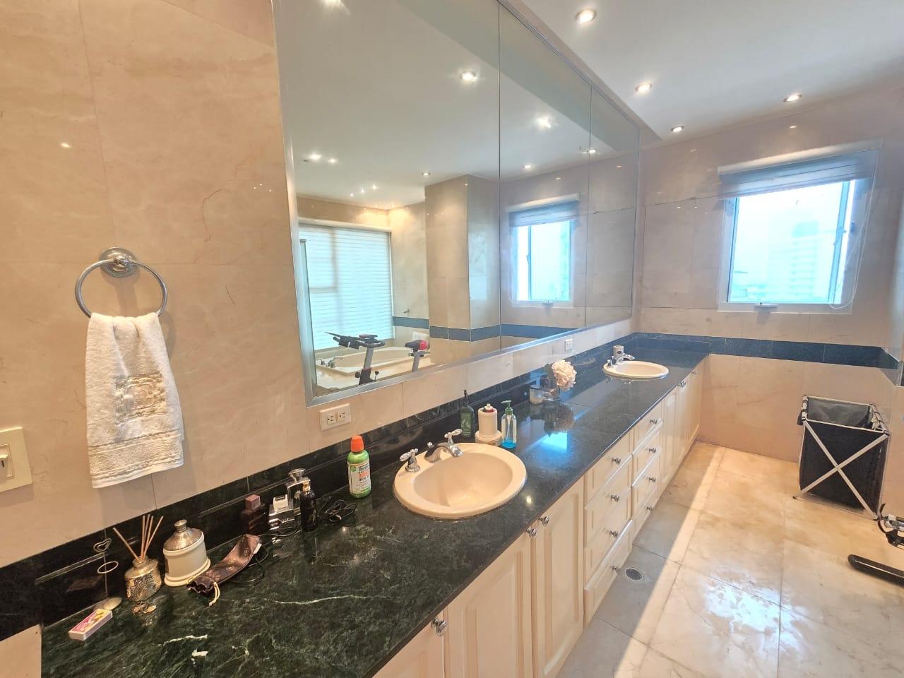 Spectacular apartment located in Bella Vista, across from Urracá Park, with a wonderful view of Balboa Avenue and the Cinta Costera (Coastal Strip). The building is well-maintained and offers all amenities. The apartment boasts 356 square meters distributed among 3 beautiful bedrooms, 4 full bathrooms, a study that can be converted into a fourth bedroom, a living room, a dining room, a kitchen with luxury finishes, a maid's quarters with bathroom, a laundry area, and 3 parking spaces. The building features excellent social areas, a swimming pool for adults and children, a fully equipped gym, a children's playroom, and more! Contact us now for more information or to schedule a visit! ID 13368
