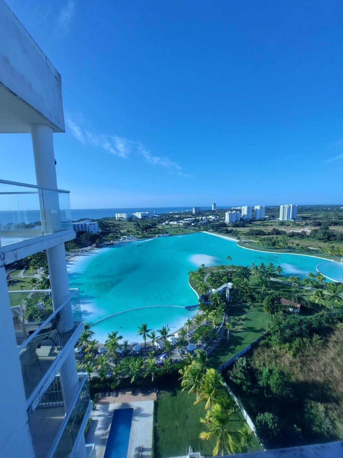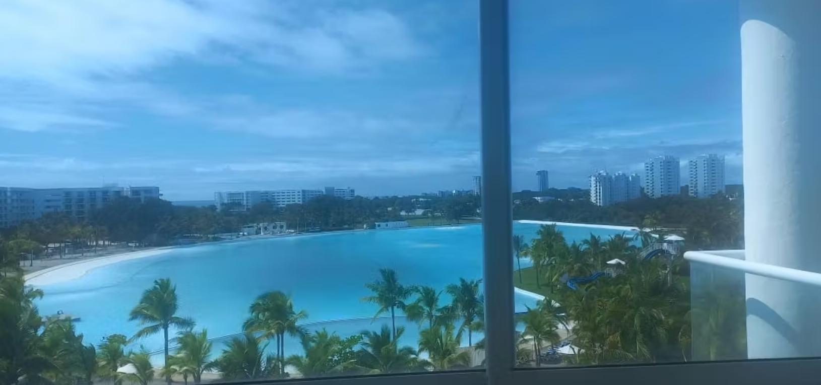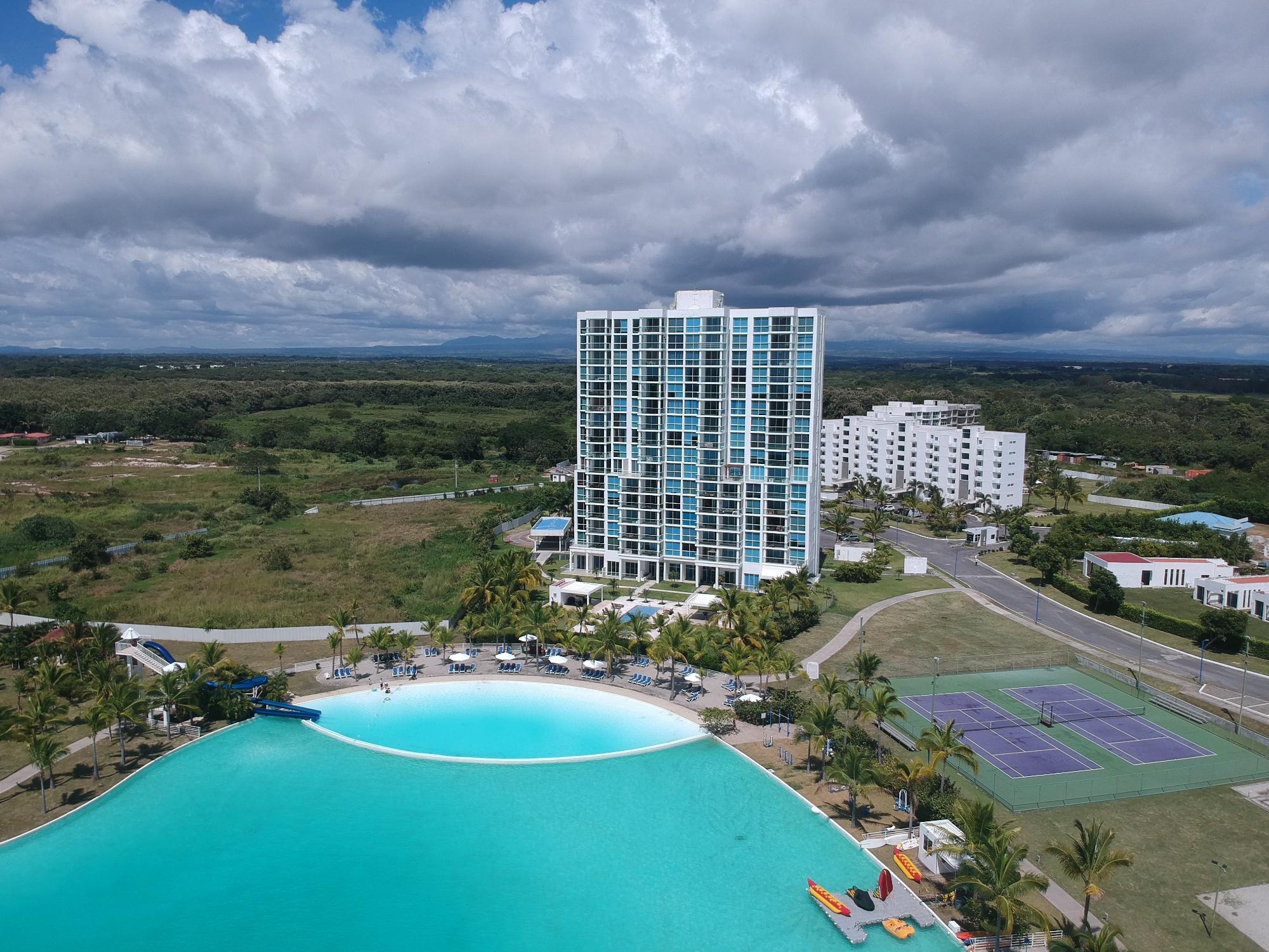 Apartment for sale in Ph Waterways in Playa Blanca, measuring 87.30m2, has 1 bedroom with bathroom, guest bathroom, living room and kitchen, balcony facing the pool, great ocean view, live and enjoy in one of the best beach locations, access to restaurants, supermarket, and beach.