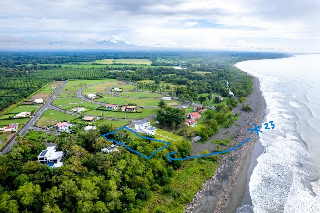Upscale living in a private beach community, with 24 hour security and a mixture of residents from around the world. Just 20 minutes from all amenities in Puerto Armuelles, Panama, including a modern new hospital, banks, hotels, restaurants and shopping. This large 1/2 acre beachfront lot is priced far below the other comparable lots. The construction of a home over $1 million was just completed next door! Last year there were only 6 homes in the development and now there are 15, with more building going on. Read more about Coco Beach Community at https://visitpuertoarmuelles.com/coco-beach-community-puerto-armuelles-panama . There is tentatively a Clubhouse and a community pool set to open soon, with more amenities and residents moving in. As the development continues to grow, so will the prices! Roads, sidewalks, and several small parks are installed. The HOA fee of $170/month includes maintenance of common areas and 24 hour guard services. There is currently a 3 year timeframe to build, negotiable, and you can choose from one of the plans the developers have or get approval for your own plan and builder. Build your dream beach house in Coco Beach, Puerto Armuelles, Panama!