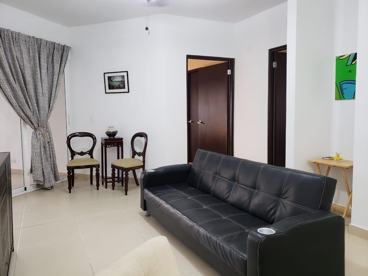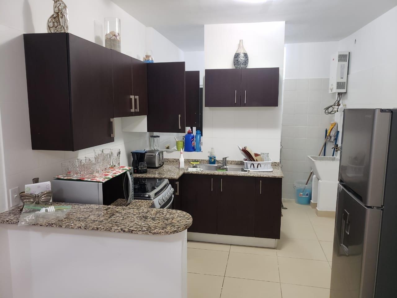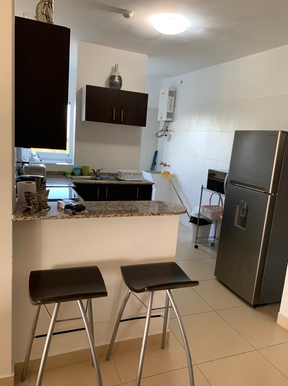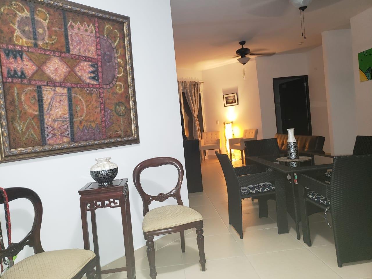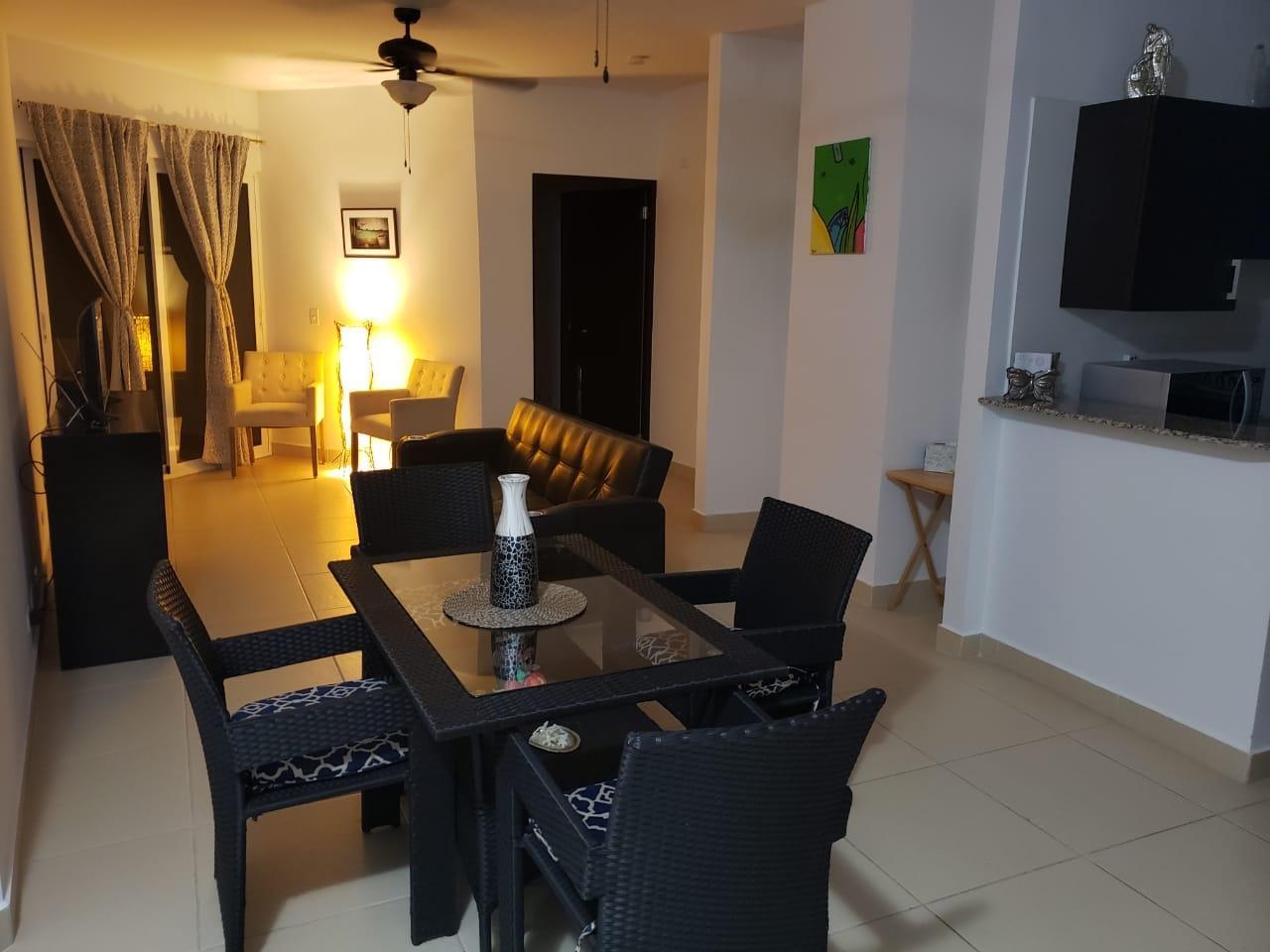 120.3 square meter apartment with living room, dining room, kitchen, laundry room, beautiful balcony, 2 bedrooms, and 2 bathrooms. The master bedroom has an en-suite bathroom and walk-in closet. The walls are made of plastered and painted concrete blocks. The floors are ceramic tile. The windows are sliding aluminum and glass. The kitchen cabinets are MDF with granite countertops. Mul-T-Lock security door. Bathrooms are fully tiled. Property in excellent condition.