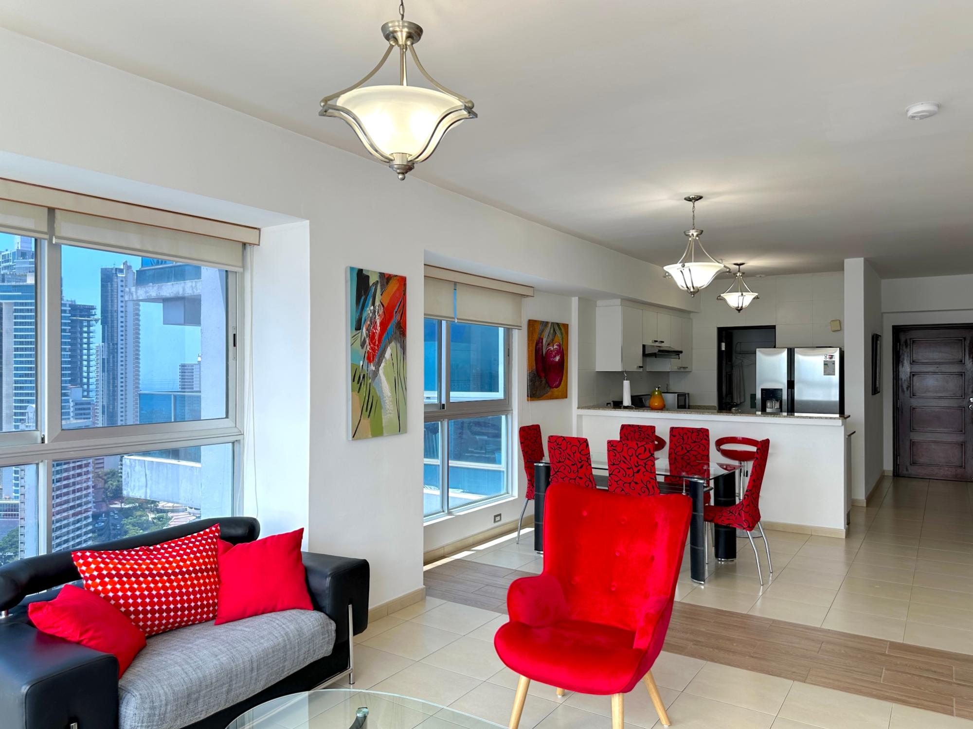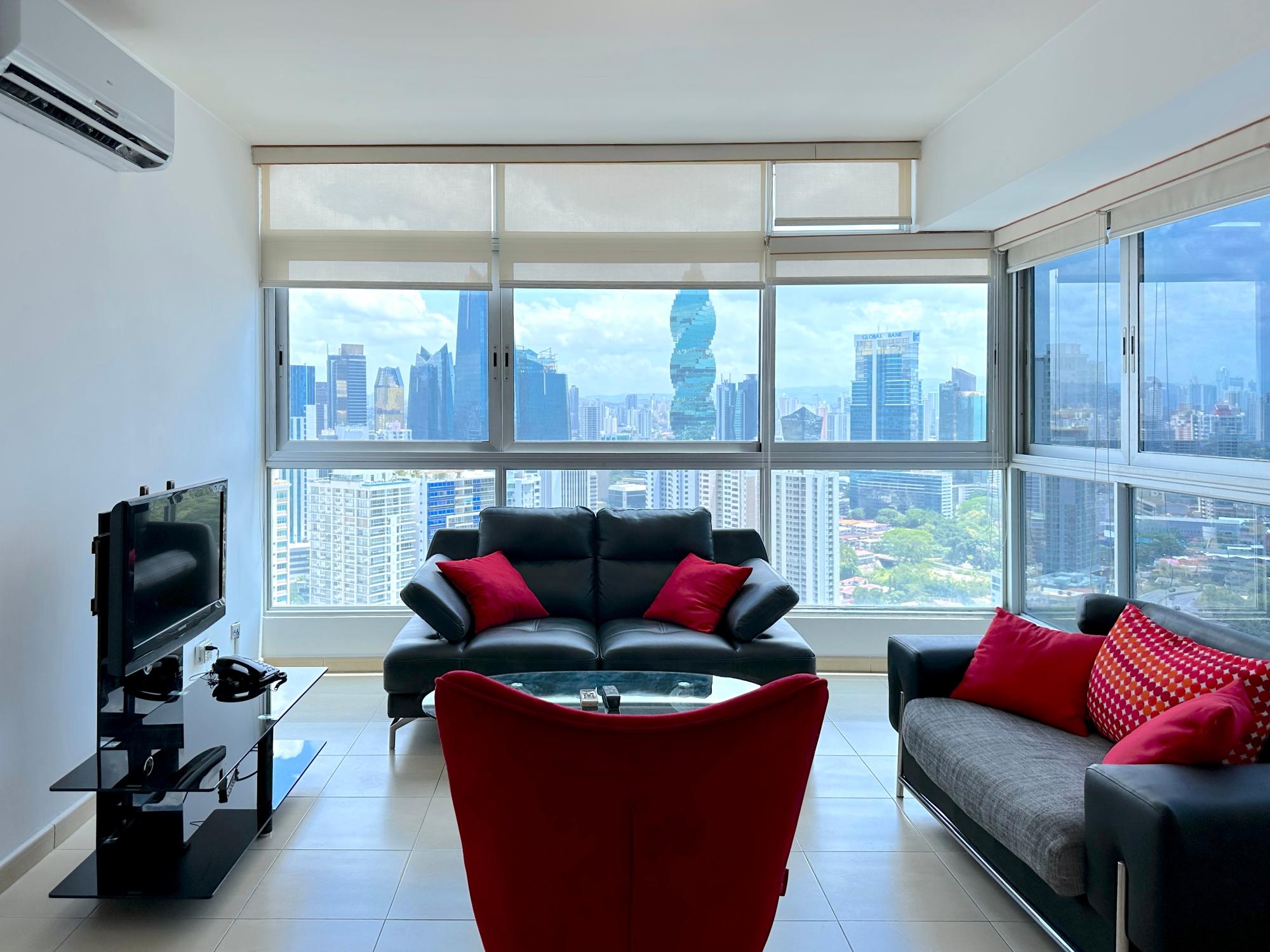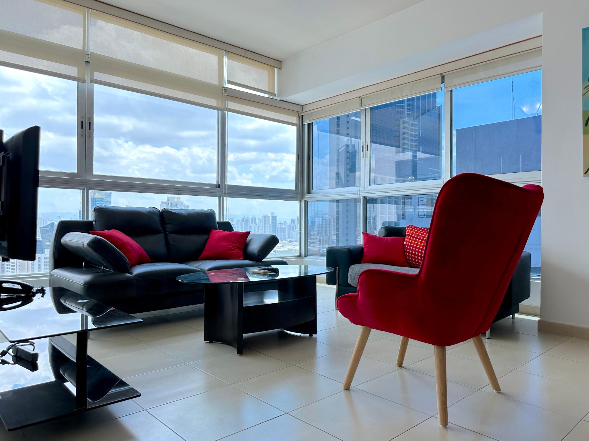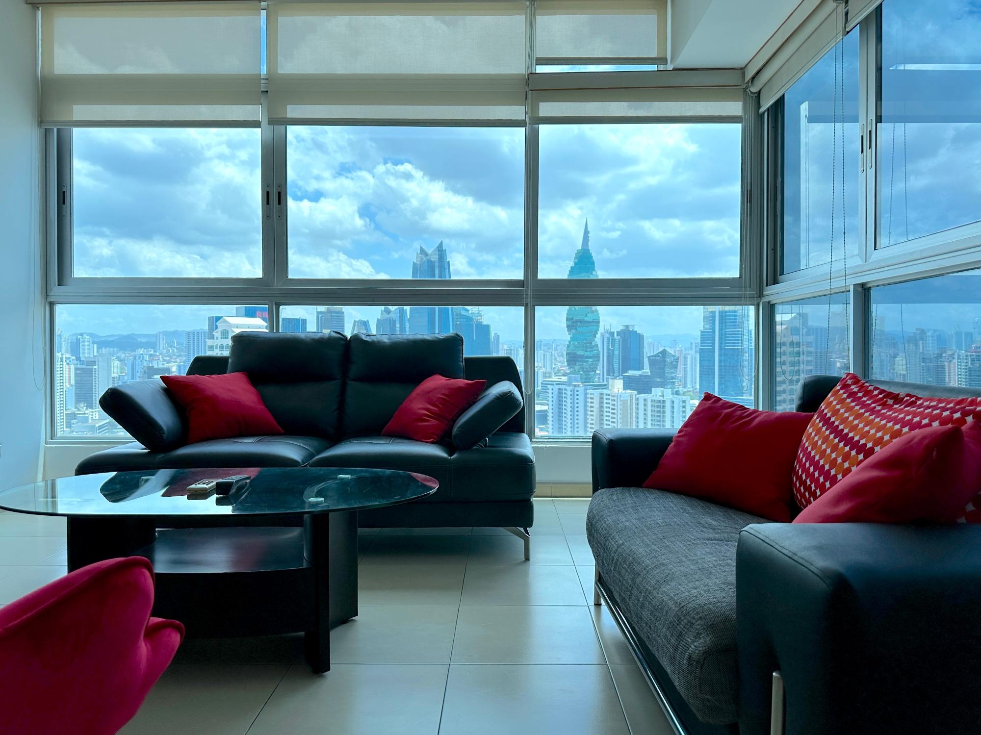 Panama Home Realty offers our distinguished clients a wonderful apartment located on Avenida Balboa with exceptional views of Panama City and the bay. From the building itself, you can walk to the Multicentro shopping center in less than 5 minutes. The apartment building has excellent security, with a doorman who verifies the entry of all visitors. The apartment is 96 square meters with two bedrooms and two bathrooms, a spacious living room with a beautiful ocean view and views of beautiful Panama City. The Tower enjoys beautiful views of the sea and the city. The nearest shopping centers are just a 5-minute walk from the property, where you will find the nearest restaurants, bars, and nightlife on Uruguay Street, just a 10-minute walk away. It is a 15-minute walk to the tourist center of the Old Town, a 15-minute drive to Panama la Vieja, and a 20-minute drive to the Albrook Shopping Center and many other shops. The Panama Canal is a half-hour drive away. This luxury building offers air-conditioned facilities including a lobby with 24-hour reception, a safe, a cloakroom, and an elevator. It features fully furnished apartments with high standards and state-of-the-art architecture. Sports enthusiasts can work out in the gym or relax in the sauna.