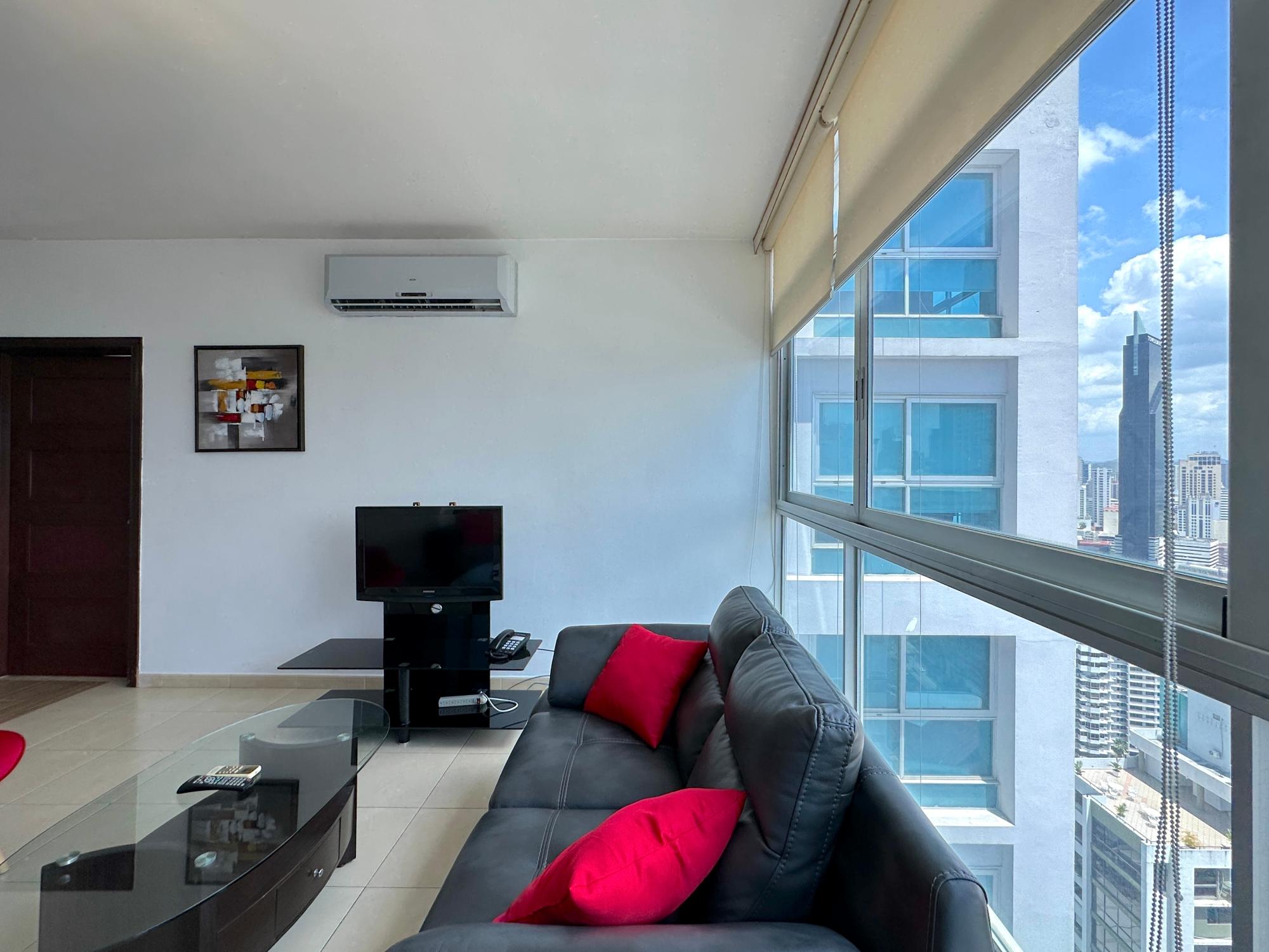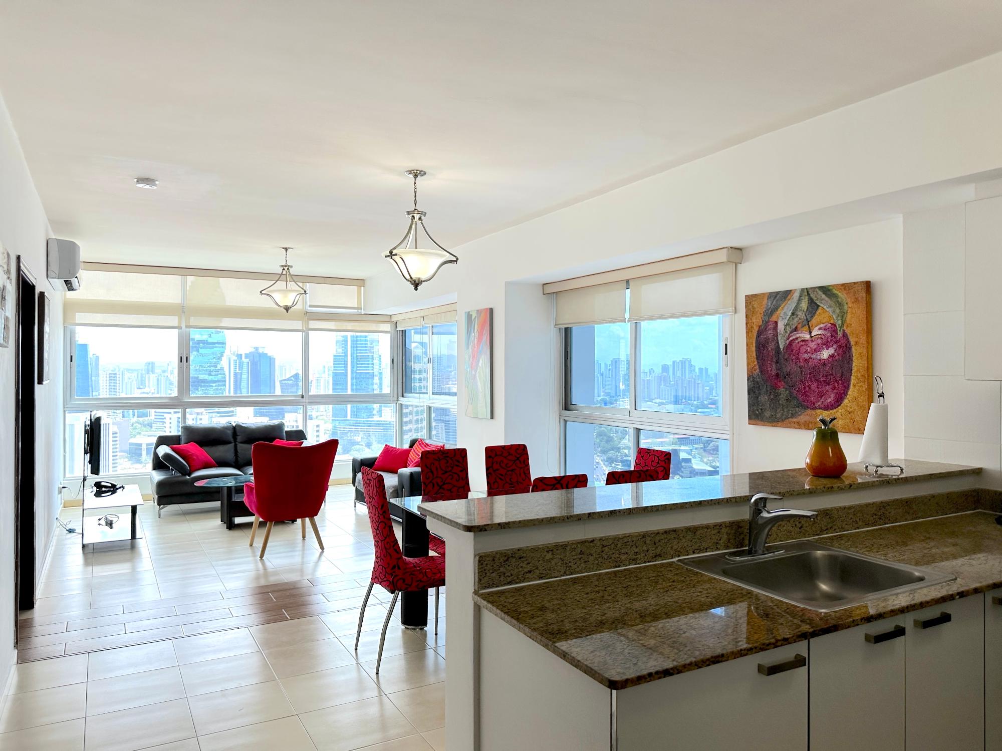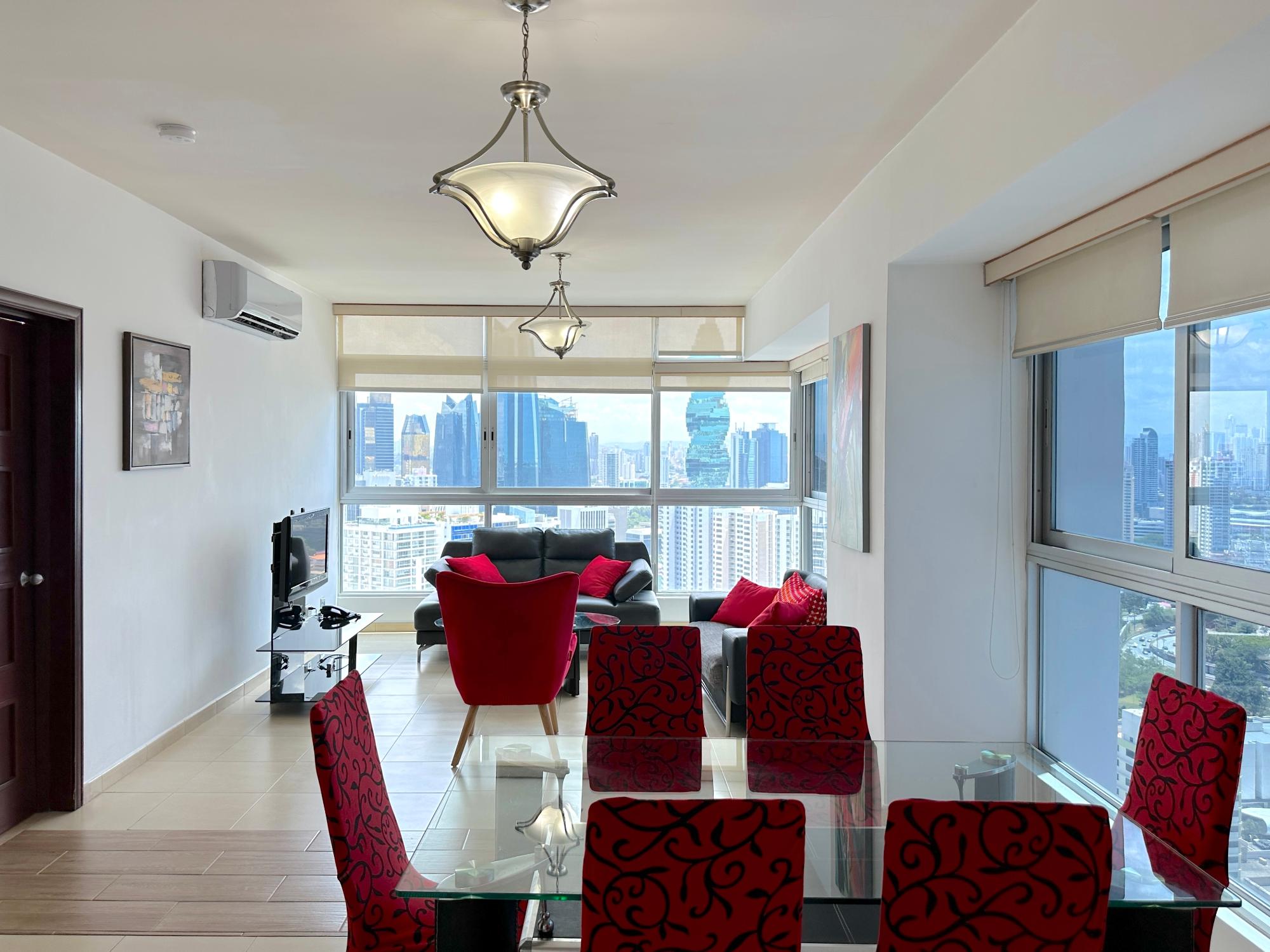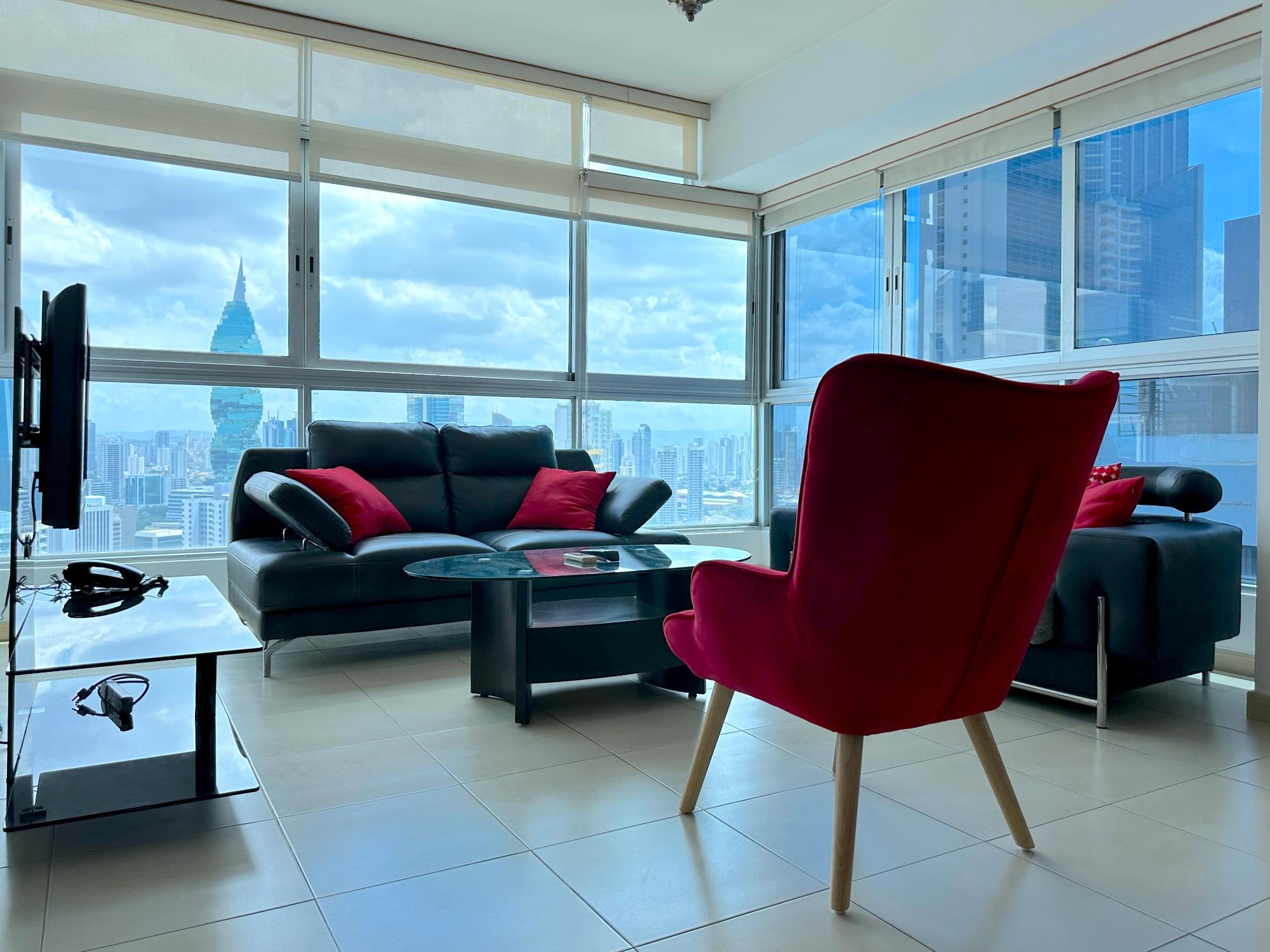 Panama Home Realty offers our distinguished clients a wonderful apartment located on Avenida Balboa with exceptional views of Panama City and the bay. From the building itself, you can walk to the Multicentro shopping center in less than 5 minutes. The apartment building has excellent security, with a doorman who verifies the entry of all visitors. The apartment is 96 square meters with two bedrooms and two bathrooms, a spacious living room with a beautiful ocean view and views of beautiful Panama City. The Tower enjoys beautiful views of the sea and the city. The nearest shopping centers are just a 5-minute walk from the property, where you will find the nearest restaurants, bars, and nightlife on Uruguay Street, just a 10-minute walk away. It is a 15-minute walk to the tourist center of the Old Town, a 15-minute drive to Panama la Vieja, and a 20-minute drive to the Albrook Shopping Center and many other shops. The Panama Canal is a half-hour drive away. This luxury building offers air-conditioned facilities including a lobby with 24-hour reception, a safe, a cloakroom, and an elevator. It features fully furnished apartments with high standards and state-of-the-art architecture. Sports enthusiasts can work out in the gym or relax in the sauna.